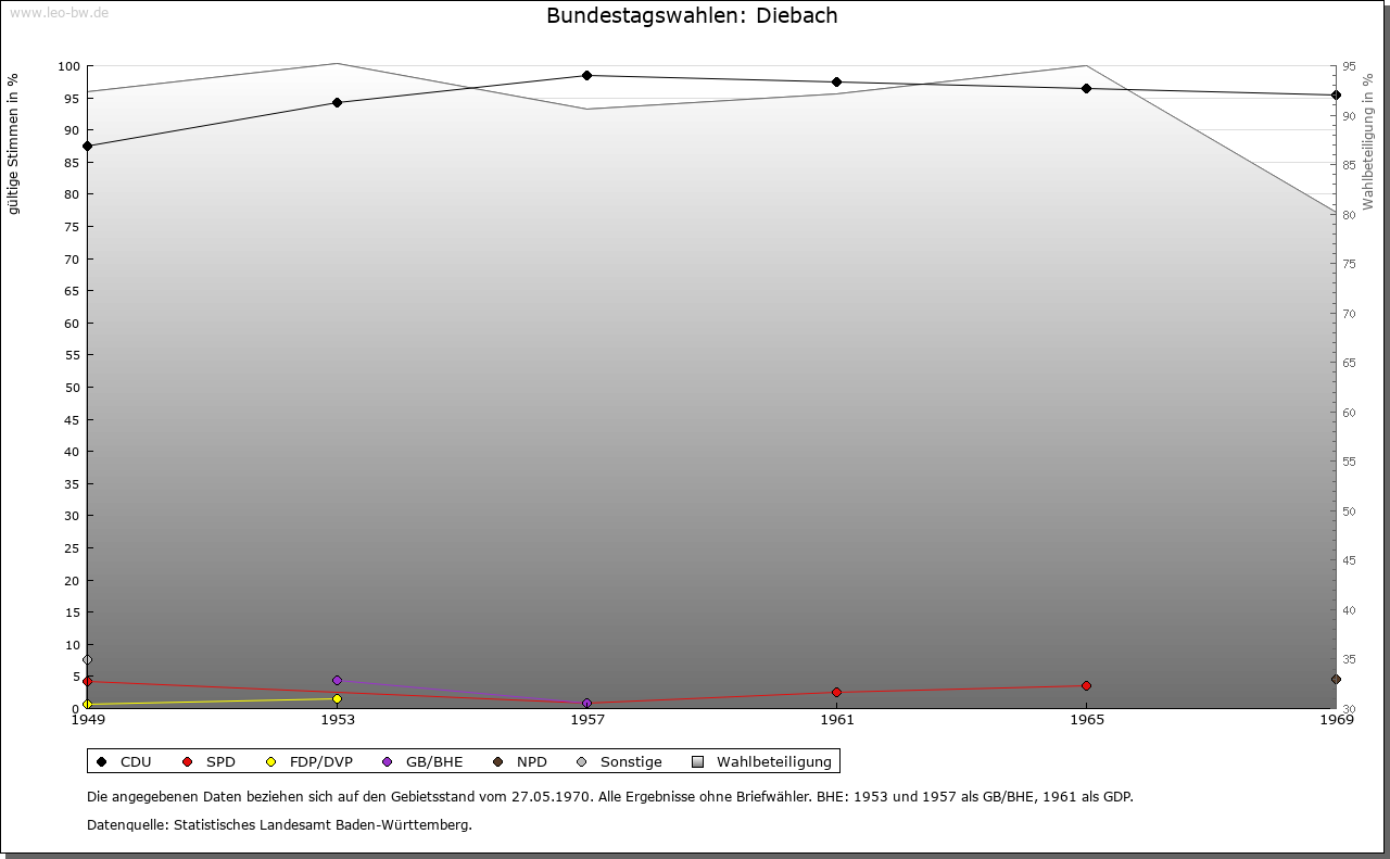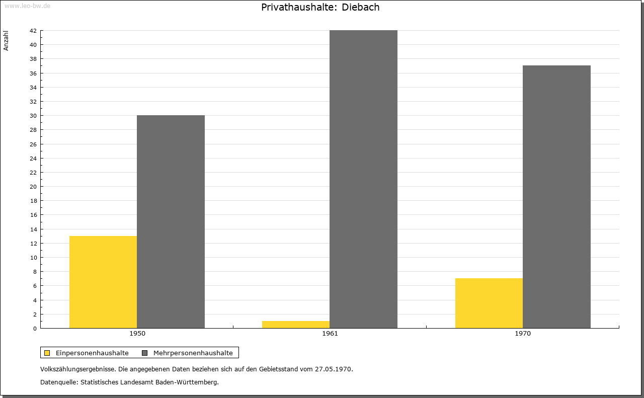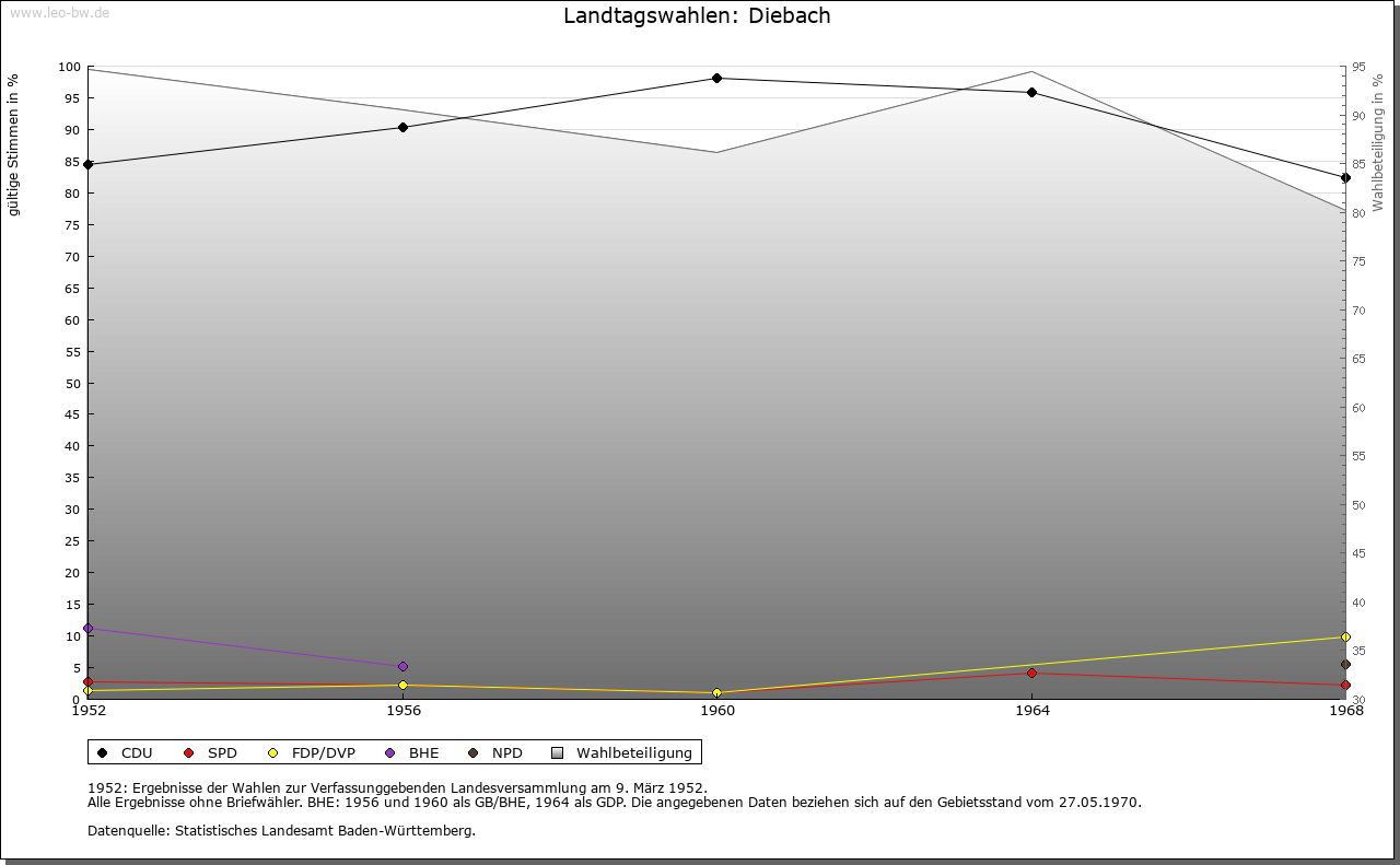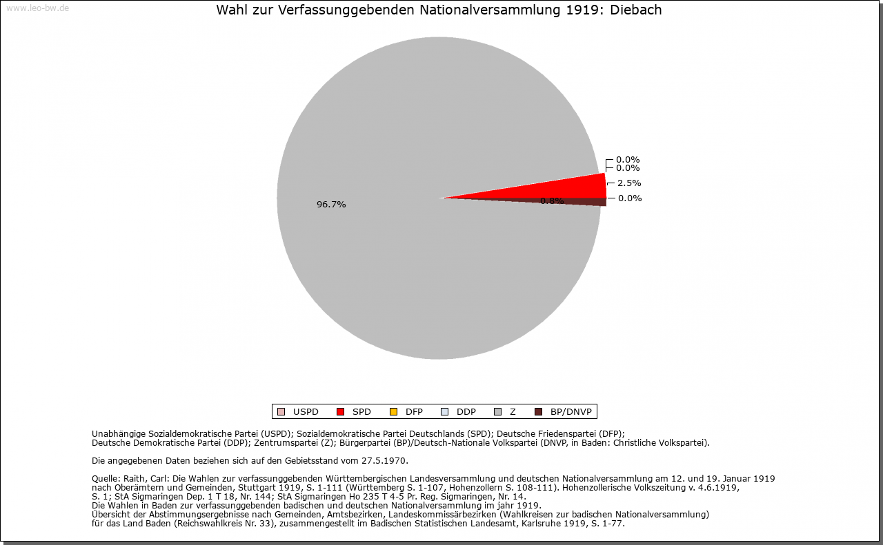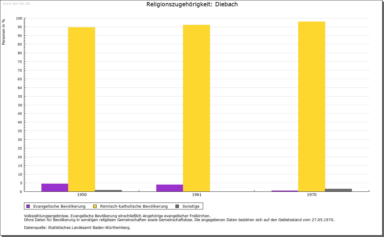 | Geschichte: | Im 13. Jahrhundert gehörte Diebach zur Herrschaft der Edelherren von Dürn-Forchtenberg und war von diesen an Familien des Ritteradels zu Lehen ausgetan, so 1322 an die von Aschhausen. Im weiteren Verlauf waren die Herrschaftsrechte für rund hundert Jahre geteilt. 1369 vertauschten die von Neuenstein ihre Hälfte des Gerichts zu (Nieder- beziehungsweise Unter-) Diebach an das Kloster Schöntal. Die andere Hälfte an Gericht und Vogtei gelangte zunächst um 1400 durch Verkauf von denen von Veinau und von Klepsau an die von Ebersberg, dann 1416 durch Tausch von denen von Tann zu Dörzbach ebenfalls an Schöntal. Seither und bis zum Ende des Alten Reiches stand die niedere Obrigkeit allein dem Kloster zu. Die hohe, fraischliche Obrigkeit lag ursprünglich bei der dürnischen, dann hohenlohischen Zent Forchtenberg, konnte aber nach längeren, mitunter tätlichen Auseinandersetzungen 1593 auf Betreiben Schöntals samt der Steuer- und Wehrhoheit der kurmainzischen Zent Ballenberg (Krautheim) übertragen werden. Mit dem Reichsdeputationshauptschluss fiel so 1803 die niedere, vogteiliche Gerichtsbarkeit an Württemberg, die hohe, landesherrliche an den Fürsten zu Salm-Reifferscheidt-Bedburg. Im Wege des Tauschs erlangte Württemberg 1804 die volle Souveränität über das Dorf und überließ dafür dem Fürsten zu Salm nachgeordnete Rechte. Als Grundherren treten in Niederdiebach neben den wiederholt wechselnden Vogtsherren seit 1327 die Herren von Hohenlohe in Erscheinung, vor 1365 auch die Niederadligen von Bachenstein. Vom frühen 15. Jahrhundert bis zum Ende des Alten Reiches war Schöntal die bei weitem dominierende Grundherrschaft, seit 1603 unter Einschluss der ehedem hohenlohischen Gerechtsame. Daneben begegnet 1352 mit vergleichsweise bescheidenen Einkünften die Frühmesse zu Niedernhall. In Oberdiebach verfügte 1395/97, zweifellos aufgrund einer älteren Dürner Schenkung, das Kloster Amorbach über eine ganze und zwei halbe Hufen. Sonstige Berechtigungen sind in ritteradligem Besitz bezeugt (1395 von Veinau, vor 1406 von Aschhausen und von Klepsau, 1406 von Ebersberg, 1409 von Rosenberg, 1458/60 von Berlichingen), zum Teil als hohenlohische Lehen (1430 von Schrozberg). Renten der Pfarrei Jagsthausen, die vermutlich berlichingischer Provenienz waren, finden 1458/59 Erwähnung und wurden 1477 an die Kirche in Ingelfingen verkauft. Es scheint, als habe Schöntal nach und nach auch die hiesigen Güter ganz in seiner Hand vereinigt (1460). Die für Nieder- und Oberdiebach jeweils separaten Zehntrechte waren im späten Mittelalter ebenso wie die grund- und ortsherrlichen Gerechtsame teilweise im Besitz ritteradliger Familien. Ein Drittel des großen und kleinen Zehnten in Niederdiebach gehörte 1316/27 denen von Aschhausen. Später waren die von Klepsau, von Ebersberg und von Adelsheim daran beteiligt, und 1412 gelangte dieser Anteil durch Schenkung an das Kloster Schöntal. In Oberdiebach bezogen 1395/97 die Benediktiner von Amorbach ein Viertel des Großzehnten, wohingegen der dortige Kleinzehnt den Pfarrern von Forchtenberg und Crispenhofen zustand; 1730 verkaufte Amorbach seinen Zehntanteil an Schöntal. Vom Ausgang des Mittelalters bis zur Säkularisation scheinen die Großzehntrechte in Niederdiebach ganz in Schöntaler Besitz gewesen zu sein, die in Oberdiebach gehörten am Ende des Alten Reiches dem Fürsten zu Hohenlohe-Oehringen. Die Kompetenzen der Gemeinde waren offenbar stets gering. Zwei Bürgermeister sind erst 1677/78 in der Rechnung bezeugt, die sie für dieses Jahr vorzulegen hatten. Diebach gehörte bis 1810 zum Oberamt Schöntal, bis 1811 zum Oberamt Ingelfingen, danach zum Oberamt, 1938 Landkreis Künzelsau. Der Weiler Halberg kam 1852 zur Gemeinde Crispenhofen. |