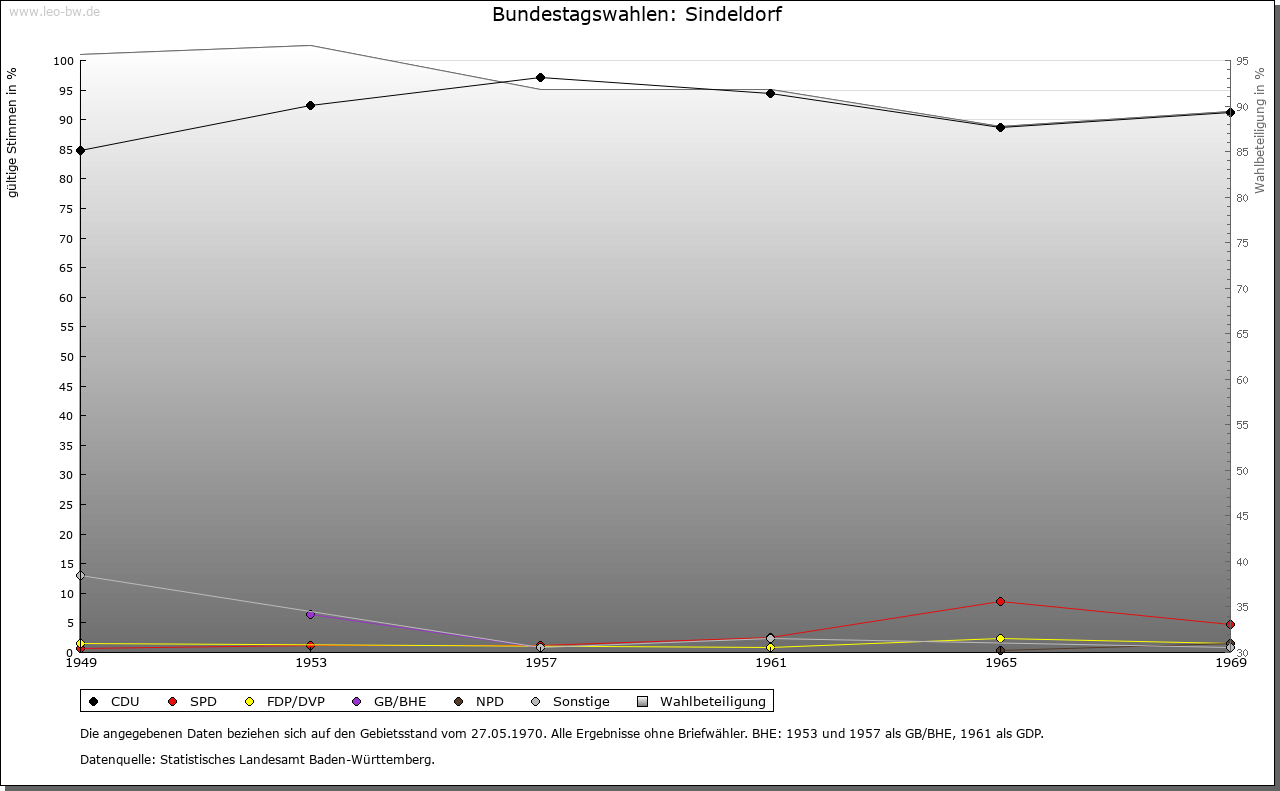 | Geschichte: | Im hohen Mittelalter gehörte Sindeldorf zum Herrschaftsbereich der Herren von Krautheim. Als diese 1239 eine Reihe von Gütern an die von Hohenlohe verkauften, stellten sie ihnen auch die Veräußerung Sindeldorfs in Aussicht, was indes unterblieb. Beim Aussterben der Krautheimer fiel Sindeldorf an die Grafen von Eberstein als deren Erben und gelangte schließlich 1329 wiederkäuflich an das Kloster Schöntal. Neben den Zisterziensern, die hier 1341 und vor allem zwischen 1461 und 1474 weitere Rechte erwerben konnten, waren in Sindeldorf während des 14. und 15. Jahrhunderts die Ritteradelsfamilien von Eubigheim, von Neuenstein und von Bachenstein sowie die Stickel aus Hall begütert. Gericht und Vogtei sowie die zentliche Obrigkeit gelangten 1365 zusammen mit Krautheim an Kurmainz (Zent Ballenberg). Im Zuge der Säkularisation fiel die Ortsherrschaft 1802/03 an den Fürsten zu Salm-Reifferscheidt, der 1806 von Württemberg mediatisiert wurde. Rechte am großen und kleinen Zehnt waren im 14. und bis ins frühe 15. Jahrhundert im Besitz der erwähnten Ritteradelsfamilien und gelangten 1415/33 an den Sankt Maria Magdalenen-Altar in Künzelsau. Ein Viertel des Zehnten erwarben 1483 beziehungsweise 1662 die Grafen von Hohenlohe-Neuenstein vom Kloster Komburg. »Bürgermeister und die ganze Gemeind« zu Sindeldorf begegnen 1593 in einem Streit um Schäfereirechte mit den Nachbargemeinden; diese Auseinandersetzungen sollten anderthalb Jahrhunderte währen. Unter Hinweis auf ihr Schafhaus behauptete die Gemeinde 1723, sie sei schon seit mehr als hundert Jahren im Besitz der Schäferei auf ihrer Gemarkung. Darüber hinaus verfügte die Dorfgemeinschaft 1793/94 über ein Schulhaus und ein Kelterhaus sowie über eine Wiese und zwei Stücke Wald. 1806 fiel Sindeldorf an Württemberg, gehörte bis 1810 zum Oberamt Schöntal, bis 1811 zum Oberamt Ingelfingen, dann zum Oberamt, seit 1938 Landkreis Künzelsau. |