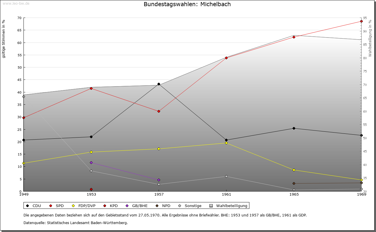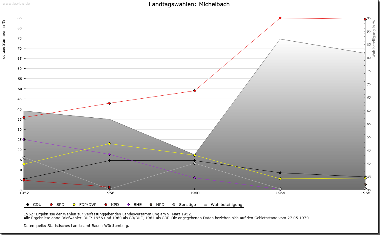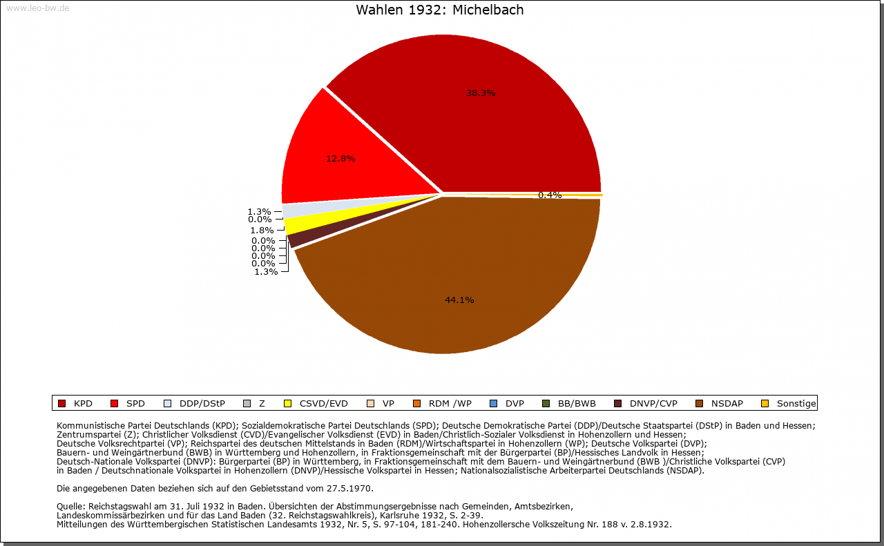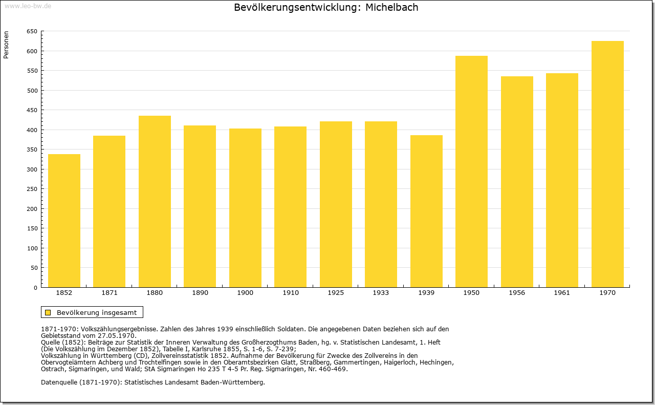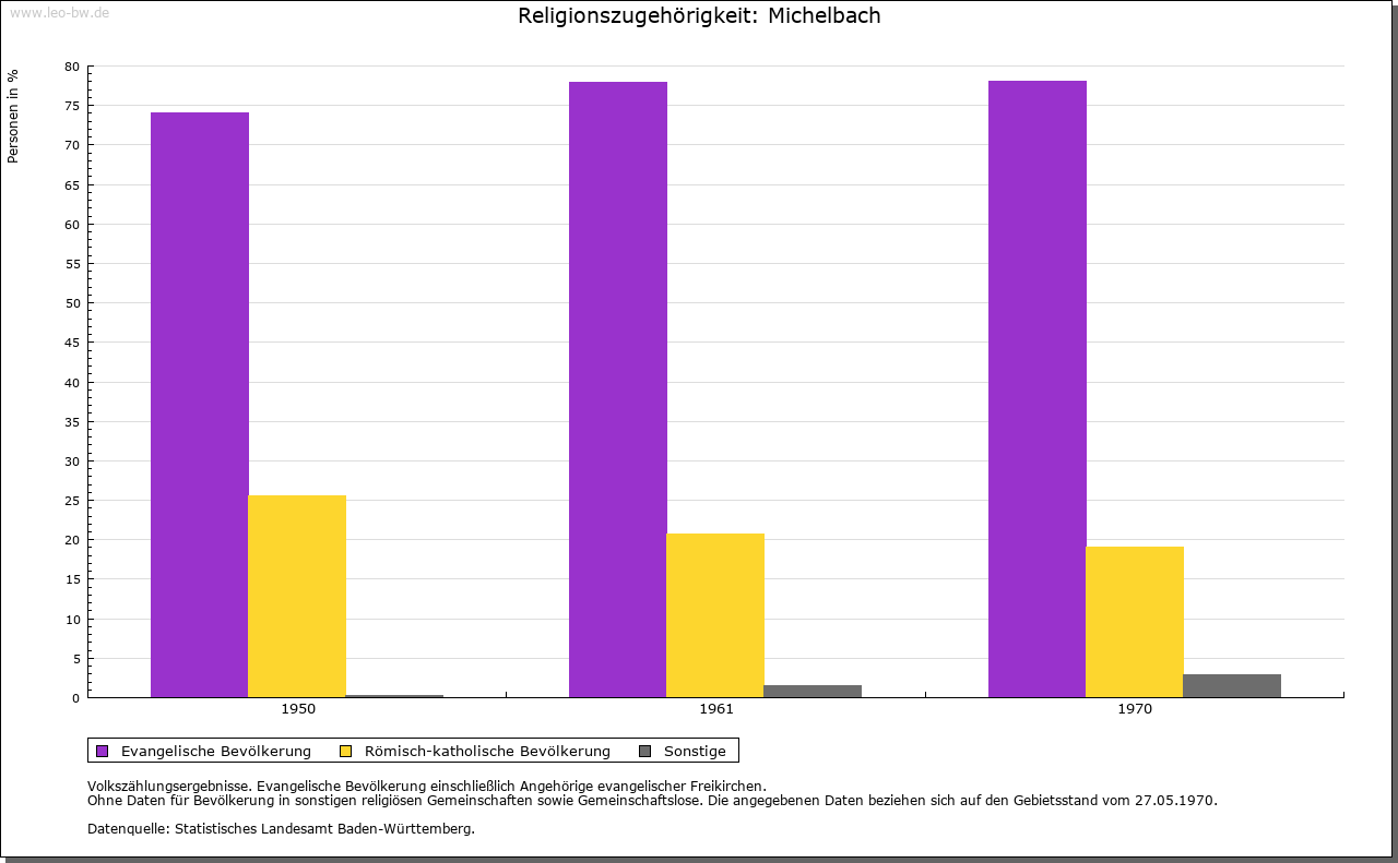 | Geschichte: | 858 (verunechtet) Michelbach, nur als Gewässername erwähnt, 1383 Miechelnbach, von michel = groß. Ausbausiedlung der Zeit vor 1000. Zur Stüber Zent gehörig, mit dieser ab 1380 unter kurpfälzische Landeshoheit. Die Ortsherrschaft aufgeteilt unter Schloss Schwarzach, Burg Helmstadt und Burg Zwingenberg, nach 1514 nur noch unter Helmstadt und Zwingenberg, zuletzt ganz an die Herren von Helmstatt und ihre Erben von Berlichingen und Schmitz Auerbach. 1803 zum badisches Amt Neckarschwarzach, 1813 Neckargemünd, 1857 Eberbach, 1914 Mosbach. |