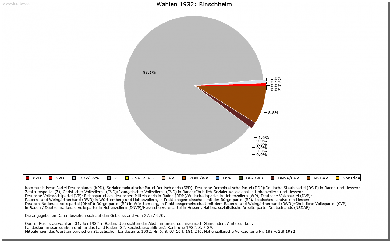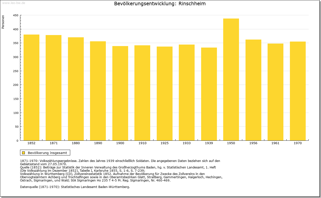 | Kirche und Schule: | Kirchlich war Rinschheim Filial von Götzingen. Die Filialkirche St. Hippolyt und Kassian 1805 als kleiner Saal mit zwiebelgekröntem Dachreiter neu errichtet. Evangelische nach Bofsheim eingepfarrt. |