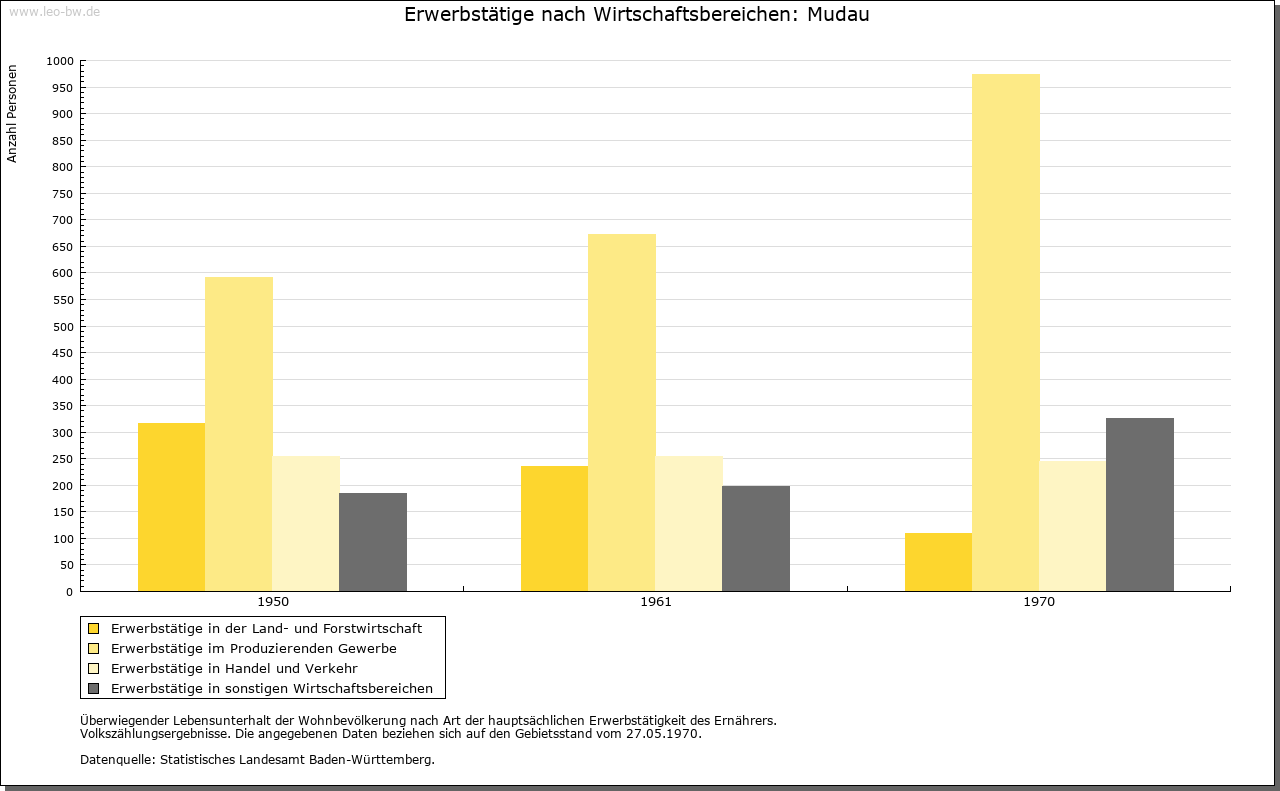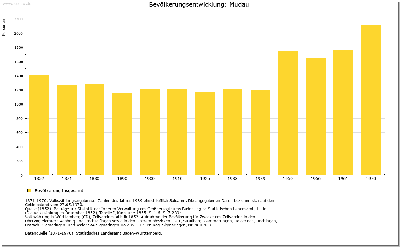 | Ortslage und Siedlung (bis 1970): | Im Kern dichtes Haufendorf in Muldenlage im Quellbereich des Mudbachs. Geschlossene Neubaugebiete im Nordosten in Hanglage und im Süden beim Bahnhof. Junge Wachstumsspitze nach Nordwesten zum Neuhof durch Neubauzeile. Neubauten auch im Norden in Richtung Untermudau. |