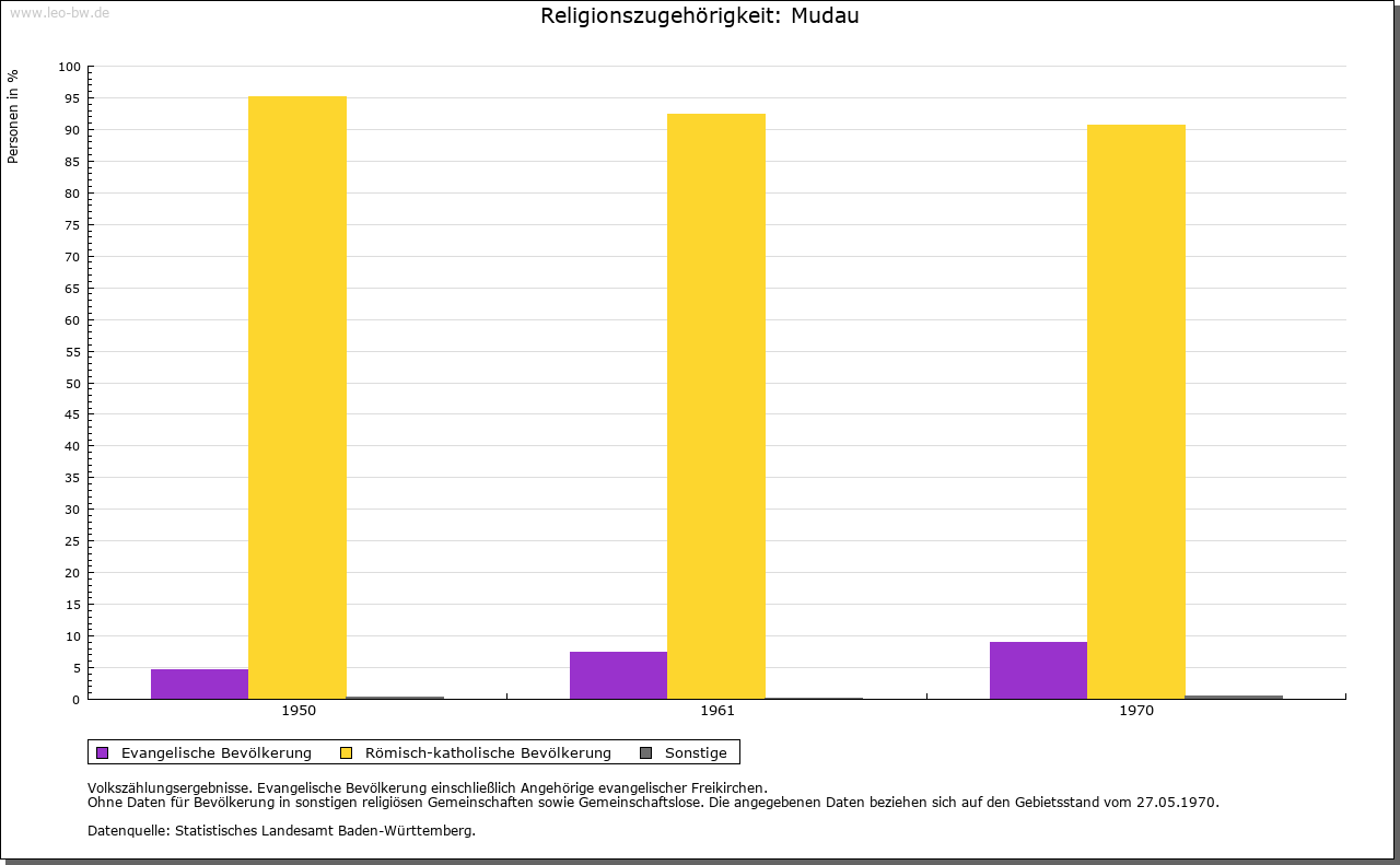 | Kirche und Schule: | Ursprünglicher Pfarrsitz Bödigheim, ab 1277 Hollerbach, um 1426 davon eigene Pfarrei Mudau abgetrennt. Diese reichte im Westen bis Schöllenbach, im Süden bis Reisenbach, im Norden bis Donebach. Seit 1905 Filialen nur noch Donebach, Mörschenhardt und Langenelz. Vor der Abtrennung von Hollerbach bestand bereits eine Filialkirche; von ihr steht noch der Turm aus dem 14. Jahrhundert, 1510 erhöht, Schiff 1791/92 in anderer Orientierung angefügt. Patron St. Pankratius, Nebenpatron St. Laurentius. Die Evangelischen zunächst zu Bödigheim, 1905 nach Fahrenbach, 1949 Diasporagemeindepfarramt nahezu für den ganzen Bereich der alten Pfarrei Hollerbach. |