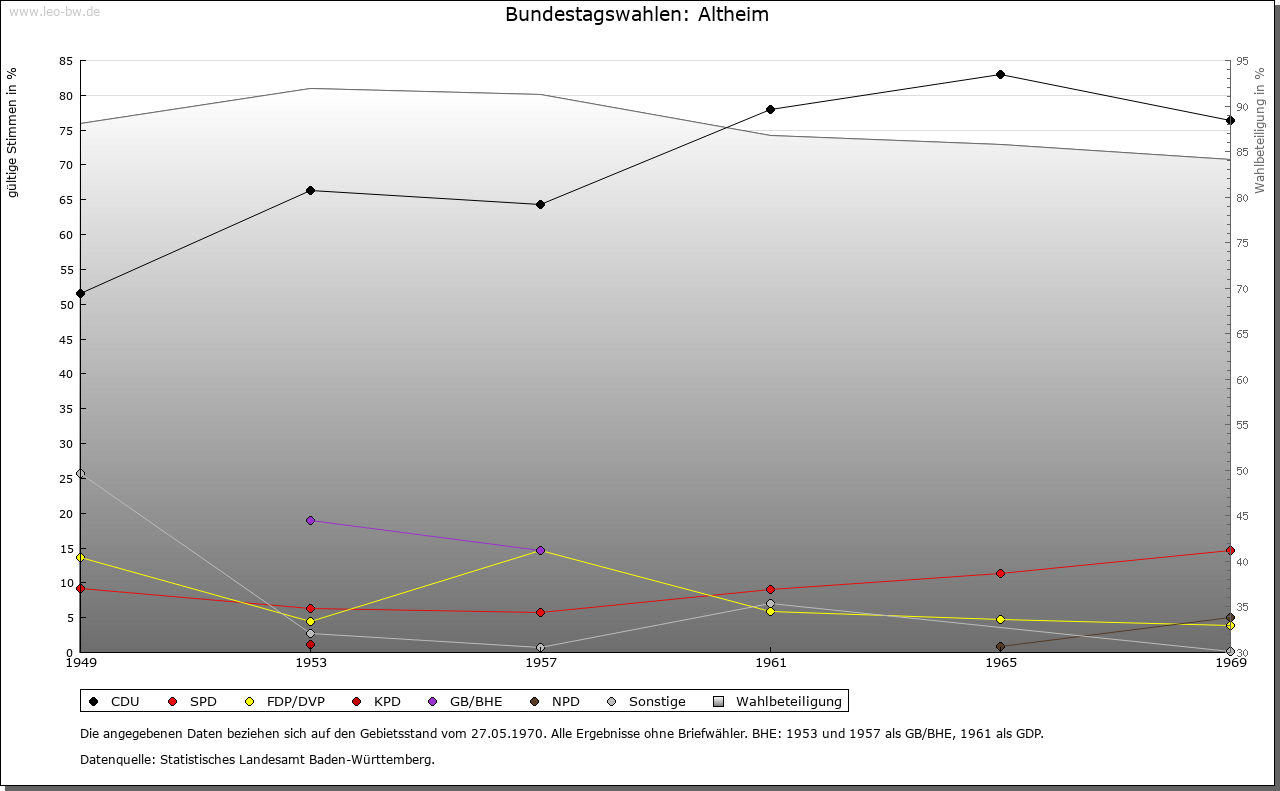 | Geschichte: | 774 (Kopialüberlieferung 12. Jahrhundert) Altheim, vielleicht im Gegensatz zu Rinschheim oder Sindolsheim das »ältere Heim«. Am Ost-Rand des Dorfes wahrscheinlich ein Reihengräberfriedhof. Lorscher (8. Jahrhundert) und Fuldaer (11. Jahrhundert) Besitz, seit 1100 starke Amorbacher Grundherrschaft nachweisbar. Die Ortsherrschaft 1303/13 als Würzburger Lehen zunächst für die Ritter von Amorbach-Dürn, ab etwa 1320 für von Adelsheim belegt. 1492 Anteile der Rüdt von Bödigheim an Kurmainz, 1496 die Anteile der von Adelsheim ebenso. Der Abt von Amorbach behielt einzelne obrigkeitliche Rechte. Seither die Mainzer Amtsvogtei Buchen zuständig. Sicher schon vorher zur Zent Buchen gehörig. 1803 an Leiningen, 1806 an Baden. 1840 vom Bezirksamt Buchen zu Walldürn, 1872 wieder zu Buchen. |