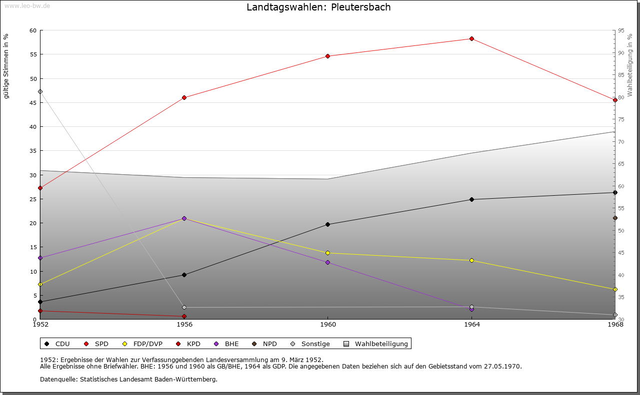 | Ortslage und Siedlung (bis 1970): | Kleines Haufendorf am flachen nördlich-exponierten Neckartalhang beidseits des Pleutersbachs. Neubauten am Hang über dem östlichen Ortsteil. |