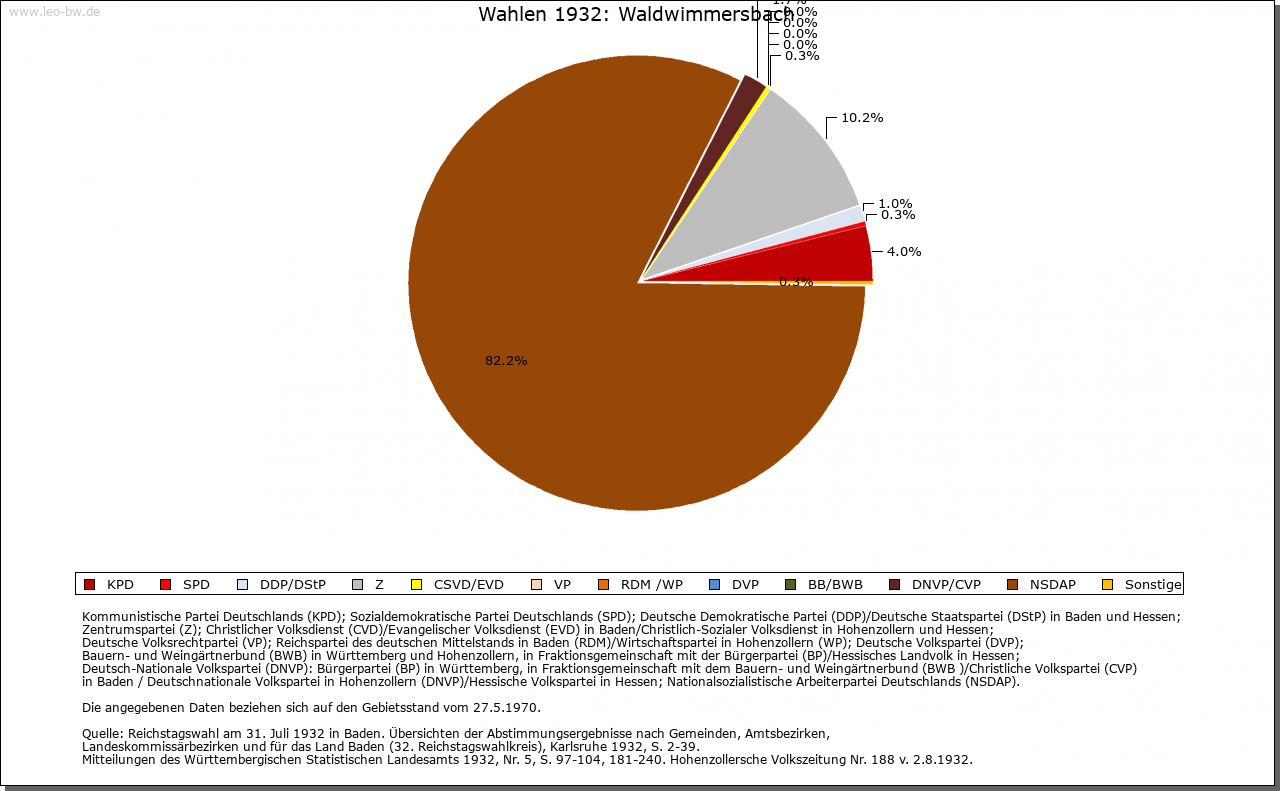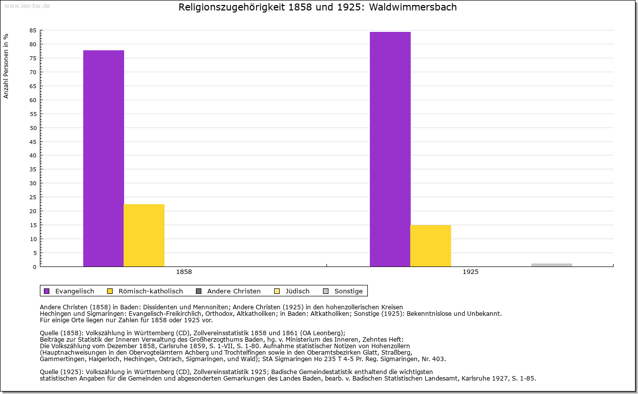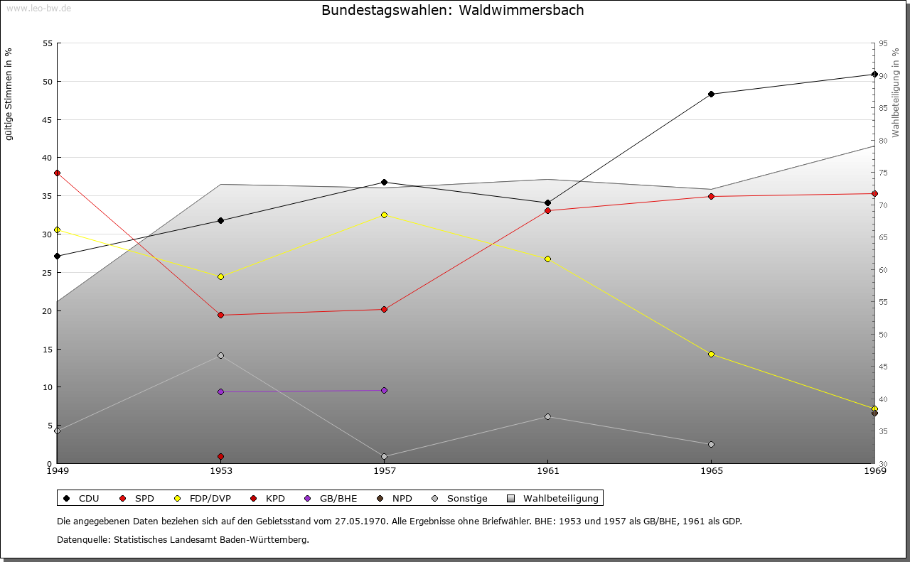 | Geschichte: | 1306 Wimmersbach, von Personenname (?), seit 17. Jahrhundert Waldwimmersbach. Mit der Meckesheimer Zent und Lobenfeld 1325/30 pfälzischen Unteramt Dilsberg, 1803 badisch, Amt Neckargemünd, 1857-1863 Amt Eberbach, dann Heidelberg. |