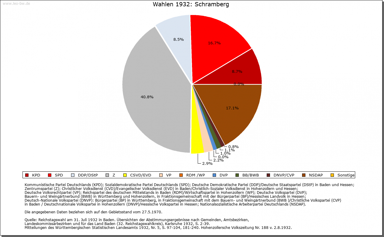 | Geschichte: | Die Urbarmachung dieses Siedlungsraumes betrieben zuerst die Edelfreien von Ramstein, die wohl Lehnsleute der Herzöge von Zähringen waren. Diese Edelfreien kamen sehr wahrscheinlich aus dem Eschachtal und traten 1139/40 zum ersten Mal in Erscheinung. Am Ende des 13. Jahrhunderts starb der Hauptstamm der im Schiltachtal lebenden Ramsteiner im Mannesstamm aus. Dieser Familienzweig überließ Burg und Herrschaft 1288 einem Berthold von Falkenstein, der bereits seit einiger Zeit einen engen Kontakt zu der benachbarten Familie von Ramstein pflegte. Die Falkensteiner waren Lehnsleute der Herzöge von Teck. Im Laufe des 14. Jahrhunderts gelangten die Falkensteiner in den gesamten Besitz der Ramsteiner. Sie konnten aber auch noch Güter anderer Herren erwerben. Das dritte Geschlecht, das die Entwicklung der Schrambergs ab 1270 beeinflusste, waren die Herren von Schilteck, die vermutlich ebenfalls Lehnsleute der Herzöge von Teck waren. 1293 wird eine Urkunde, die den Verkauf des Kelhofes in Altoberndorf durch die Herren von Zimmern an Kloster Alpirsbach besiegelt, »aput Schrannenberch« ausgestellt. Die Falkensteiner hatten ihre größte Machtentfaltung vom Ende des 14. bis zur Mitte des 15. Jahrhunderts. Sie verkauften 1444 die Hälfte ihres Besitzes und 1449 ein weiteres Viertel an Graf Ludwig von Württemberg. Das letzte Viertel der Falkensteiner Besitzungen gehörte der Ramstein-Falkenstein-Linie. Diese verkauften ihren Besitz wohl im Jahre 1447 an Hans von Rechberg zu Hohenrechberg, der die Herrschaft Schramberg errichtete. Zuerst nutzte Hans von Rechberg die Burg Ramstein als Wohnsitz, die wegen einer Fehde 1452 vom Schwäbischen Bund belagert und zerstört wurde. Aufgrund eines kaiserlichen Schiedsspruches musste der Schwäbische Bund eine hohe Entschädigung an den Rechberger zahlen. Mit diesem Geld errichtete Hans von Rechberg 1457 eine neue Festung auf dem Hohenschramberg, möglicherweise auf älteren Grundmauern. Ab 1518 verhandelten die Rechberger mit kaiserlichen Abgesandten über den Verkauf der Burgen Schramberg und Schilteck mitsamt den dazugehörigen Hoheitsrechten. Kaiser Maximilian wollte die Schwarzwald-Herrschaft für das Haus Habsburg aus strategischen Erwägungen heraus sichern. Der baldige Tod des Kaisers und die katastrophale Verschuldung Habsburgs machten diese Pläne obsolet. 1526 verkaufte Rechberg das Gebiet der allmählich wachsenden Siedlung Schramberg mit der restlichen Herrschaft an seinen Schwager, den schweizer Adeligen Hans Dietrich von Landenberg zu Breitenlandenberg. Die Herren von Landenberg zu Breitenlandenberg waren ein angesehenes Geschlecht aus der Ostschweiz. Nach dem Tod Christophs von Landenberg zu Breitenlandenberg wurde Schramberg nebst der Herrschaft 1547 an Rochus Merz von Staffelfelden, einen Vertreter der österreichischen Beamtenaristokratie, verkauft. Noch im gleichen Jahr verlieh ihm Kaiser Karl V. das Recht, jeden Donnerstag einen Wochenmarkt und zweimal im Jahr einen Jahrmarkt in dem neu gegründeten Marktflecken Schramberg auszurichten. Ferner erhielt Rochus Merz das Privileg des »gefreiten Gerichtsstands«. Der Verwaltungsexperte Rochus Merz errichtete einen vorbildlichen Miniaturstaat. Er unterteilte die Herrschaft Schramberg in sechs Ämter, darunter das Amt Schramberg. Als herrschaftliche Beamte setzte er unter anderem einen Obervogt und Herrschaftsschreiber, fünf Untervögte, einen Fronvogt, 24 Schöffen sowie einen Kirchenschaffner ein. Im Januar 1563 verstarb Rochus Merz, nachdem er seine Frau als Alleinerbin eingesetzt hatte. Nach ihrem Tod übernahm ihr Neffe Gottfried Zott von Berneck 1571 Schramberg. Gottfried Zott überließ seinem Vater Sebastian, einem erzherzoglich-österreichischen Rat, die Verwaltung Schrambergs. Seit 1576 war Österreich von neuem daran interessiert, die Herrschaft Schramberg zu erwerben, um eine starke Bastion gegenüber dem protestantischen Württemberg zu bilden. Auch von der rechtlichen Seite erhob Österreich Anspruch auf die Herrschaft Schramberg, da die Witwe Merz Erzherzog Ferdinand II. von Österreich in ihrem Testament von 1570 zum Ersatzerben bestimmt hatte. 1583 verkaufte Gottfried Zott die Herrschaft Schramberg an das Haus Habsburg, das Graf Wilhelm von Zimmern mit der Herrschaft belehnte. Nach dem Tod Graf Wilhelms 1595, mit dem die Familie der Grafen von Zimmern ausstarb, verblieb Schramberg bis 1609 unter der direkten Verwaltung des Hauses Habsburgs. In diesem Jahr wurde Markgraf Karl von Burgau mit Schramberg belehnt. Dieser herrschte bis zu seinem Tod im Jahre 1618. Während des 30jährigen Krieges unterstand Schramberg direkt Kaiser Ferdinand II. beziehungsweise dessen Bruder dem Erzherzog Leopold. Das Kriegsgeschehen verschonte bis zur Eroberung durch den schwedischen König Gustav Adolf 1632 Schramberg. Danach ließ sich Württemberg von Gustav Adolf die österreichischen Gebiete im Schwarzwald zu Lehen geben. Die Festung auf dem Hohenschramberg hielt den Württembergern bis zum August 1633 stand und wurde dann nach der Eroberung geschleift. Die württembergische Herrschaft über Schramberg endete mit der verlorenen Schlacht bei Nördlingen 1634. 1648 wurde der kaiserlich-erzherzogliche Oberst und Kriegsrat Freiherr Johann Friedrich von Bissingen pfandweise mit Schramberg belehnt. 1691 löste Österreich die Pfandschaft aus und verlieh Stadt und Herrschaft 1692 an den Grafen Jakob von Hamilton. Aber bereits drei Jahre später bot Hamilton Ferdinand Karl von Bissingen Ort und Herrschaft Schramberg zum Rückkauf an. Nach dessen Einwilligung wurde Schramberg 1696 als nun erbliches Lehen ausgegeben. Die Freiherren, seit 1746 Reichsgrafen von Bissingen-Nippenburg, errichteten unterhalb der Burg 1772 ein eigenes Schloss, um ein standesgemäßes Leben zu führen. Josef Ferdinand starb im Jahre 1763. Ihn beerbte sein Neffe Graf Ferdinand Kajetan. Seit 1620 war Schramberg Teil der schwäbisch-österreichischen Landstände gewesen. Durch die Maria-Theresianischen Reformen 