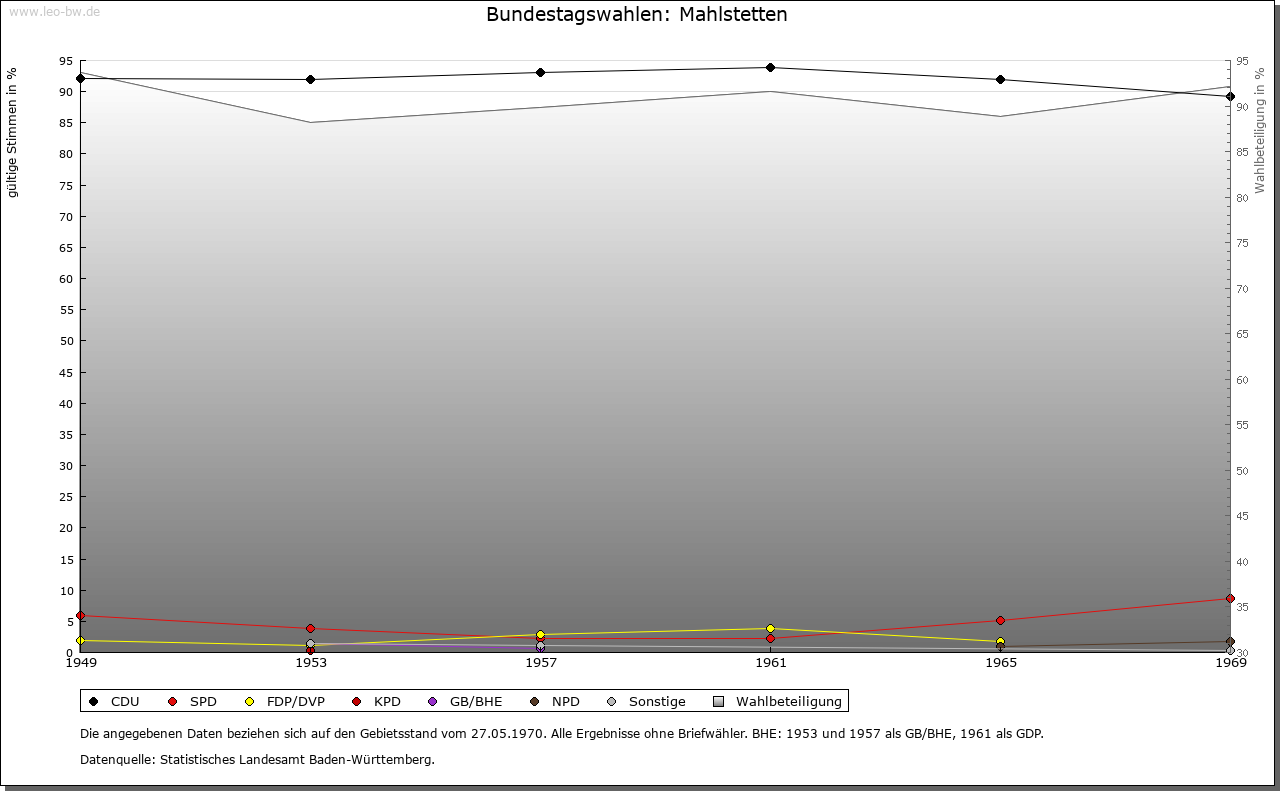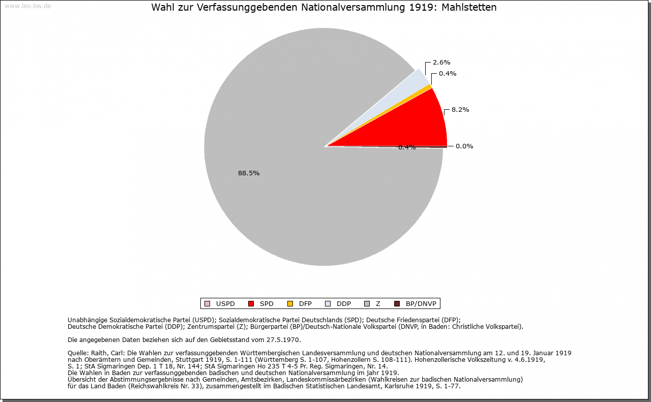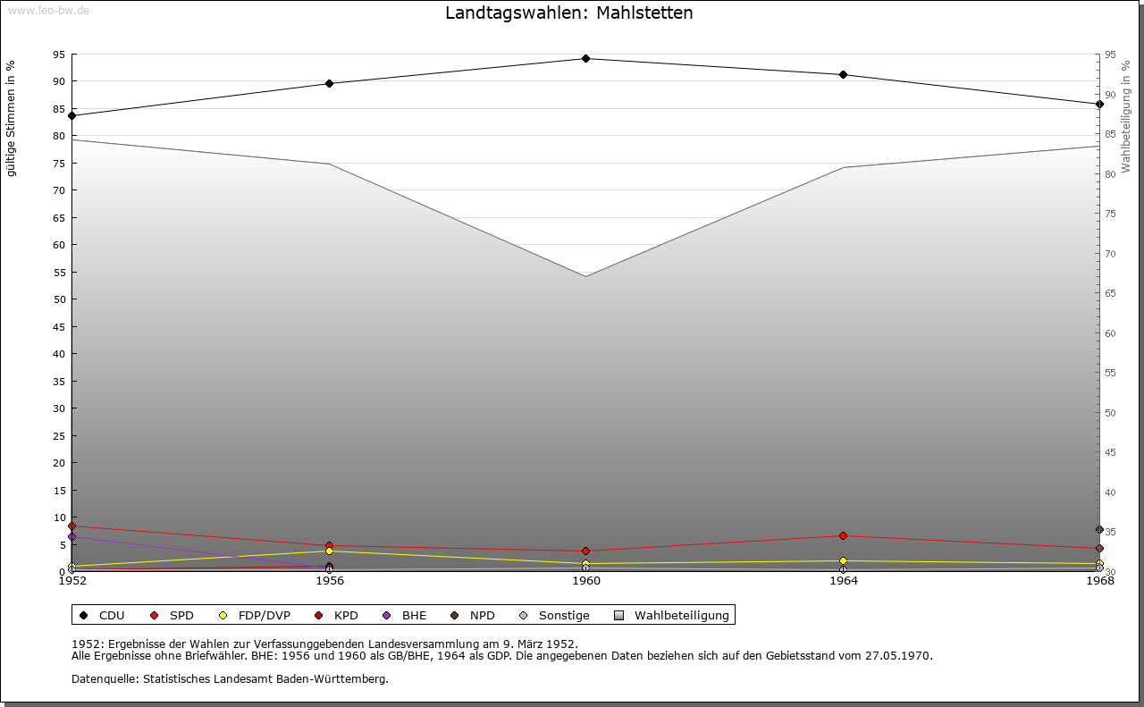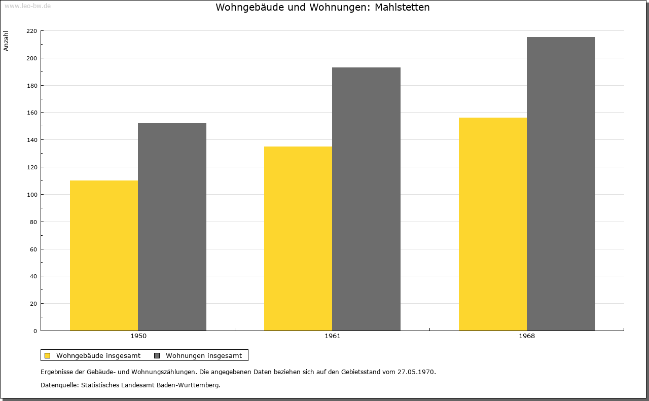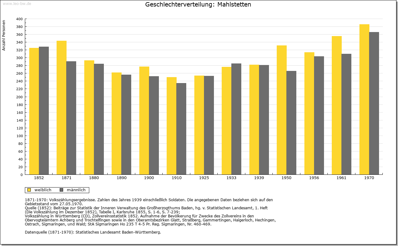 | Geschichte: | 1253 Malstetten, Ortsname vielleicht von mahal = Gerichtsstätte oder von mal = Grenzstein. Der überwiegende Teil des Ortes befand sich im Besitz des Klosters Beuron und kam mit diesem 1253 unter die Schirmvogtei der Grafen von Zollern, die ihn 1303 mit an das Bistum Konstanz verpfändeten. Er wurde 1391 von den Grafen von Zollern mit der Herrschaft Mühlheim an Konrad von Weitingen und 1409 von dessen Neffen an die Familie von Enzberg verkauft. Im Gegensatz zu Böttingen und Königsheim wurde Mahlstetten 1516 nicht österreichisches Lehen, sondern blieb enzbergisches Allod. Der Ort blieb abgesehen von der Zeit zwischen 1659 und 1701, in der er den Herren von Bodman gehörte, bis zum Übergang an Württemberg 1805 im Besitz der Familie von Enzberg. Mahlstetten bestand vor dem 30jährigen Krieg aus 36 Haushaltungen, infolge des Krieges lange nur noch aus 12 Haushaltungen. Mahlstetten gehörte 1806-1938 zum Oberamt Spaichingen, ab 1938 Landkreis Tuttlingen. |