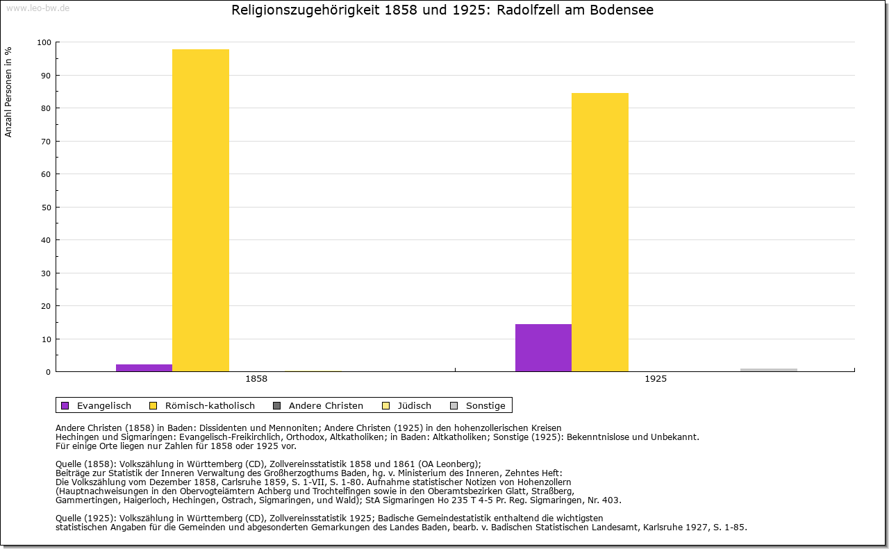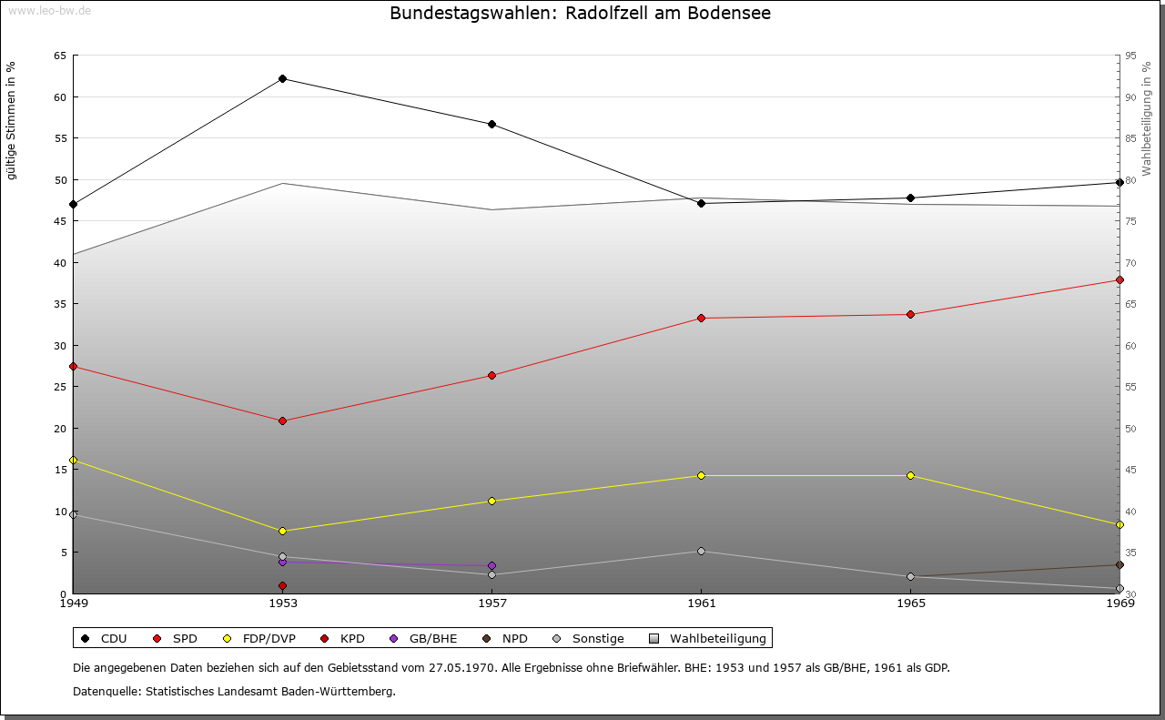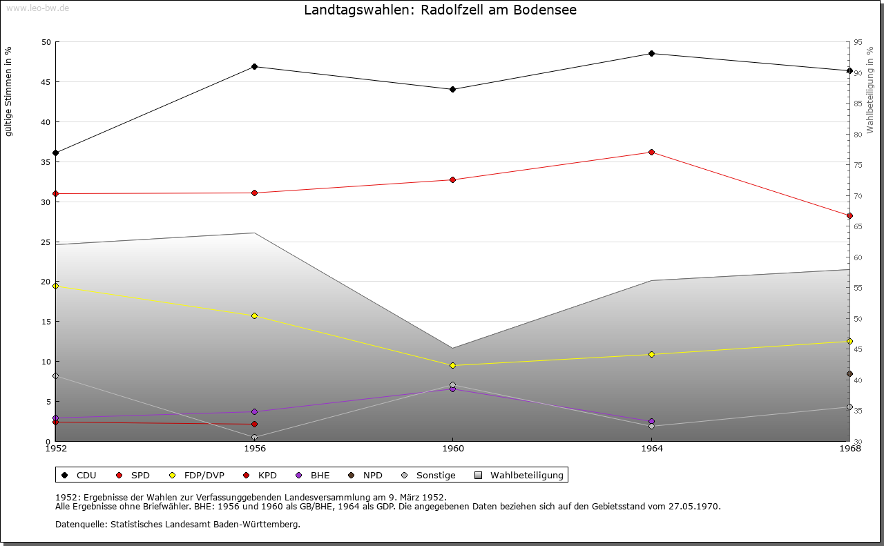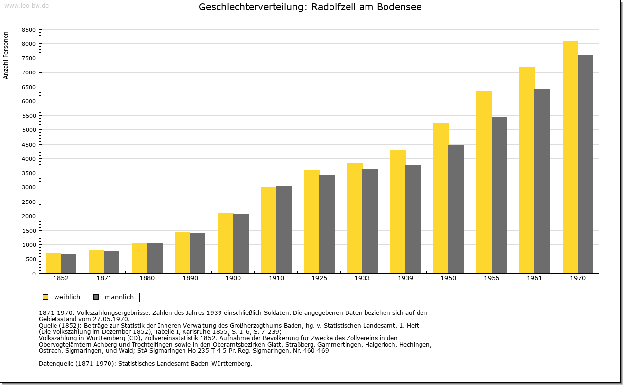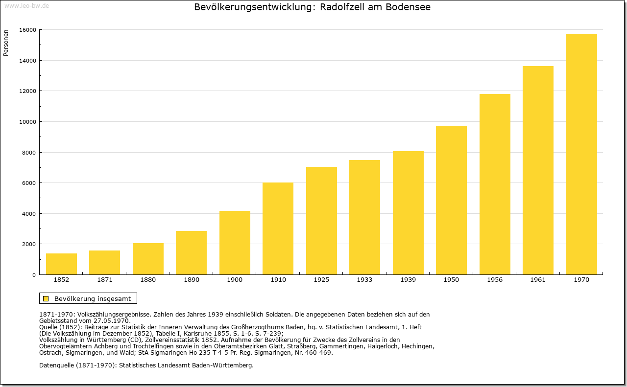 | Geschichte: | 830 (Корialüberlieferung 10. Jahrhundert) Ratoltescella, 1100 (Корialüberlieferung 15. Jahrhundert) Ratolfiscella, villa Ratolfi, 1161 Ratholfscelle. Radolfzell entstand aus einer um 826 auf Reichenauer Boden gestifteten Zelle des Bischof Ratold von Verona. Früher Besitz, wohl Dotationsgut des Klosters Reichenau. Um 1100 Verleihung des Marktrechts, wohl schon verbunden mit dem Münzrecht (1240-1698 nachzuweisen) und erste Erweiterung der Siedlung. 1267 zur Stadt erhoben. Nahezu rechteckige Stadtanlage um Marktplatz und Kirche mit rechtwinkliger Straßenführung. Stadtummauerung im 12. und 13. Jahrhundert mit vier Toren, umschloß die Marktsiedlung, die Zelle und den um 1300 befestigten und Burg genannten Kelhof. Befestigung 1683/85 mit fünf Bastionen verstärkt, größtenteils im 19. Jahrhundert abgetragen, drei Türme und Reste von Mauer und Graben sind erhalten. Keine größere Ausdehnung mehr vor dem 19. Jh. Seit 1609 Kanzlei des Ritterkantons Hegau in ehemaligem Adelshof, 1810-1872 Sitz des Bezirksamts, heute Amtsgericht. Das sogenannte »österreichische Schlößchen«, ein 1620 begonnener Renaissancebau, Anfang des 18. Jahrhunderts fertiggestellt. Sämtliche Rechte lagen wohl ursprünglich bei Kloster Reichenau. Vogtei und Meieramt waren vom 12. Jh. bis 1267 in Händen der Herren von Friedingen, dann wieder an Reichenau gezogen. 1/3 der Vogtei kam um 1300 an Habsburg, Radolfzell gehörte zu dessen Amt Aach. Das Ammannamt und 2/3 der Vogtei mit den Dörfern Böhringen, Reute und Überlingen am Ried wurden 1402 und 1421 durch Reichenau an die Stadt verpfändet, dieser 1538 verkauft und geeignet. Österreichischer Anteil, Reichsvogtei, 1462 von der Stadt erworben, bis 1778 und wieder seit 1780 ausgeübt. Ebenfalls im Besitz der Stadt war der Blutbann seit 1523 als Lehen von Österreich. 1415-1455 galt Radolfzell als Reichsstadt. Zur Stadtherrschaft gehörten außer den obengenannten Dörfern noch die Halbinsel Mettnau, erworben 1440, 1516 und 1527, Schwackenreute seit 1538, Friedingen seit 1539/44 und Hausen an der Aach 1544 bis 1703 und seit 1759. Landeshoheit bei der Landgrafschaft Nellenburg. Überwiegender Lebensunterhalt der Einwohner aus Korn-, Salz- und Weinhandel, auch etwas Gewerbe, im 18. Jahrhundert hauptsächlich aus Weinbau. Anfall an Württemberg 1806, an Baden 1810, bis 1872 Amtssitz, dann dem Bezirksamt/Landkreis Konstanz zugewiesen. 1975 zur Großen Kreisstadt erhoben. |