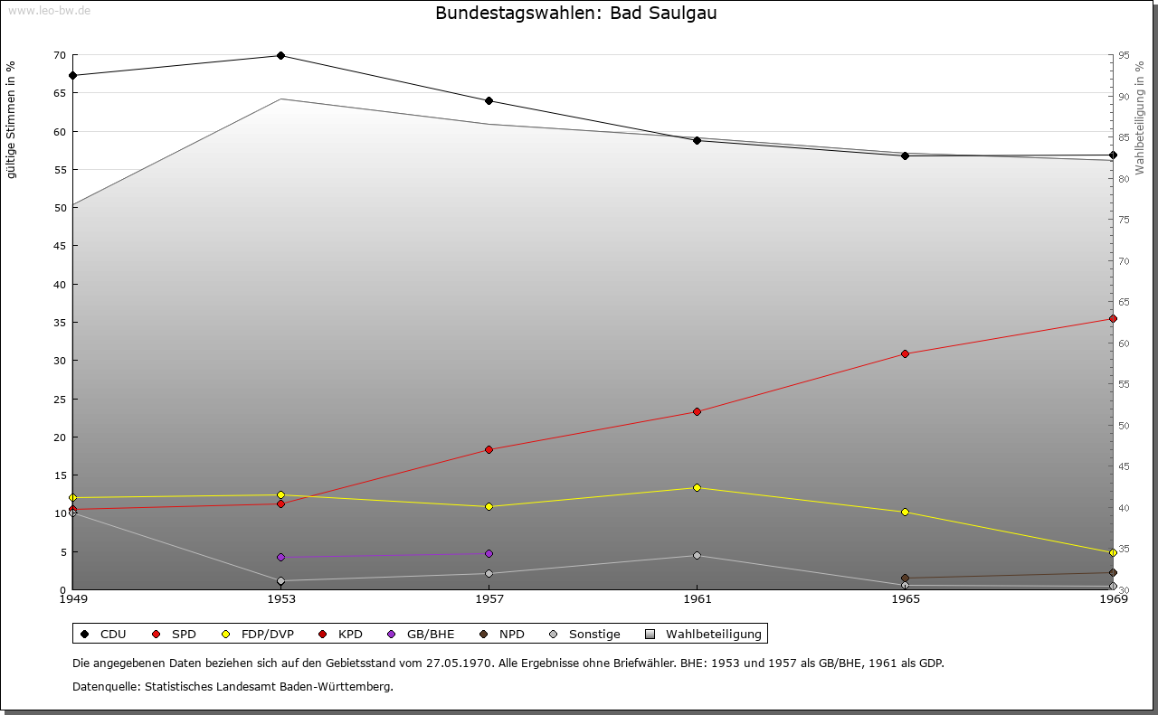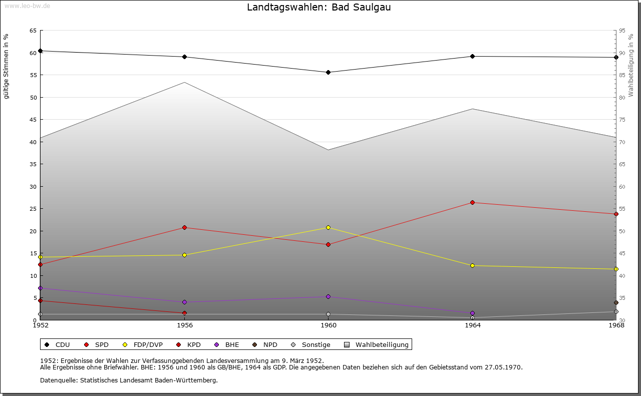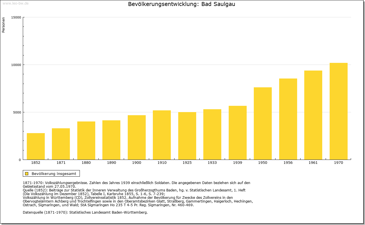| Geschichte: | 819 (Fälschung 12. Jahrhundert) Sulogau, 857 in . . . Sulagun, 12. Jahrhundert Sulgen (Stelle mit schmutzigem oder salzigem Wasser). Vermutlich Siedlung der älteren Ausbauzeit. Von 1171 an kommen niederadlige Herren von Saulgau als Reichsministerialen vor, deren Rechte in der 1. Hälfte des 13. Jahrhunderts vermutlich an die Herren von Sießen-Strahleck übergingen. Um 1249 bis 1273 Herren von Saulgau mit dem Beinamen Graf (comes). Als Stelle einer Burg wird der Gänsbühl (Klosterberg, Lammkeller) angesehen. Die Oberhoheit (vom Reich oder den Grafen von Veringen) ging Anfang des 13. Jahrhunderts an die Truchsessen von Waldburg und deren Zweig zu Warthausen über. Stadterhebung wohl unter staufischem Einfluss. 1239 Bürger (cives), um 1249 burgus, 1258 (oder wenig später) civitas. Kaiserliche Verleihung des Stadtrechts von Lindau 1288 und von Ulm 1300. Marktprivileg 1288. 1379 Befreiung von fremden Gerichten und 1473 vom Hofgericht Rottweil. 1375 Rathaus erwähnt (am Markt erst seit Anfang des 16. Jahrhunderts, Neubau 1820, abgebrochen 1977). 1434 Verleihung der Blutgerichtsbarkeit. Unter städtischer Hoch- und Niedergerichtsbarkeit standen außer dem engeren Stadtgebiet die Ortsetter von Moosheim und Wilfertsweiler, nur Niedergericht in Schwarzach. Außerhalb Etters standen alle Gerichtsrechte der Grafschaft Friedberg-Scheer zu. Das Stadtammanamt (1249 minister) war im Besitz des Stifts Buchau, das es wohl seit dem 15. Jahrhundert an die Stadt verlieh. Buchauer Amtshaus des 14./15. Jahrhunderts in der Pfarrstraße, an der ehemaligen Stadtmauer. 1299 verkauften die Truchsessen von Warthausen die Stadt an Österreich, das sie im 14. Jahrhundert an den Bischof von Konstanz und die Grafen von Hohenberg verpfändete. 1386/1402 an die Truchsessen von Waldburg als Pfand, 1454 Einrichtung der »mannserblichen Inhabung«. 1680 als eine der 5 Donaustädte an Österreich zurück. 1750 der Landgrafschaft Nellenburg (Oberamt Stockach) unterstellt. 1805 an Württemberg, Oberamtssitz, 1938 Sitz des Landkreises bis zu dessen Auflösung 1973. Lateinischer Schulmeister seit 1273 genannt. Präzeptoratsschule (Lateinschule) 1822. Realschule 1841. Katholisches Lehrerseminar 1879 bis 1935, dann Aufbaugymnasium. Progymnasium 1923, voll ausgebautes Gymnasium 1960. |