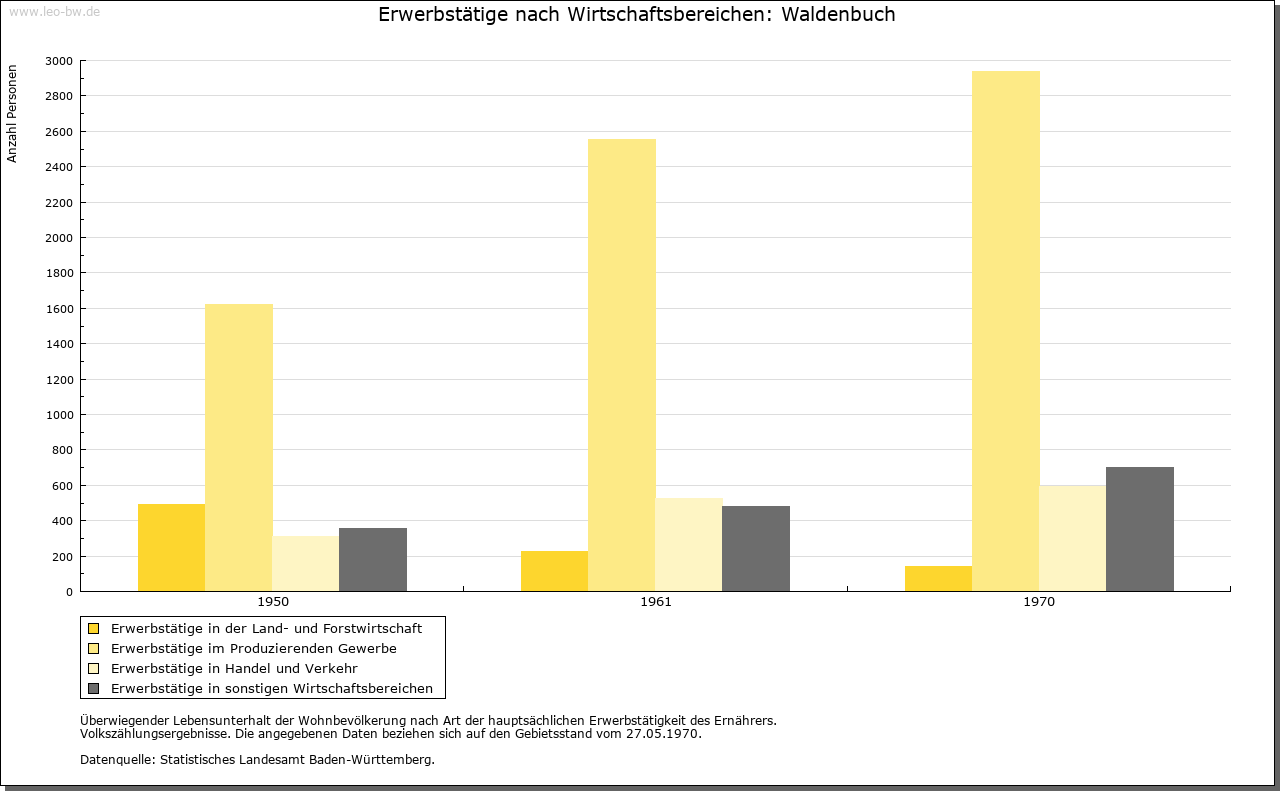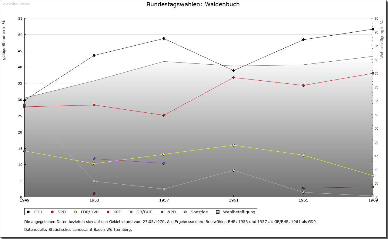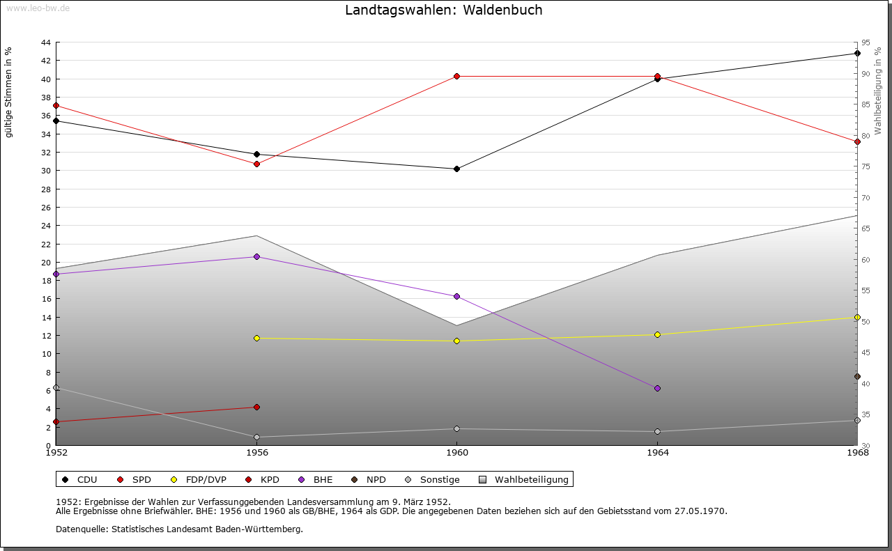 | Geschichte: | 1296 Waltenbuch (ein einem Waldo gehörender Buchenwald). Wohl Siedlung der jüngeren Ausbauzeit des Hochmittelalters. Der Ort bildete sich um eine Burg über dem Aichtal und gehörte als hohenbergisches Lehen seit 1307 den Herren von Bernhausen, von denen sich ein Zweig »von Waldenbuch« nannte und nach 1340 den Herzögen von Urslingen, die Waldenbuch 1363 an Württemberg verkauften. Der mit Hohenberg 1381 an Österreich übergegangene Lehensanspruch wurde erst 1499 aufgegeben. Die als solche erst 1363 erwähnte Stadt, vielleicht eine hohenbergische Gründung, zieht sich am Hang eines in das Aichtal vorspringenden Umlaufbergs empor. Seine Kuppe nimmt anstelle der einstigen Burg sowie der ebenfalls bis auf einen Turmrest verschwundenen mittelalterlichen Kirche das von Herzog Christoph 1562/66 erbaute Jagdschloss ein, eine nach der Talseite geöffnete Hufeisenanlage mit gewölbter Pfeilerhalle und Wendeltreppe; 1717 durch Frisoni erweitert und umgebaut. Es war bis 1807 Sitz des für den Schönbuch zuständigen Waldvogts (Oberforstmeister). Burg und Stadt waren durch dieselbe hohe Ringmauer geschützt, die wegen der später aufgesetzten Häuser großenteils erhalten blieb; die beiden Tore wurden beseitigt. Waldenbuch, vor 1363 wohl Verwaltungsmittelpunkt der mit ihm verkauften Dörfer Schönaich, Dettenhausen, Plattenhardt, (Ober-)sielmingen und Weiler, verlor seine Bedeutung. Es gehörte in württembergischer Zeit zuerst zum Amt Böblingen, seit Mitte 15. Jahrhundert zum Amt bzw. Amts-Oberamt Stuttgart und seit 1938 zum Landkreis Böblingen. |