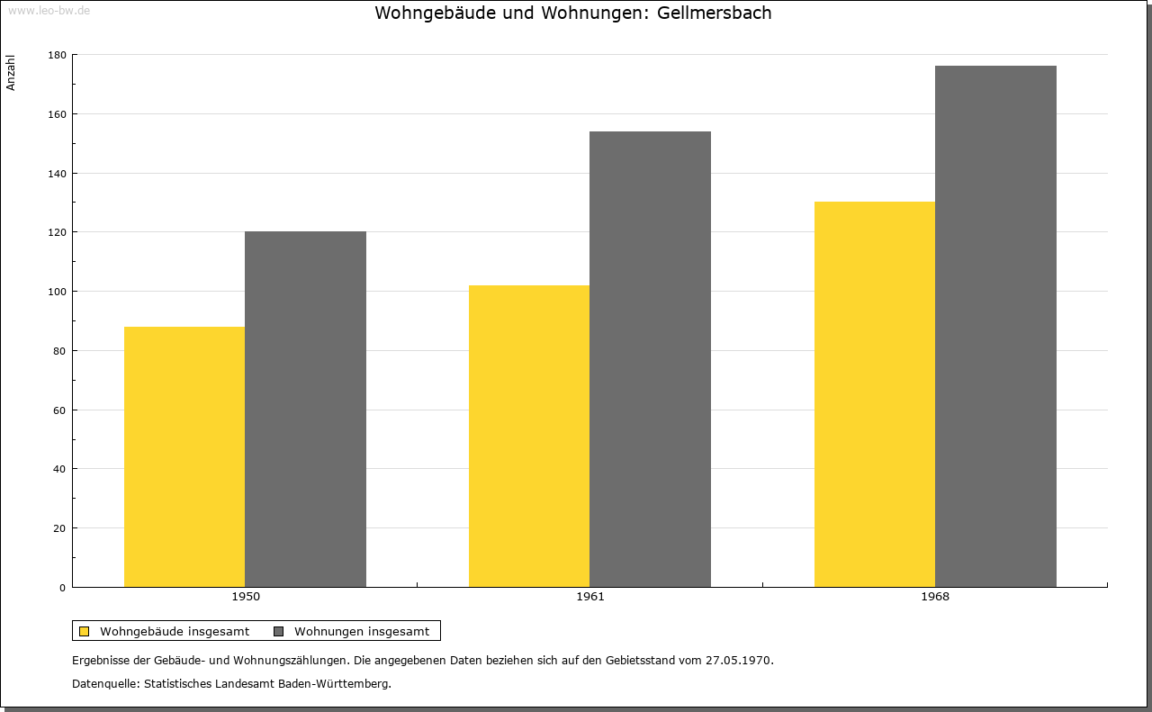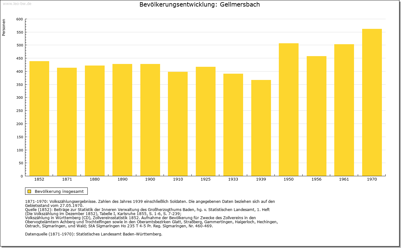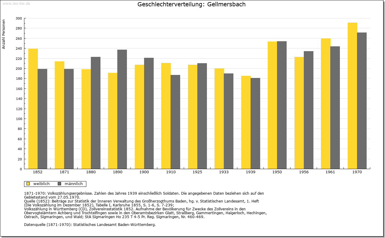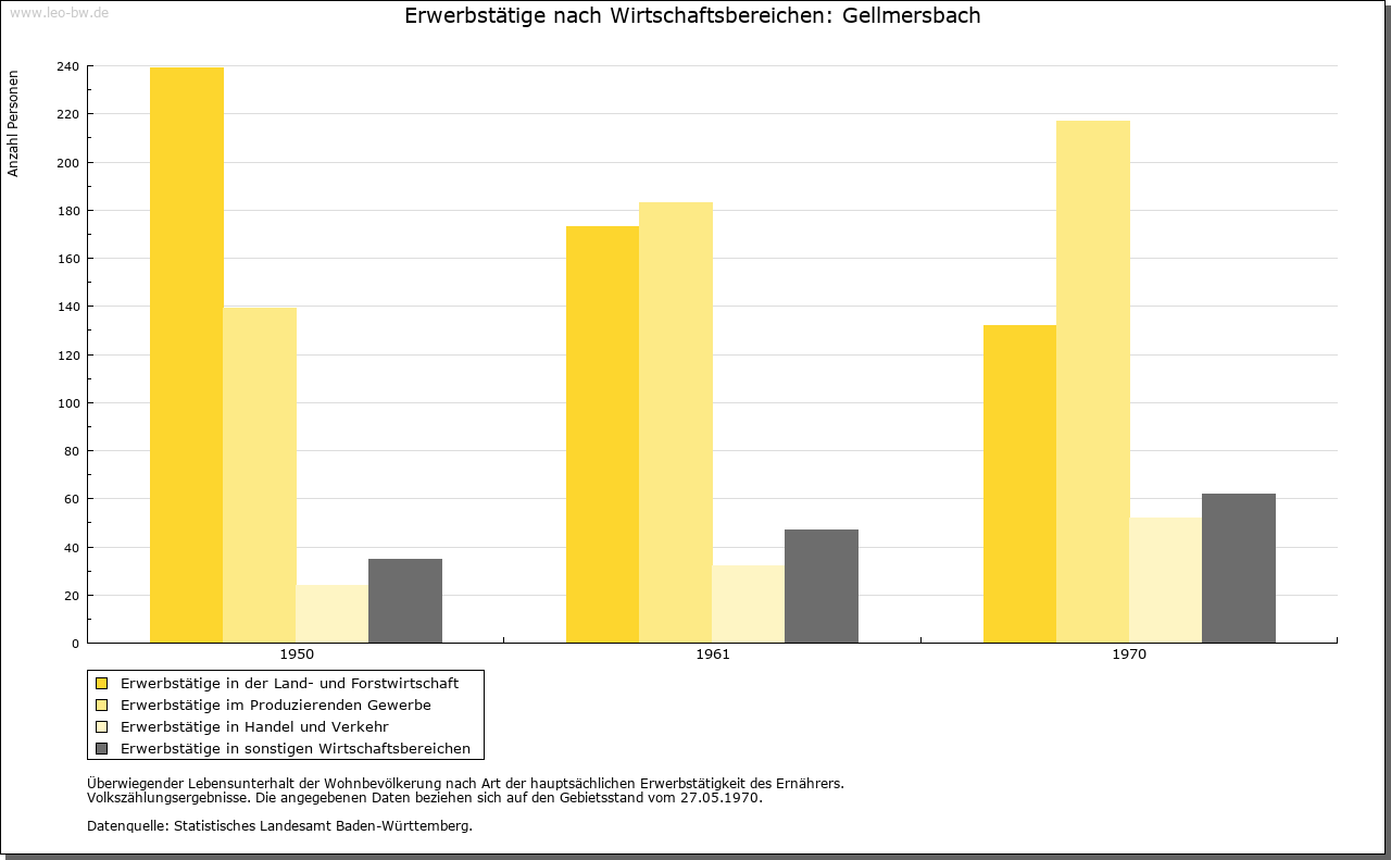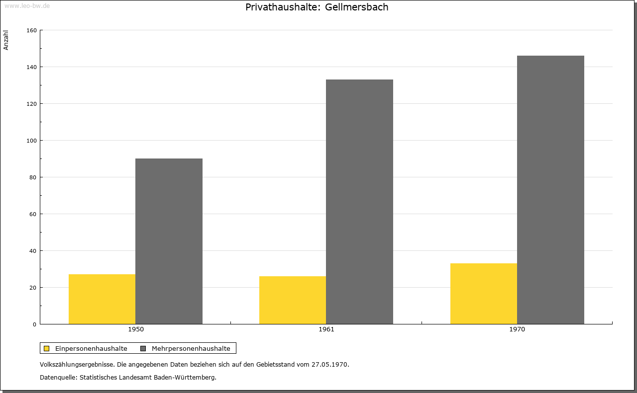 | Wirtschaft und Bevölkerung: | Um die Mitte des 16. Jahrhunderts umfasste der württembergische Ortsteil achtzehn und der deutschordische 26 Häuser, was auf knapp zweihundert Einwohner schließen lässt. Nach dem Bauernkrieg betrieb Württemberg die Vergrößerung seines Teils und verbesserte damit seine Stellung gegenüber dem Deutschen Orden. Im friedlosen 17. Jahrhundert nahm die Bevölkerung stark ab. Danach nahm sie wieder zu und stieg im 19. Jahrhundert auf mehr als vierhundert Seelen an. Gellmersbach war ganz überwiegend agrarisch strukturiert, lebte von der Landwirtschaft und der Viehhaltung. Eine herrschaftliche Kelter wurde Ende des 15. Jahrhunderts gebaut. Handwerker, die ohnehin von bloß lokaler Bedeutung waren, gab es nur wenige. Die Triebgerechtigkeit auf den Wiesen, im Wald und auf der Brache gehörte 1686 den Untertanen beider Ortsherren gemeinschaftlich, desgleichen die Schäferei. |