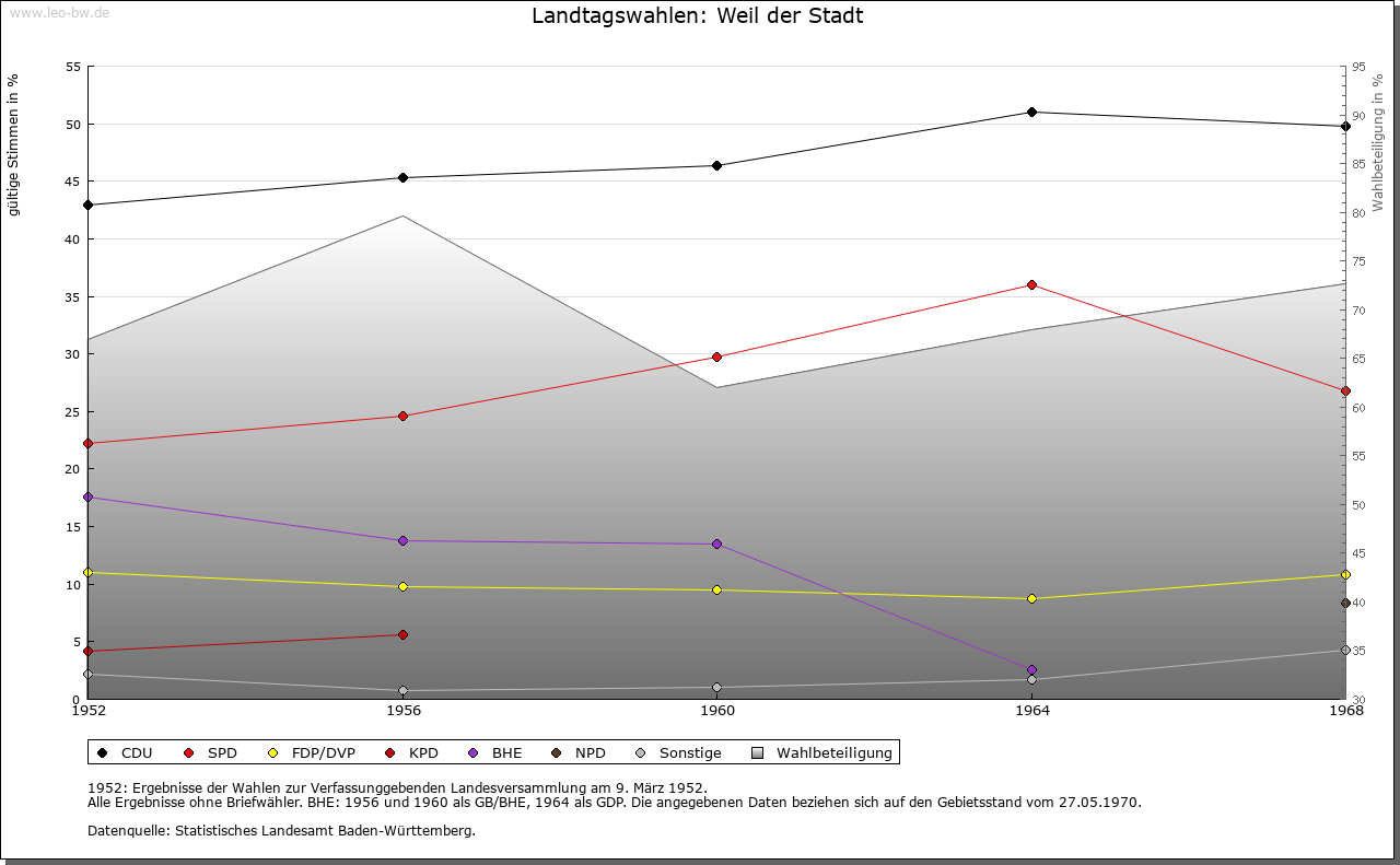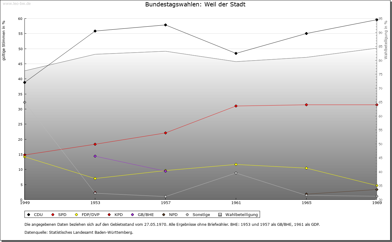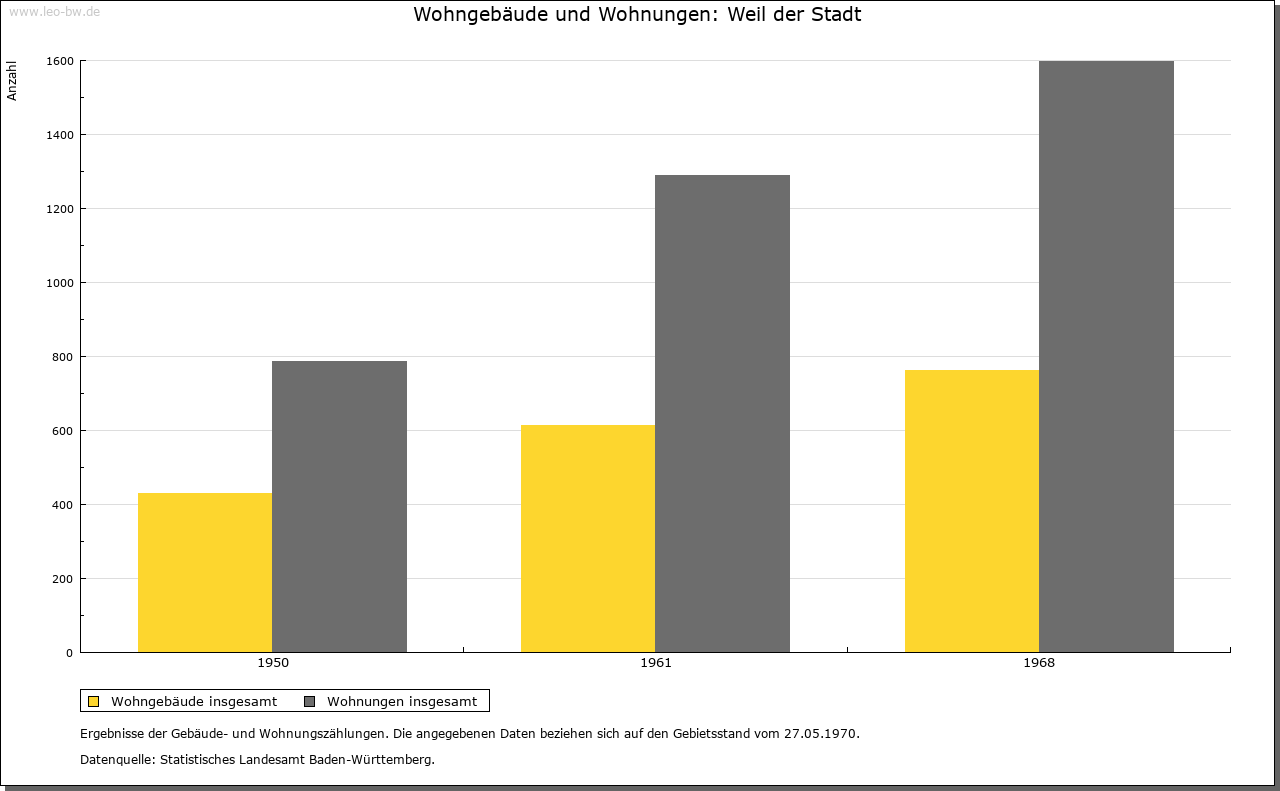 Ortslage und Siedlung (bis 1970): | In der breiten, nach Nordwesten leicht ansteigenden Talebene der Würm liegen die älteren Ortsteile links des Flüßchens. Weil der Stadt bietet eines der altertümlichsten Stadtbilder Württembergs, das sich weniger durch hervorragende Einzelbauten als durch Geschlossenheit auszeichnet. Die älteste Stadtanlage hat Rechteckform mit gitterförmigem Straßennetz und zwei sich auf dem rechteckigen Marktplatz rechtwinklig treffenden Straßen, den mittelalterlichen Fernstraßen. Im eng gedrängten Stadtkern sind zahlreiche Fachwerk- und Renaissancehäuser erhalten. Gegen die neueren Wohnviertel, die sich namentlich im Westen und Osten an den Talhängen ansteigend sowie um den Bahnhof im Norden bildeten, wurde der alte Stadtkern so weit wie möglich durch Grünanlagen abgesetzt. Die neuen Wohnbezirke finden sich an Josef-Haidler-Straße (1954), Max-Caspar-Straße (1960), Josef-Anton-Gall-Straße (1961), im Gebiet Heinrichsberg-Steinhöwelstraße (1960/71), Eselspfad (1960/68), Schießrain (1961/71), »Heugern« (1971), »Wirschig-Waidenberg« (1972/74) und Znaimer Straße (1975). Industrie ließ sich im Norden nahe von Bahnhof und Straße nach Merklingen nieder. |