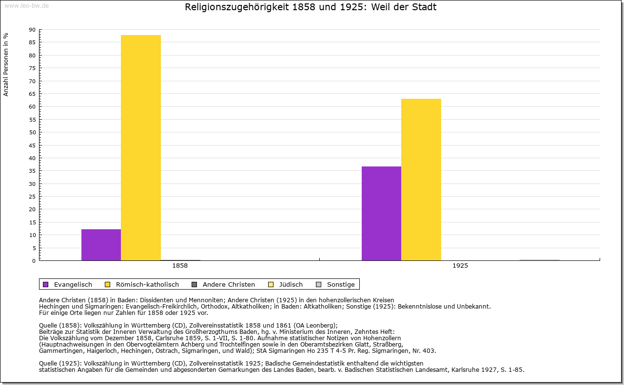 | Geschichte: | 11. Jahrhundert (Überlieferung 16. Jahrhundert) und 1075 Wile, 1334 in Wile zu der Stadt, daneben Weil bis ins 19. Jahrhundert, seit 1854 heutige Schreibweise amtlich. Sicher Siedlung der Merowingerzeit; weit über 50 Gräber der alemannischen und fränkischen Zeit in einem großen westlich der Stadt und in sie hineinziehenden Gräberfeld festgestellt. Um 1060 erhielt Kloster Hirsau von Graf Adalbert von Calw, Bertold von Stauffenberg und anderen sehr reichen Besitz. Das calwische Dorf Weil, unmittelbar südlich der späteren Stadt und teilweise wohl in den späteren Mauerring einbezogen, kam um 1132 an die Welfen und wahrscheinlich 1191 an die Staufer. Nach Weil der Stadt nannte sich eine Adelsfamilie, wohl eines Stammes mit den von Kröwelsau, die im 14. Jahrhundert mehrfach bezeugt ist. Die Gründung der rechteckig angelegten Stadt durch die Staufer erfolgte wohl zwischen 1223 und 1235, sicher vor 1241. Nach Südwesten Furter Vorstadt (1431), nach Osten Renninger Vorstadt (1445), 1534 auch Spitalvorstadt genannt. Stadtbefestigung mit Gräben, hohen Rundtürmen und Toren noch weitgehend erhalten. Die schönsten Fachwerk- und Renaissancehäuser stehen zwischen Spitalvorstadt und Marktplatz. An diesem das Alte Rathaus, ein spätmittelalterliches Steinhaus (einstiger Adelssitz) und das Neue von 1665 mit Rundbogenlaube. Unweit von Keplers Geburtshaus dessen Denkmal, ferner zwei Marktbrunnen, der von 1537 mit Standbild Karls V. Bemerkenswert die Hirsauer Kellerei, der Bebenhäuser Hof und der Herrenalber Pfleghof (Gasthaus zum Hirsch). Wohl um 1275 wurde Weil der Stadt Reichsstadt. Die bedrohte Reichsfreiheit konnte trotz Verpfändung 1376/78 an Württemberg behauptet werden. Karl IV. verlieh 1373 eigene Gerichtsbarkeit, König Wenzel 1398 Vogtei und Blutbann und verpfändete der Stadt 1403 das Schultheißenamt. Weil der Stadt war seit 1376 Mitglied des Schwäbischen Städtebunds (in der Schlacht bei Döffingen 1388 fielen 66 Bürger) und im 14. Jahrhundert an den innerschwäbischen Städtebündnissen beteiligt. Bei der kleinen Reichsstadt war die Territorienbildung über Ansätze nicht hinausgekommen. Die Vogtei über Ihingen (Gemeinde Renningen), 1649 verkauft, war nur württembergisches Lehen und in Möttlingen (Gemeinde Bad Liebenzell Landkreis Calw), das die Stadt 1387 zur Hälfte erwarb, konnte man sich gegen Württemberg als Mitbesitzer nicht durchsetzen. Im 14. Jahrhundert stand Weil der Stadt unter pfälzischem, seit Mitte 15. Jahrhundert unter badischem Schutz. Da seit dem 14. Jahrhundert immer mehr von württembergischen Gebiet umschlossen, stellte sich Weil der Stadt im frühen 16. Jahrhundert zeitweise unter württembergischen Schutz. Der Sieg der Gegenreformation in Weil der Stadt verschärfte die Spannungen und veranlasste Württemberg öfters zu politischen und wirtschaftlichen Repressalien. Schultheiß und Schöffen, seit 1275 bezeugt, aber sicher früher, wurden im 14. Jahrhundert durch Bürgermeister und Rat, den Magistrat, ersetzt, der Schultheiß auf den Vorsitz des Stadtgerichts abgedrängt. Die seit dem 16. Jahrhundert häufigen Streitigkeiten zwischen Magistrat und Bürgerschaft führten zur Schaffung eines beratenden Bürgerausschusses und zu mehrmaligem Eingreifen kaiserlicher Kommissionen; die daraus resultierende Stadtordnung von 1687 wurde 1754, 1776 und 1795 reformiert. Kurz vor Kriegsende 1648 wurde die Stadt von den Franzosen erobert und brannte fast völlig ab. Durch den Frieden von Luneville fiel Weil der Stadt 1802 an Württemberg; es war zunächst Sitz eines Stabs-, dann Oberamts und gehörte seit 1808 zum Oberamt, seit 1938 Landkreis Leonberg. Personen: Lukas Moser, um 1400, Maler. Heinrich Steinhöwel, 1412-1482, Arzt, Humanist und Übersetzer. Paul Scriptoris, um 1450-1505, Dozent der Theologie, Philosophie und Mathematik in Tübingen. Johannes Brenz, 1499-1570, Reformator. Johannes Kepler, 1571-1630, Astronom. Joseph Anton Gall, 1748-1807, Bischof von Linz. Anton Beyerle, 1824-1886, Reichsgerichtspräsident. |