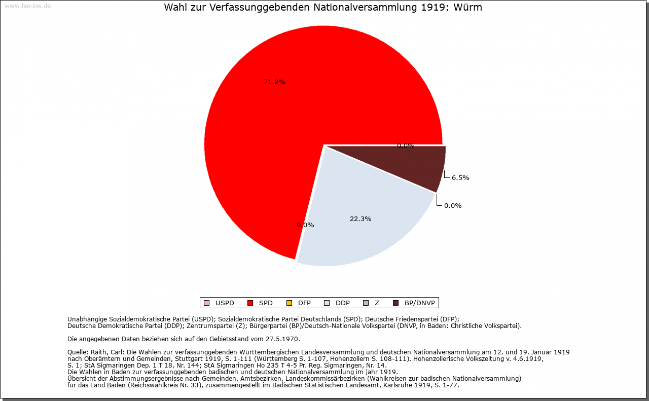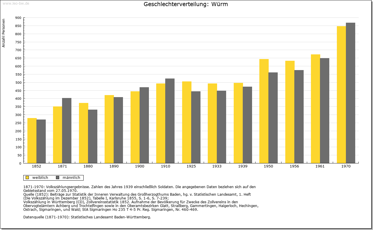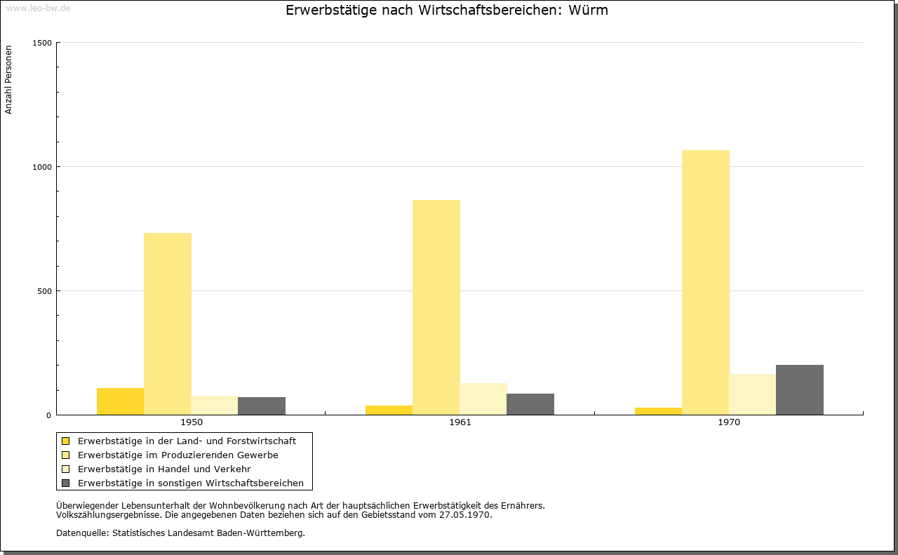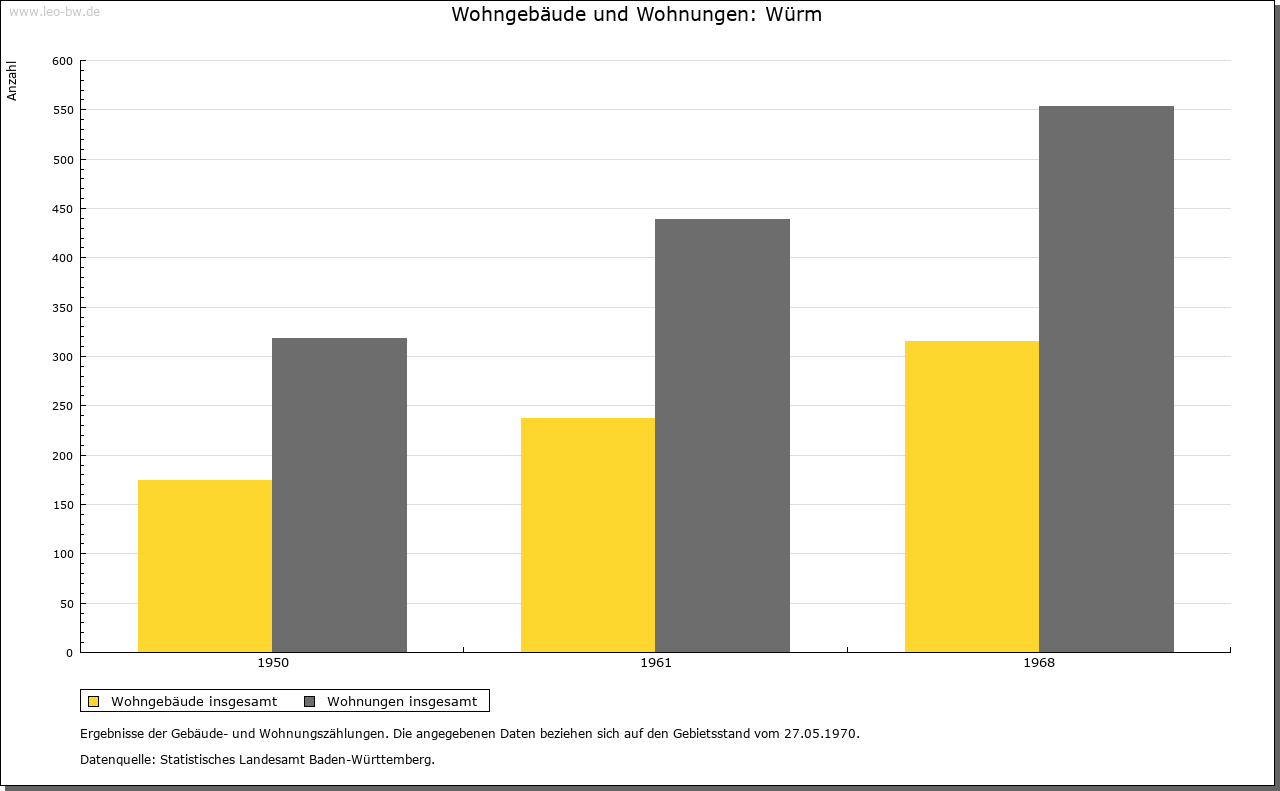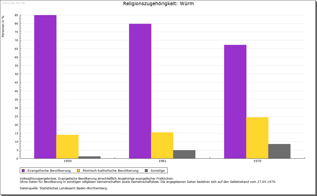 | Kirche und Schule: | Kirchlich gehörte Würm bis 1868 zur Altstadtpfarrei von Pforzheim. Danach wurde es selbständiges Vikariat, 1901 Pfarrei. Die Marienkirche entstammt dem 16. Jahrhundert. Sie wurde 1760 und 1845 baulich verändert. Die Katholischen werden von der Pfarrei St. Elisabeth in Buckenberg betreut: 1970 wurde eine neue Kirche mit Gemeindezentrum errichtet. |