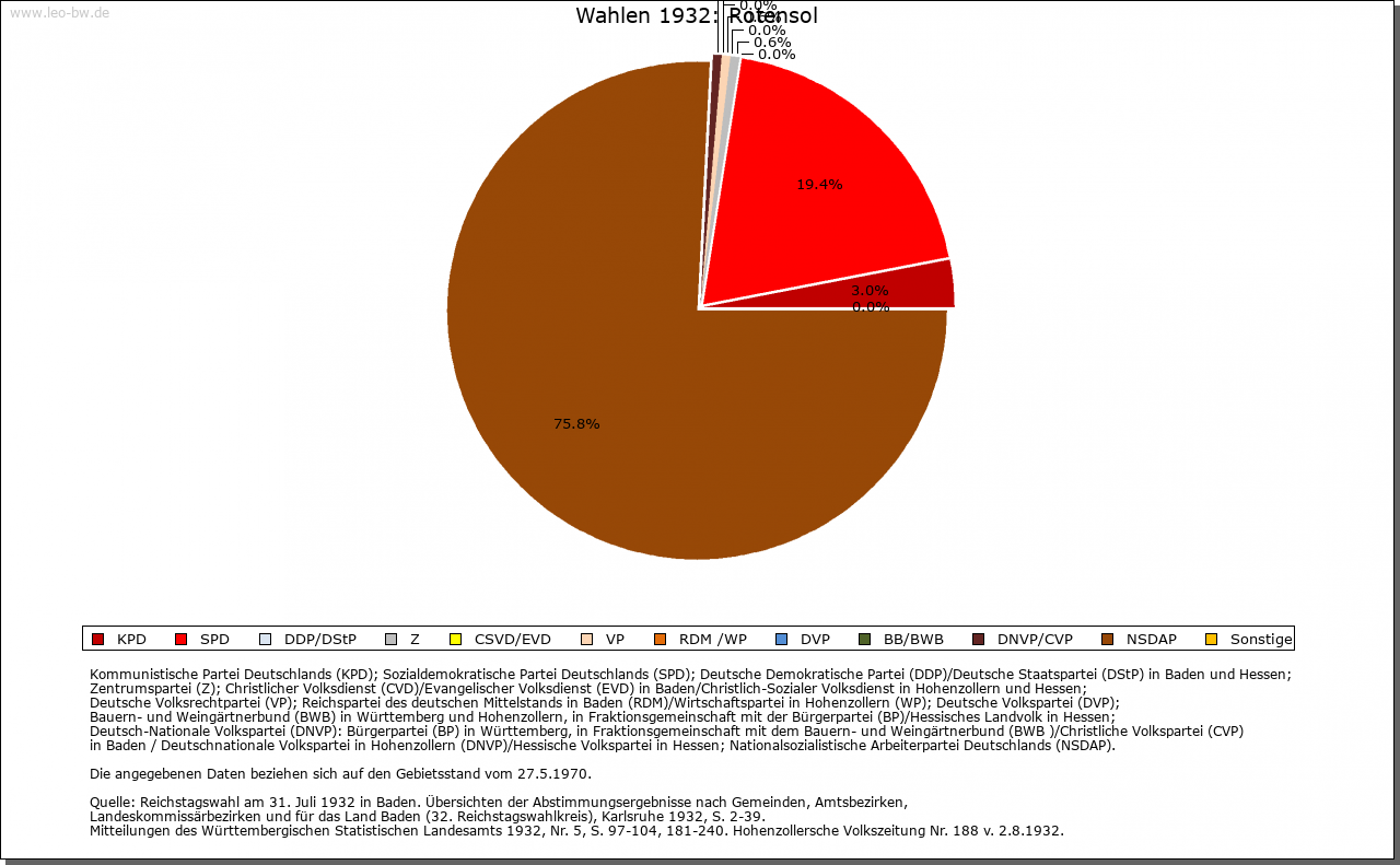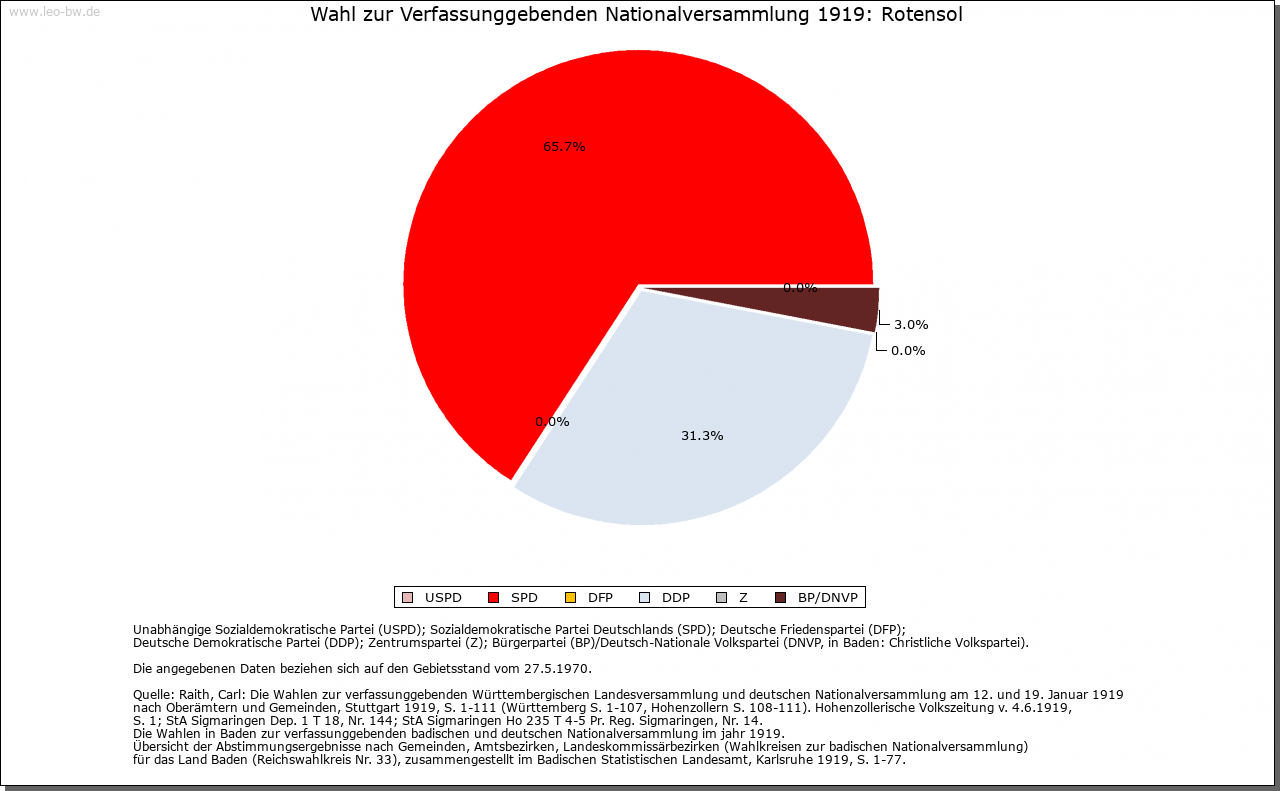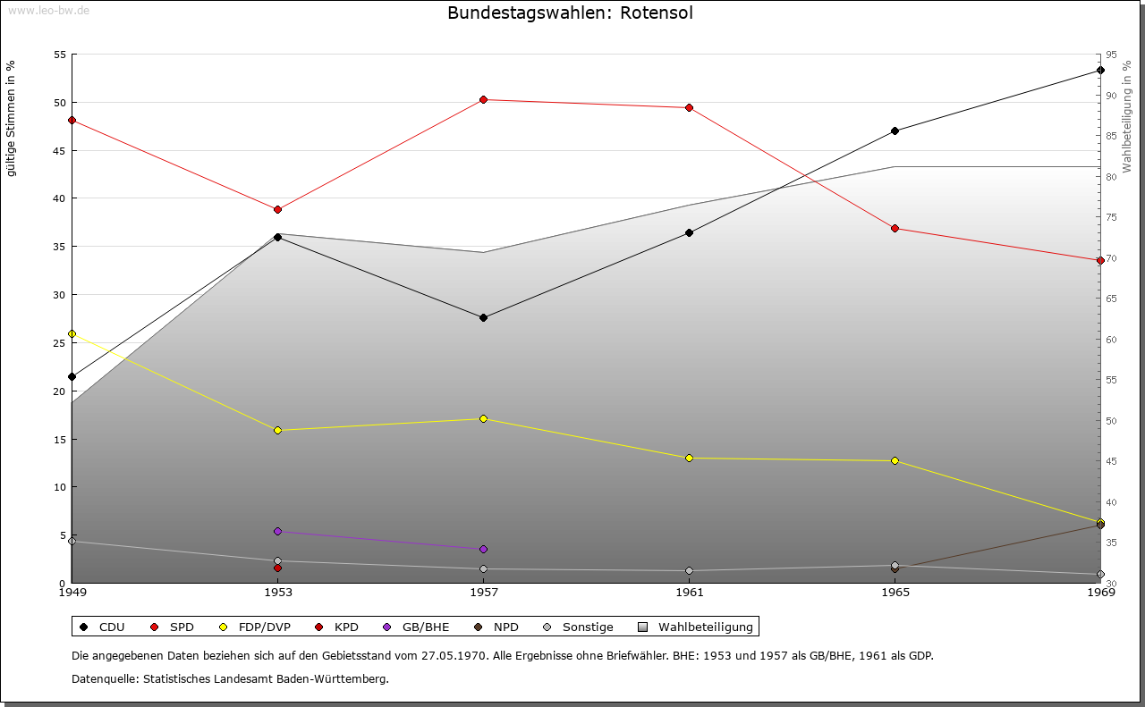 | Geschichte: | Um 1149 Rotensol, Stelle mit rot getrübtem Wasser. Damals Grenzmarke, vielleicht erst nachher von Gräfenhausen her die Siedlung angelegt. Das Dorf 1269 durch die Grafen von Vaihingen an Herrenalb verschenkt, blieb unter württembergischer Oberhoheit, obwohl es im Schirmvertrag 1497 Baden zugesprochen war. |