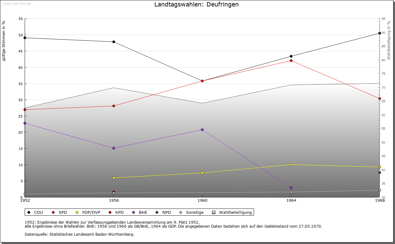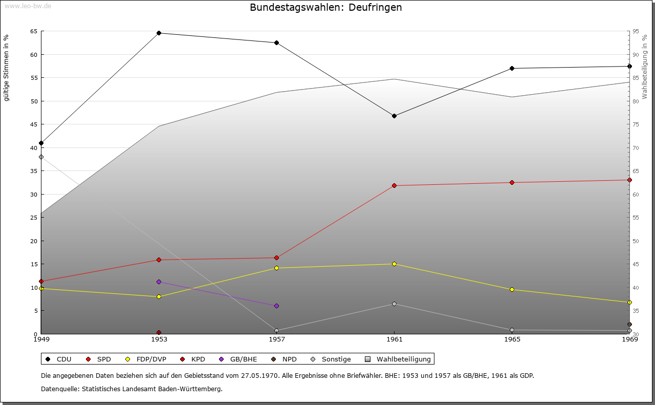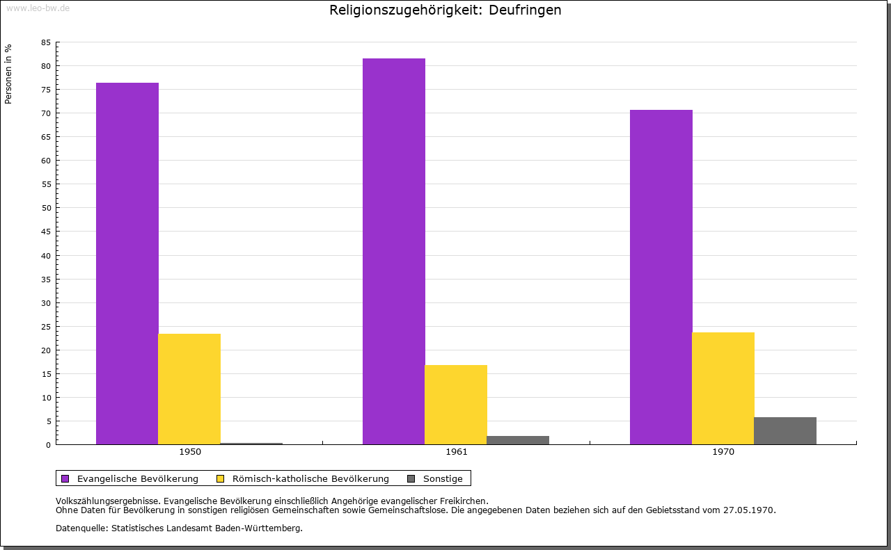 | Geschichte: | 1268 Tuveringen (Personennamen). Reihengräber 1950/57 gefunden. Ortsadel nur 1324 und 1336 erwähnt. Deufringen kam von den Pfalzgrafen von Tübingen 1357 mit Böblingen an Württemberg, von dem es 1402-1699 die von Gültlingen und 1723 die von Schütz zu Lehen trugen. Deufringen war Kammergut, jedoch nicht der Landschaft, sondern der Vogtei bzw. dem Oberamt Böblingen unterstellt. |