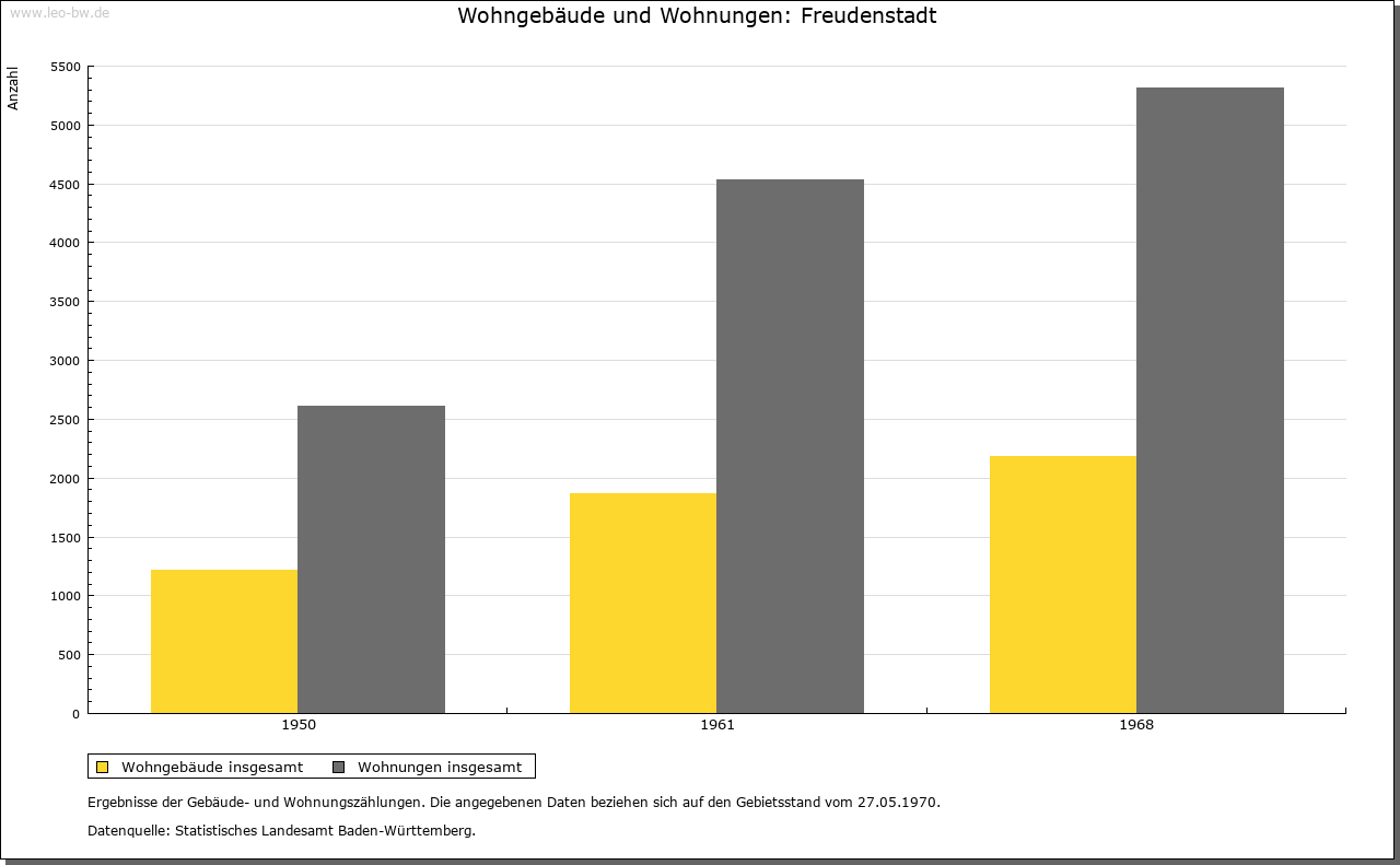| Geschichte: | 1601 Freudenstadt, Name wohl anläßlich der Gründung vom Bauherrn verliehen, gelegentlich nach diesem auch Friedrichsstadt genannt. Herzog Friedrich gründete 1599 auf der Passhöhe oberhalb Christophtals und an der alten Kniebisstraße die neue Stadt zur Förderung des dort betriebenen Bergbaus und zur Aufnahme von Religionsflüchtlingen. Der nach den Wünschen des Herzogs abgeänderte Stadtplan von Heinrich Schickhardt zeigt einen mühlbrettförmigen Grundriß mit ursprünglich 5 Häuserzeilen um einen übergroßen Marktplatz, auf dem über Eck ein Schloßbau errichtet werden sollte; er kam nie zur Ausführung. In der Mitte des Platzes kreuzten sich die beiden Straßen, die die Stadt in Viertel teilten. Die Ecken des Marktes sollten durch stattliche Winkelhakenbauten betont werden, von denen aber nur die Stadtkirche und das Kauf- und Rathaus (1602/09, 1632 abgebrannt, 1668/72 Neubau nur als Rathaus an anderer Stelle) errichtet wurden. Die zunächst für 500 Hofstätten (etwa 5000 Seelen) geplante Stadt erwies sich als zu groß, daher der Plan 1608 auf vier Zeilen reduziert. Pläne des Stadtgründers zur Befestigung wurden erst unter Herzog Eberhard III. wieder aufgenommen; auf dem Gelände der größtenteils wüstliegenden 4. (und 5.) Häuserzeile begann man eine unregelmäßige Achteckanlage mit 8 Bollwerken und 4 Toren. Sie blieb nach dem Tod Eberhards (1674) unvollendet, zumal ihr Verteidigungswert umstritten war. Ihre Tore wurden 1871-1881 abgebrochen, die Wallanlagen bereits seit 1830 zur Stadterweiterung freigegeben, was zum Teil die Fünfzeiligkeit der frühen Stadtanlage wiederbrachte. Der Marktplatz war umgrenzt von einzelstehenden kleineren giebelständigen Häusern, deren Untergeschosse sich in Arkaden öffneten. Er wurde zu großen Teilen im 17./18. Jahrhundert von der Bürgerschaft für Gärten, Schuppen und dergleichen genutzt. Damals entstanden auch die Brunnen und das Oberamtsgebäude (1784) auf dem Platz. Totale Zerstörung vor allem der Altstadt am 16./17. 4. 1945 vor und nach der Einnahme durch französische Truppen. Die Stadt Freudenstadt war zunächst herzogliches Kameralgut, trat 1618 der Landschaft bei. Seit Gründung war Freudenstadt Amtsstadt eines der kleinsten württembergischen Ämter. 1759 zum Oberamt erhoben, gewann es seine eigentliche Bedeutung erst mit der Verwaltungsneugliederung 1807, die Freudenstadt zum Zentrum eines um ein Vielfaches vergrößerten Amtsbezirks machte. 1938 Landkreis Freudenstadt. Eine eigentliche Stadtrechtsverleihung für Freudenstadt ist nicht bekannt, da es gleich als Stadt gegründet wurde. Wappen, Bürgermeister und Magistrat seit 1603. Die neue Stadt erhielt 1605 ihre Gemarkung (etwa 2400 Morgen) durch Machtspruch des Herzogs aus der Mark des Dornstetter Waldgedings und von Baiersbronn zugeteilt, nicht ohne folgende lange Rechtsstreitigkeiten. Die Flur war in drei Zeigen eingeteilt, in der jeder Bürger drei Morgen erhielt. Christophstal wurde 1616 von Dornstetten nach Freudenstadt inkorporiert, doch ohne volles Bürgerrecht. Bis 1839 gehörte der um 1800 entstandene Weiler Friedrichstal (vergleiche Baiersbronn) zu Freudenstadt. 1833 erhielt Freudenstadt etwa 2300 Hektar Wald des ehemaligen Waldgedings vom Staat zugeteilt, so daß sich die Gemarkung mehr als verdoppelte. Der Bevölkerung waren 1601 zunächst auf 15 Jahre besondere Freiheiten und Vergünstigungen verliehen worden, wodurch zahlreiche protestantische Ansiedler aus den katholischen Alpenländern, besonders Kärnten, der Steiermark und Krain, aber auch bereits württembergische Untertanen herbeigezogen wurden. Das zunächst sprunghafte Wachstum (1610: etwa 2000 Einwohner) wurde durch Pest 1610/11 und 1635, Krieg und Brand 1632 jäh unterbrochen (1652: etwa 300 Einwohner). |