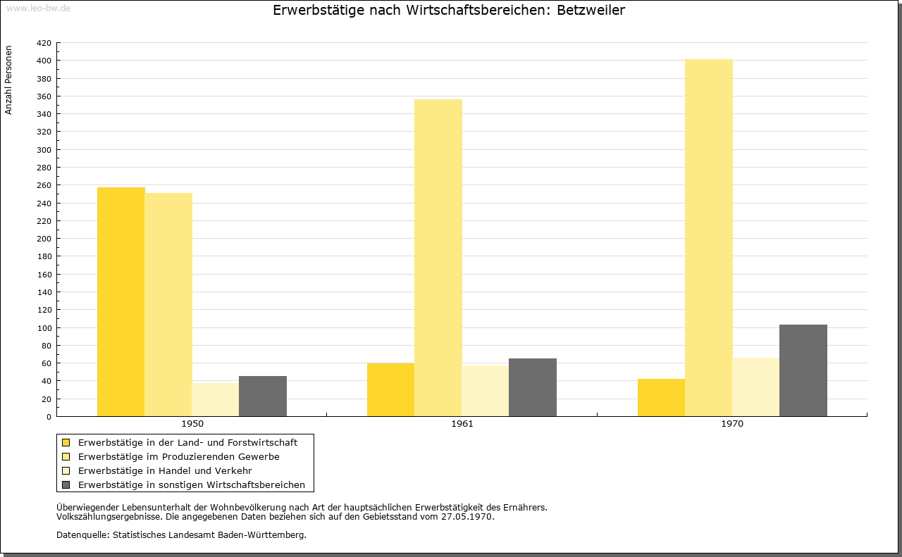 | Kirche und Schule: | Kirchlich war Betzweiler 1353 Filial von Dornhan. Kapelle zum Heiligen Georg. Evangelische Pfarrei 1882 eingerichtet. Spätgotische Kirche im ummauerten ehemaligen Friedhof. Katholiken zu Alpirsbach. |