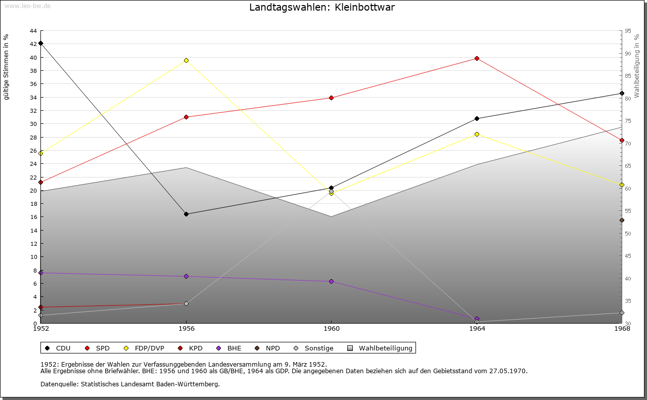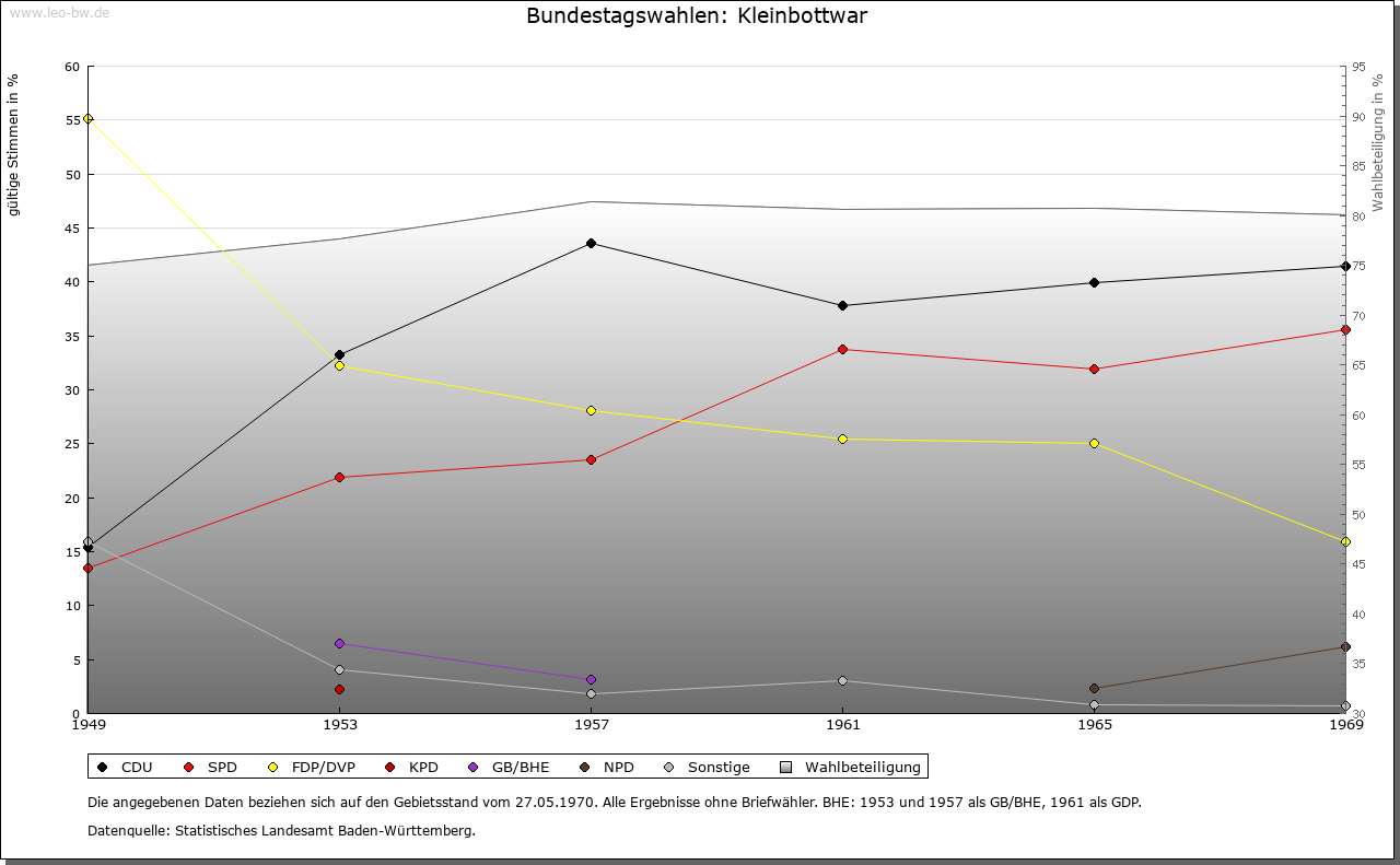 | Geschichte: | 1245 (Kopialüberlieferung 15. Jahrhundert) erstmals zwischen Groß- und Kleinbottwar unterschieden. Kleinbottwar: Botewar inferius, um 1260 minus Botebor. 1245 war hier das Stift Backnang begütert. Kleinbottwar gehörte zur Burg (Alten-) Schaubeck, nach der sich 1272-1412 ein wohl im Dienst der Markgrafen von Baden stehendes Niederadelsgeschlecht nannte. 1406 vermochte Württemberg einen Teil der Hoheits- und Besitzrechte in Kleinbottwar zu erwerben. Den 1480 mit der württembergischen Ortshälfte belehnten von Plieningen gelang es 1497, auch die bis dahin dem Kloster Steinheim gehörende Ortshälfte zu kaufen. 1641 erhielten sie das bisherige württembergisches Mannlehen als volles Eigentum. Nach ihrem Aussterben (1645) kam Kleinbottwar durch Erbschaft an die von Gaisberg, 1765 an die von Kniestedt und schließlich über die Brusselle-Schaubeck 1853 an die Grafen Adelmann von Adelmannsfelden. Die dem Ritterkanton am Kocher inkorporierte Herrschaft fiel 1805 an Württemberg. 1807 wurde Kleinbottwar dem Oberamt Marbach, 1938 dem Landkreis Ludwigsburg zugewiesen. An die ritterschaftliche Vergangenheit erinnern im Dorf das Mittelschloss und das Untere Schloss, außerdem talabwärts Schloss Schaubeck. |