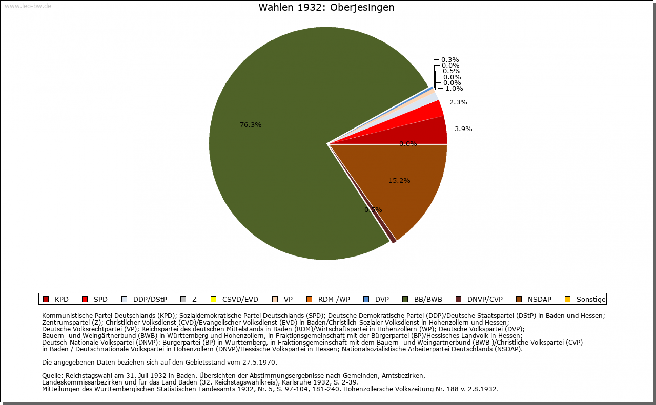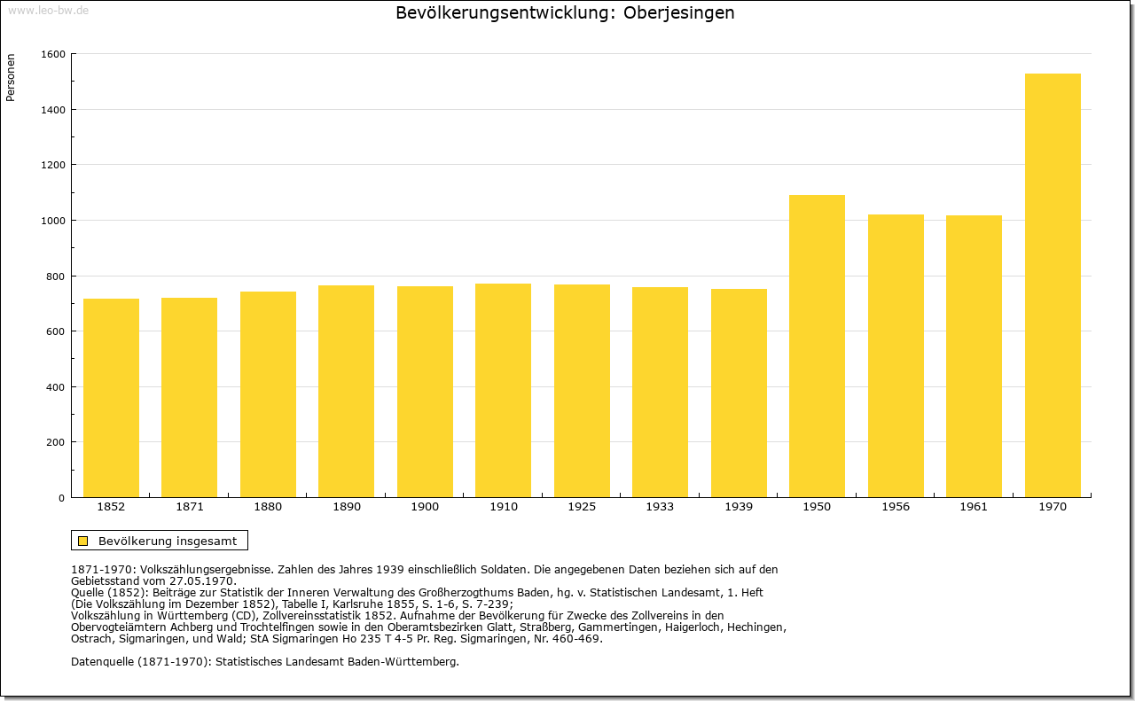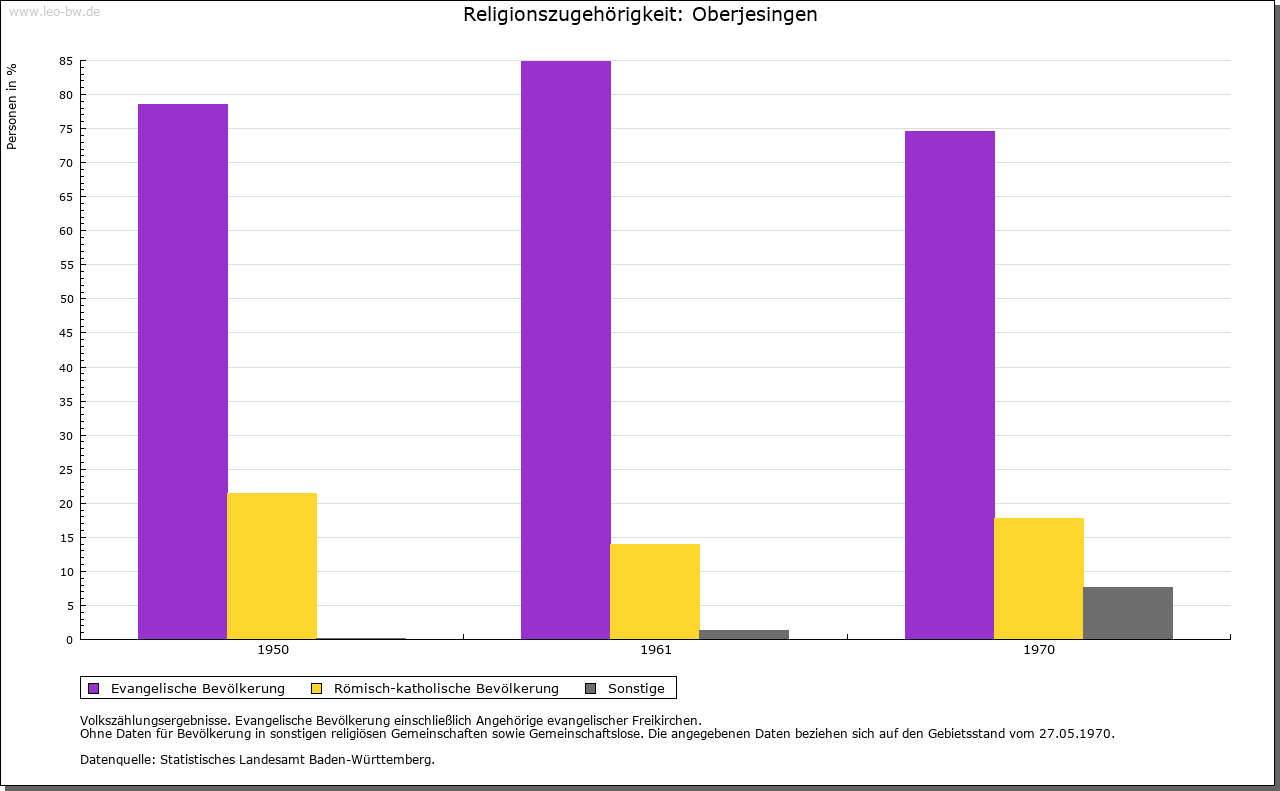 | Geschichte: | 1315 Osiggen, 1323 Uesingen (Personenname). Alemannengrab 1937 aufgedeckt; der Ort wohl merowingerzeitlich. Nachdem die Pfalzgrafen von Tübingen das Dorf zwischen 1342 und 1351 an Kloster Hirsau wie an die von Gültlingen verkauft und von ihnen wieder rückerworben hatten, wurde es 1382 mit Herrenberg an Württemberg veräußert. Oberjesingen zählte zum Amt bzw. Oberamt Herrenberg (bis 1817 zu dessen Stab Kuppingen), seit 1938 zum Landkreis Böblingen. |
