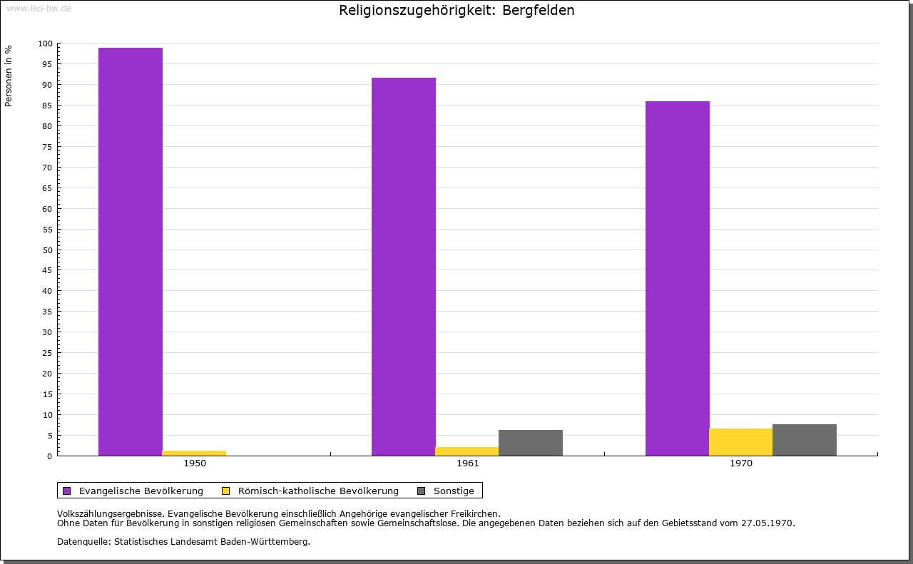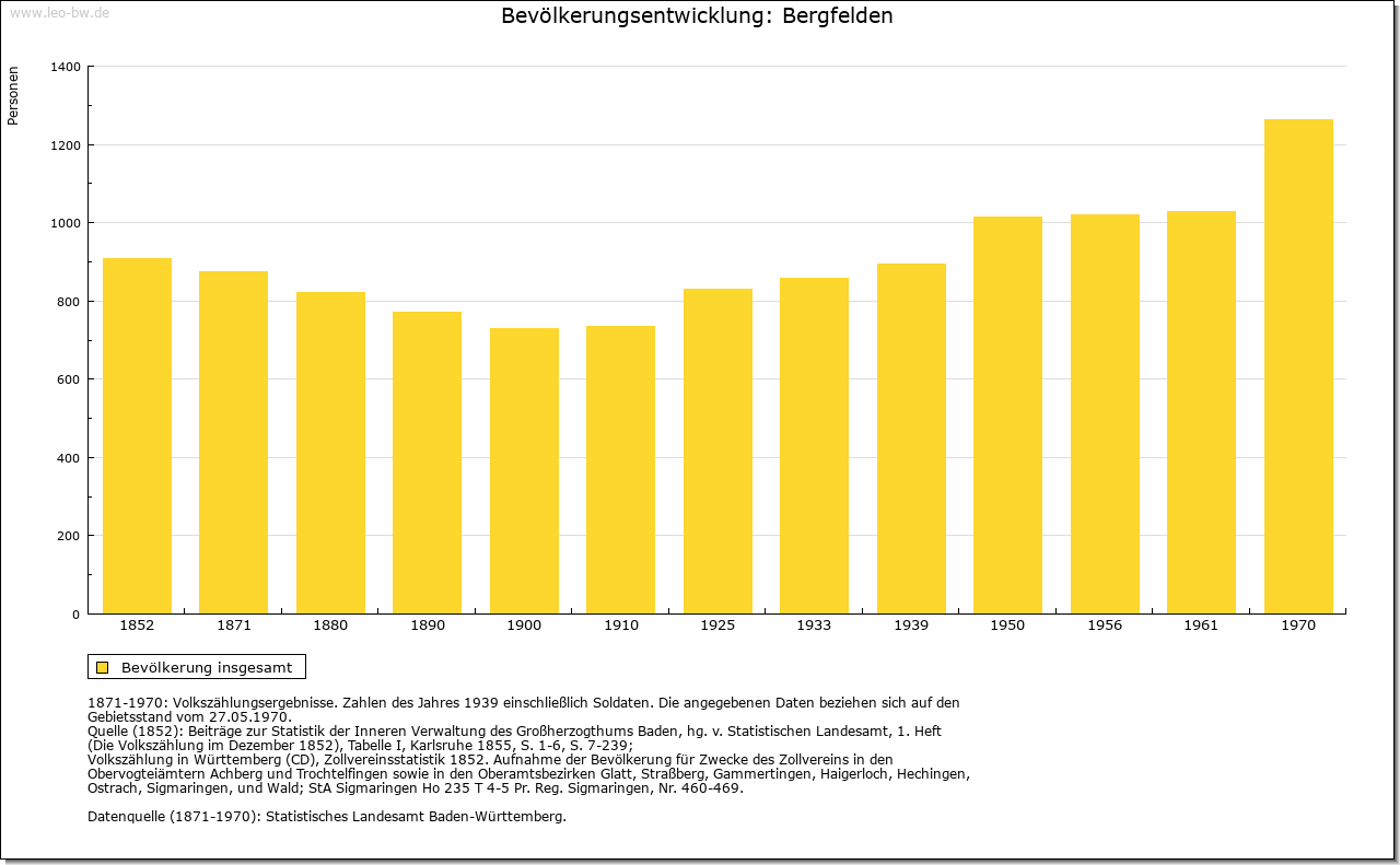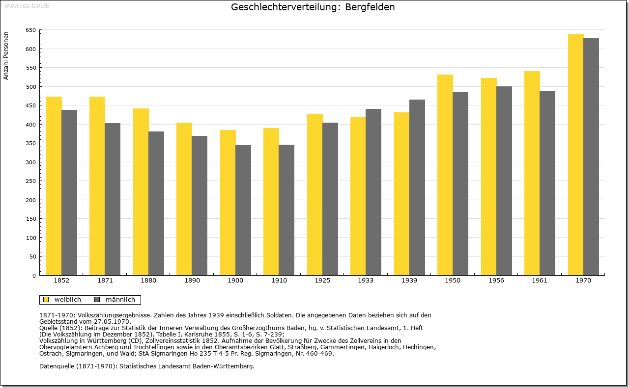 | Geschichte: | Die ursprünglichen Inhaber des Orts sind nicht bekannt. Ein 1222 im Gefolge des Grafen Berthold von Sulz genannter Pleban »Burchard de Bercuelt« sowie die 1420 nachweisbare geroldseckische Verfügungsgewalt über den Zehnt und das Patronatsrecht verweisen auf sulzische Ursprünge. Die umfangreichere teckische Grundherrschaft (1304) und die spätere Zugehörigkeit zum württembergischen Amt Rosenfeld hingegen deuten auf eine teckische Herrschaft hin. Möglicherweise stand der Ort zuerst unter sulzischer und danach unter teckischer Herrschaft. Erste Hinweise auf eine württembergische Präsenz im Ort sind die Rolle Graf Ulrichs IV. von Württemberg als Garant bei einem Güterverkauf Burkarts von Bondorf an Heinrich von Ergenzingen 1345 und eine Lehensvergabe 1430 durch Graf Ludwig von Württemberg. Die landesherrlichen, hoch- und niedergerichtlichen Rechte erscheinen dann erst 1524 in ausschließlich württembergischer Verfügungsgewalt. Vom württembergischen (Ober-)Amt Rosenfeld kam der Ort 1808 an das Oberamt Sulz. Die Herzöge von Teck veräußerten 1304 mit zwei Höfen und vier Lehen einen größeren grundherrschaftlichen Komplex, der ihnen als Allod gehörte, an die Herren von Bondorf, welche 1345 ihrerseits Besitz an die Herren von Ergenzingen verkauften. Zumindest ein Teil des ehemals teckischen Eigen ging dann an die Herrschaft Württemberg, welche Anfang des 16. Jahrhunderts über acht Lehen, ein Gut, ein Haus sowie weiteren Besitz verfügte. Zur gleichen Zeit verfügte das Augustinerinnenkloster Oberndorf über einen Hof sowie zwei Lehen. Hingegen besaßen die Frühmesse von Dornhan und das Kloster Alpirsbach schon 1429/30 jeweils einen Hof. Mitte des 16. Jahrhunderts waren die Frühmesse und die Kaplanei von Bergfelden sowie die dortige Klause im Ort begütert. Die Herrschaft Württemberg vergab auch Eigenbesitz als Lehen an die Herren von Landenberg, welches 1653 endgültig an den Lehnsherrn zurückfiel. Der Zehnt kam wohl 1471/73 an Württemberg. Nachdem Gangolf von Geroldseck 1520 ihn in seine Gewalt gebracht hatte, gehörten 1524 sowohl der Große als auch der Kleine Zehnt wieder der Herrschaft Württemberg. Der Novalzehnt ist für 1708 in württembergischem Besitz nachweisbar. Gemeindliche Strukturen werden erstmals 1460 mit der Nennung von Richter, Heiligenpfleger und Gemeinde sichtbar. Für 1524 ist ein Rathaus nachweisbar. 1808 kam Bergfelden zum Oberamt Sulz, 1938 Landkreis Horb. |