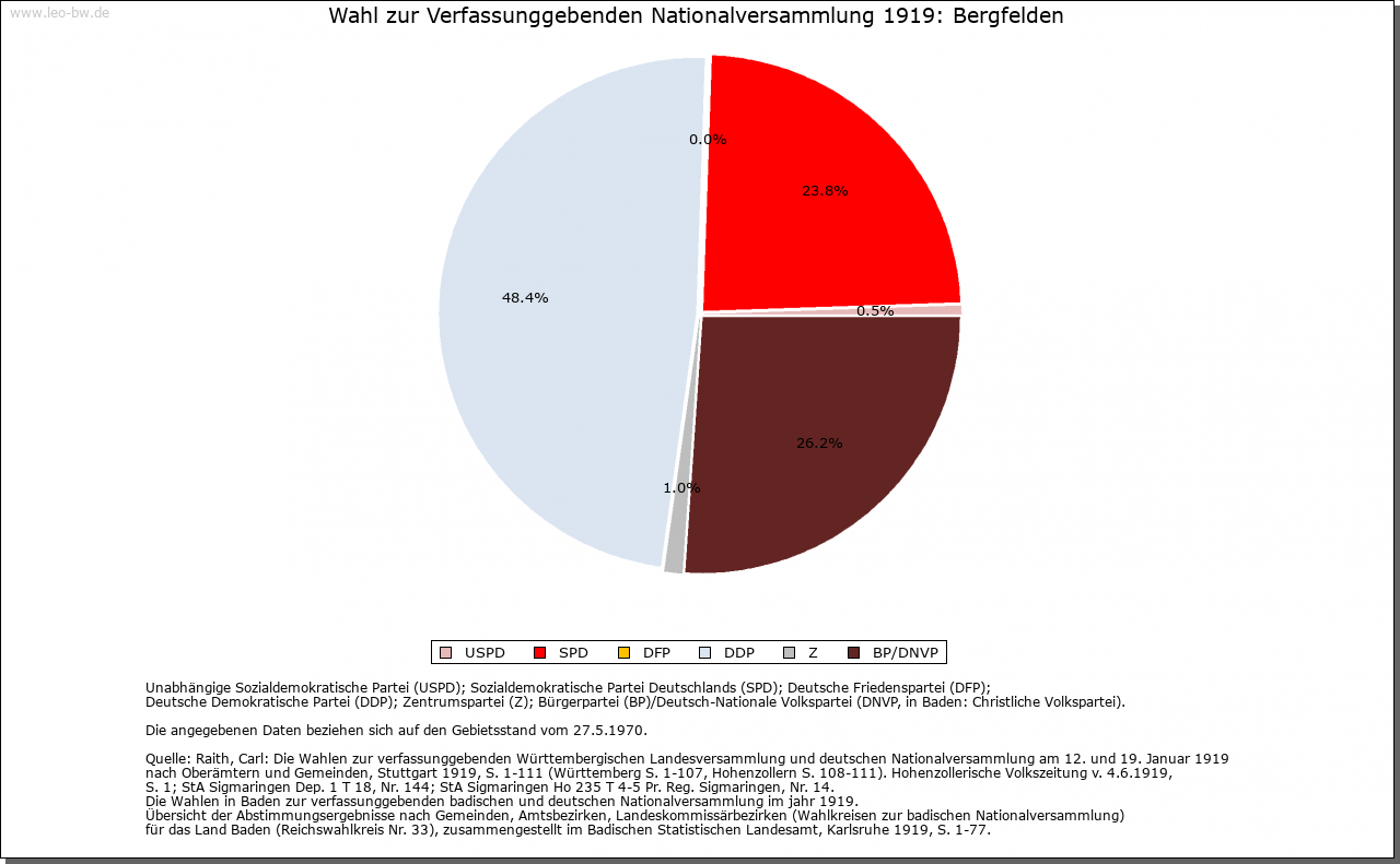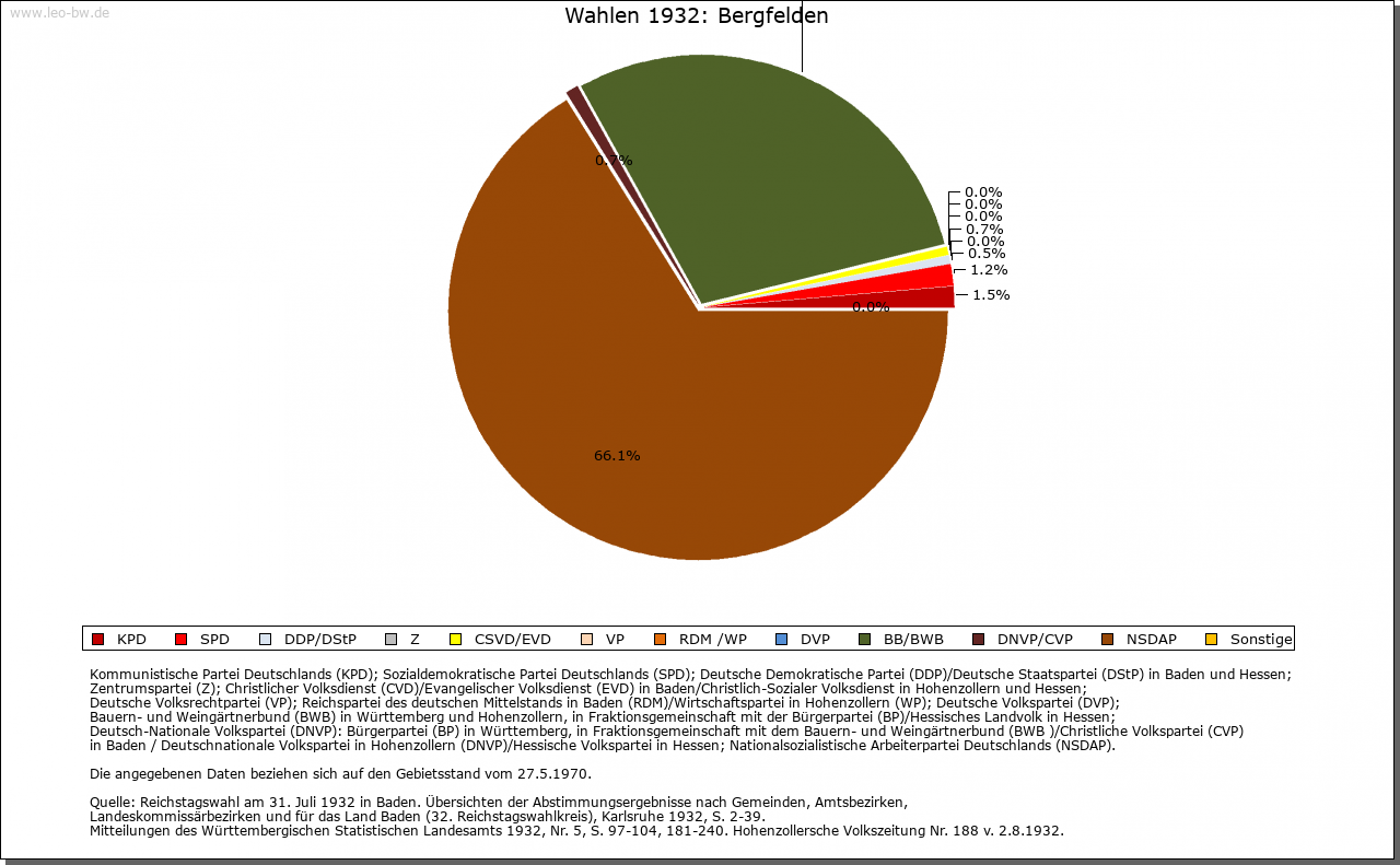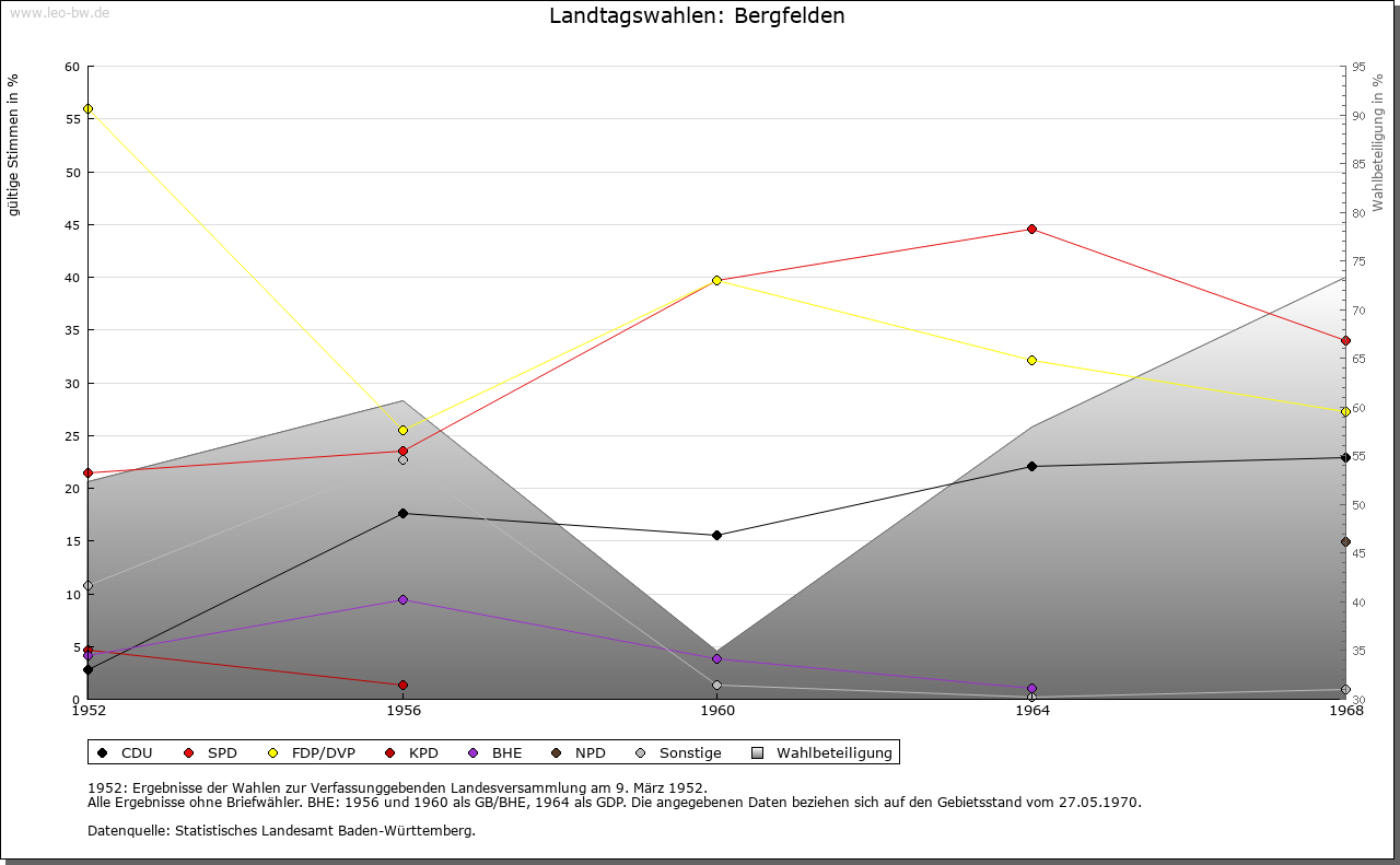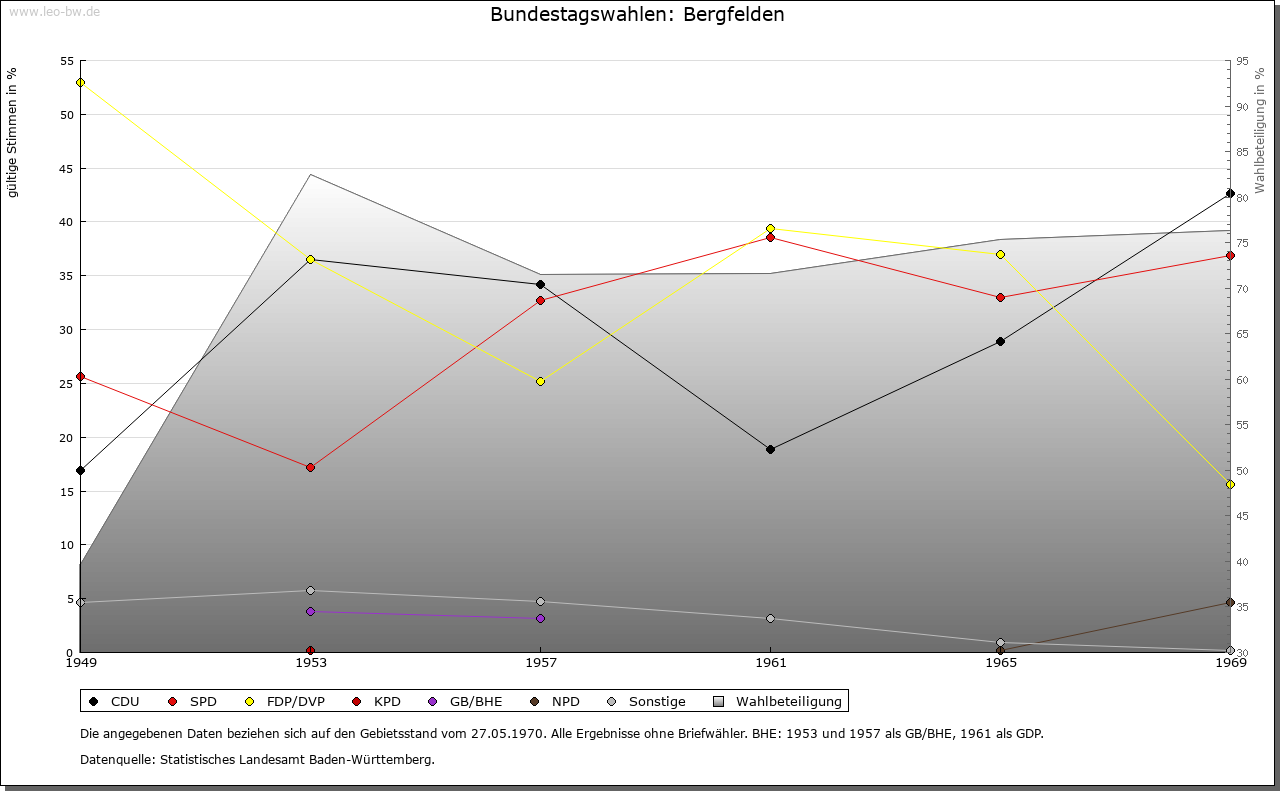| Geschichte: | Die ursprünglichen Inhaber des Orts sind nicht bekannt. Ein 1222 im Gefolge des Grafen Berthold von Sulz genannter Pleban »Burchard de Bercuelt« sowie die 1420 nachweisbare geroldseckische Verfügungsgewalt über den Zehnt und das Patronatsrecht verweisen auf sulzische Ursprünge. Die umfangreichere teckische Grundherrschaft (1304) und die spätere Zugehörigkeit zum württembergischen Amt Rosenfeld hingegen deuten auf eine teckische Herrschaft hin. Möglicherweise stand der Ort zuerst unter sulzischer und danach unter teckischer Herrschaft. Erste Hinweise auf eine württembergische Präsenz im Ort sind die Rolle Graf Ulrichs IV. von Württemberg als Garant bei einem Güterverkauf Burkarts von Bondorf an Heinrich von Ergenzingen 1345 und eine Lehensvergabe 1430 durch Graf Ludwig von Württemberg. Die landesherrlichen, hoch- und niedergerichtlichen Rechte erscheinen dann erst 1524 in ausschließlich württembergischer Verfügungsgewalt. Vom württembergischen (Ober-)Amt Rosenfeld kam der Ort 1808 an das Oberamt Sulz. Die Herzöge von Teck veräußerten 1304 mit zwei Höfen und vier Lehen einen größeren grundherrschaftlichen Komplex, der ihnen als Allod gehörte, an die Herren von Bondorf, welche 1345 ihrerseits Besitz an die Herren von Ergenzingen verkauften. Zumindest ein Teil des ehemals teckischen Eigen ging dann an die Herrschaft Württemberg, welche Anfang des 16. Jahrhunderts über acht Lehen, ein Gut, ein Haus sowie weiteren Besitz verfügte. Zur gleichen Zeit verfügte das Augustinerinnenkloster Oberndorf über einen Hof sowie zwei Lehen. Hingegen besaßen die Frühmesse von Dornhan und das Kloster Alpirsbach schon 1429/30 jeweils einen Hof. Mitte des 16. Jahrhunderts waren die Frühmesse und die Kaplanei von Bergfelden sowie die dortige Klause im Ort begütert. Die Herrschaft Württemberg vergab auch Eigenbesitz als Lehen an die Herren von Landenberg, welches 1653 endgültig an den Lehnsherrn zurückfiel. Der Zehnt kam wohl 1471/73 an Württemberg. Nachdem Gangolf von Geroldseck 1520 ihn in seine Gewalt gebracht hatte, gehörten 1524 sowohl der Große als auch der Kleine Zehnt wieder der Herrschaft Württemberg. Der Novalzehnt ist für 1708 in württembergischem Besitz nachweisbar. Gemeindliche Strukturen werden erstmals 1460 mit der Nennung von Richter, Heiligenpfleger und Gemeinde sichtbar. Für 1524 ist ein Rathaus nachweisbar. 1808 kam Bergfelden zum Oberamt Sulz, 1938 Landkreis Horb. |