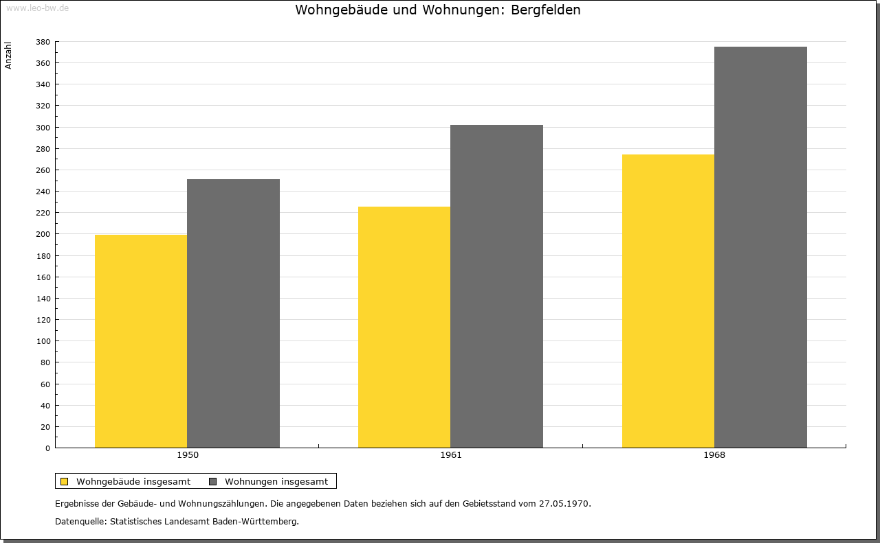 | Ortslage und Siedlung (bis 1970): | Trotz der verhältnismäßig späten Erwähnung 1222 gab es frühmittelalterliche Siedlungstätigkeit. Darauf deutet ein merowingerzeitliches Gräberfeld unmittelbar westlich des Rathausplatzes hin. Hingegen ist der frühmittelalterliche Hintergrund des Remigiuspatroziniums (1392) ungesichert. Der unmittelbar im Ort liegende »Brüelgarten« (1524) und die unmittelbar nordöstlich davon gelegene Flur »Bruel« (1491) verweisen auf ortsnah betriebenen herrschaftlichen Eigenbau. Der Name der nordwestlich gelegenen Flur Stadt (1524 »uff der Statt«) sowie ein dort gemachter Fund lassen auf eine frühmittelalterliche Hofanlage schließen. Der Flurname Altheimer Berg deutet auf eine abgegangene Siedlung gleichen Namens hin, die mit einer verschwundenen Kapelle (Flurname Käppele) in Beziehung gestanden haben könnte. Möglicherweise gehörten die Zelgen »uf Althainer Berg«, »ennend Rùtlins Tal« (1491) zu diesem Wohnplatz. In der westlichen Gemarkung verlief ein Teilstück der römerzeitlichen Straßenverbindung zwischen Vöhringen und Empfingen. In der nördlich nahe der Römerstraße gelegenen Flur Wiesenbrunnen finden sich auf engstem Raum jungsteinzeitliche, urnenfelderzeitliche, latènezeitliche, römische und mittelalterliche Siedlungsreste. Ebenfalls in der Nähe der Straße wurde in der westlichen Ortsgemarkung eine weitere jungsteinzeitliche Siedlung (Betzental) entdeckt. Die nordöstlich vom Ort gelegene Flur Brand schließlich bezeugt Brandrodungen auf der Ortsgemarkung. Im 30jährigen Krieg erlitt der Ort Verluste an seinem Gebäudebestand, der von 66 (1634) auf 41 (1655) zurückging. 1732 wurden 71 Häuser und Gebäude gezählt, davon 47 mit einer Scheune unter einem Dach und 24 ohne Scheune. Dazu gab es 15 separate Scheunen. Die Ackerwirtschaft wurde im Rahmen von Zelgverbänden betrieben (1524 »Zelg vorm Hardt«, »zu Misenbronnen«, »am Mülstyg«). Bergfelden ist ein Haufendorf in Talmuldenlage mit aufgelockerten Neubaugebieten im Nordosten und Südosten. |