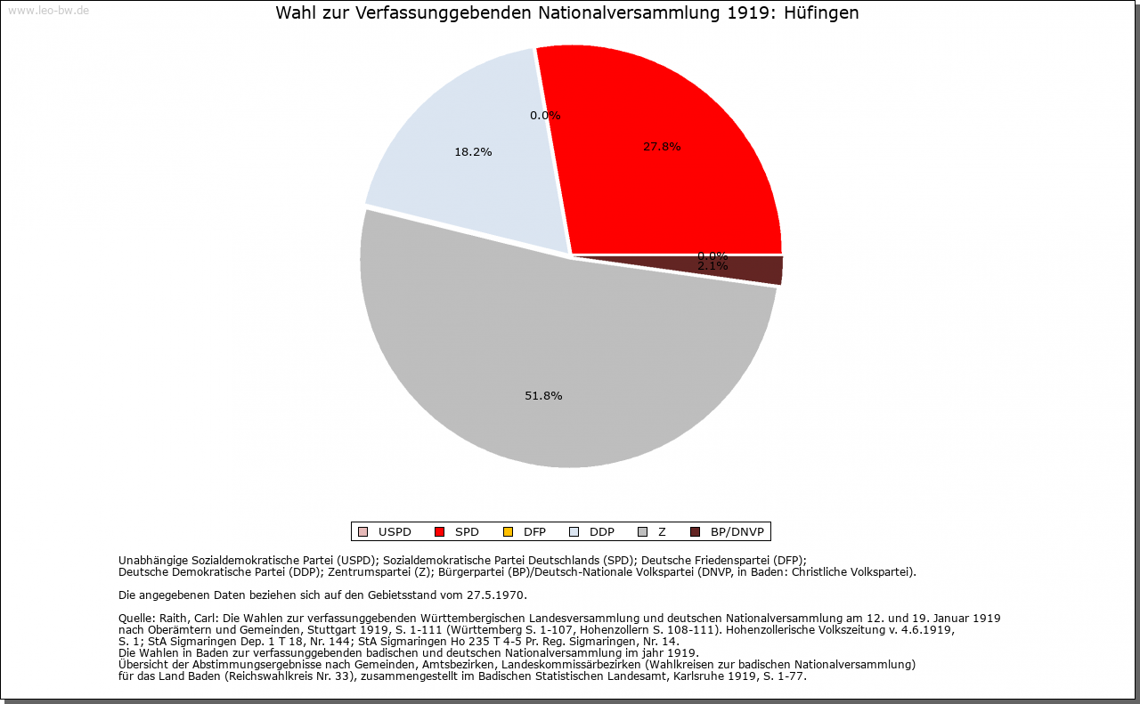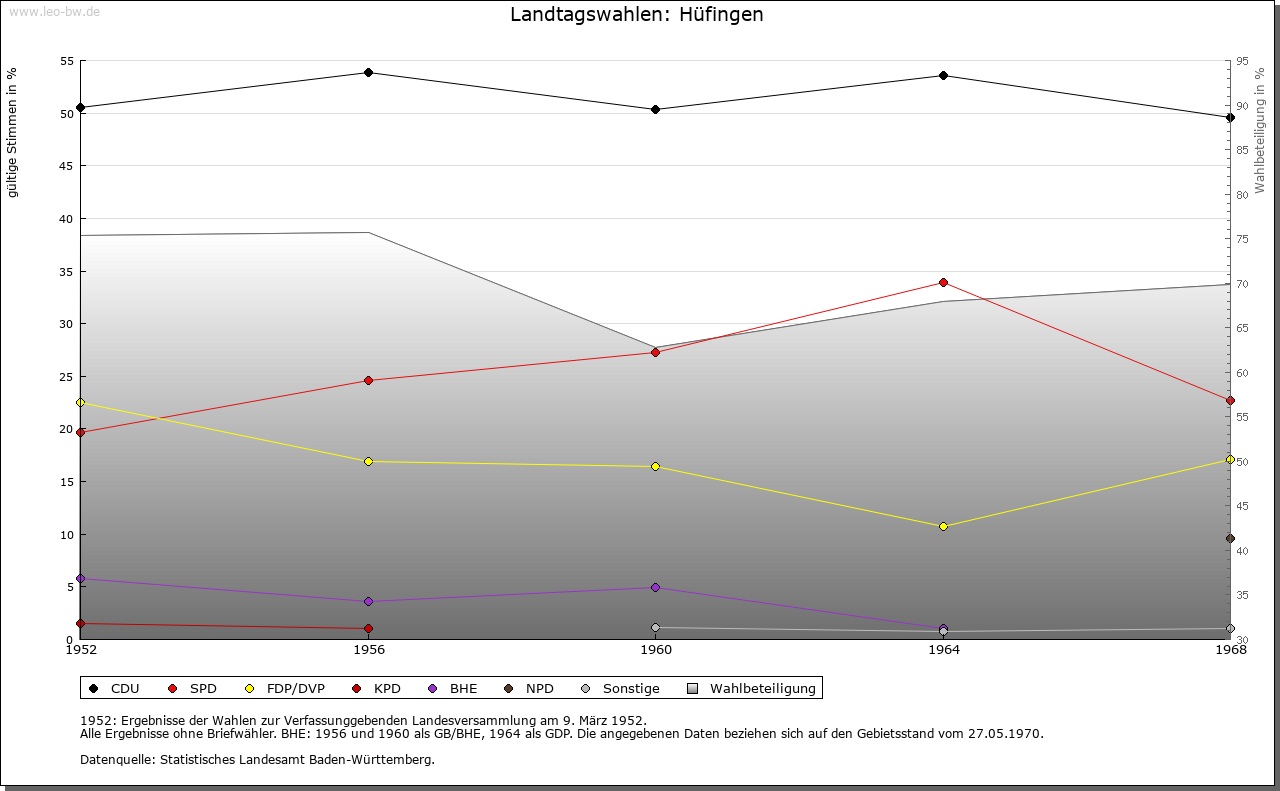 | Geschichte: | 1083 Hiuvinga, von Personenname. Reihengräberfunde beim Spitalfriedhof und im Ort. Ursprünglich an der großen Bräunlinger Mark beteiligt. 1083 und 1100 wohl Edelfreie von Hüfingen als Zeugen in Urkunden des Kloster Allerheiligen genannt. Ihr Zusammenhang mit den im 13. und 14. Jahrhundert auftretenden Adligen von Hüfingen, fürstenbergischen Lehensleuten, ist ungewiß. Vom 13. Jahrhundert an erscheinen die Herren von Blumberg als Besitzer des Ortes. 1274 bestätigte ihnen König Rudolf den Markt unterhalb der Burg. Die blumbergische Stadtgründung gegen Ende des 13. Jahrhunderts - 1320 sind erstmals Bürger erwähnt, 1356 die Stadtgemeinde - zusammen mit einer Erweiterung der schon bestehenden Burg (Hinterstadt) geschah vielleicht in Konkurrenz zum fürstenbergischen Bräunungen. Rottweiler Stadtrecht. Kleine quadratische Stadtanlage mit einem Tor, nach 1350 die Unterstadt ummauert. Ein Öffnungsvertrag der Stadt mit Österreich 1349 sicherte die Unterstützung durch die Habsburger. Im Anschluß an das 1353 erteilte Jahrmarktsprivileg erhielt Hüfingen die eigene Hochgerichtsbarkeit. Nach dem Aussterben des letzten Hüfinger Zweiges der von Blumberg gelangte Hüfingen über Guta von Blumberg in den Besitz der liechtensteinischen Familie von Schellenberg. Streitigkeiten mit Fürstenberg, das die hohe Gerichtsbarkeit beanspruchte, wurden 1418 in einem Vertrag beigelegt. Danach nahmen die Schellenberger den Blutbann als fürstenbergisches Lehen. Das hintere Schloß wohl die blumbergische Burg. Der viereckige Bergfried wurde Anfang des 18. Jahrhunderts mit den Resten der zerfallenen Burg beseitigt. Das obere Schloß, nach 1523 durch Schellenberg errichtet und 1723 umgebaut, ist heute fürstenbergisches Landesspital. 1620 wurden Hüfingen und die anderen schellenbergischen Orte durch Fürstenberg erworben. Fürstenbergisches Oberamt. Nach dem Anfall an Baden 1806 eigenes Oberamt bzw. Bezirksamt, 1849 wieder aufgehoben und zum Bezirksamt/Landkreis. Donaueschingen geschlagen. 1973 Schwarzwald-Baar-Kreis. |