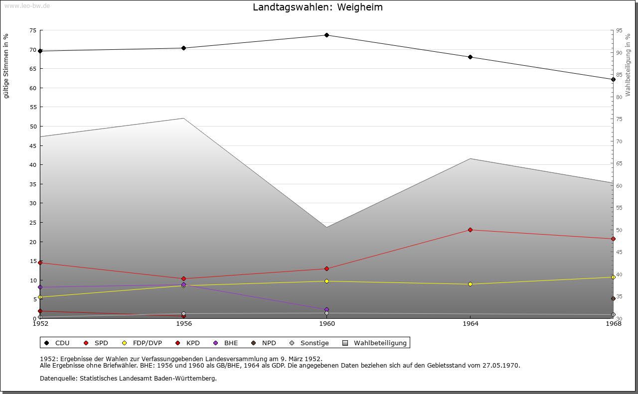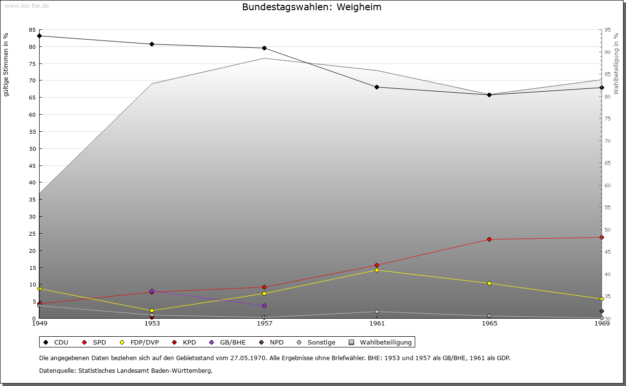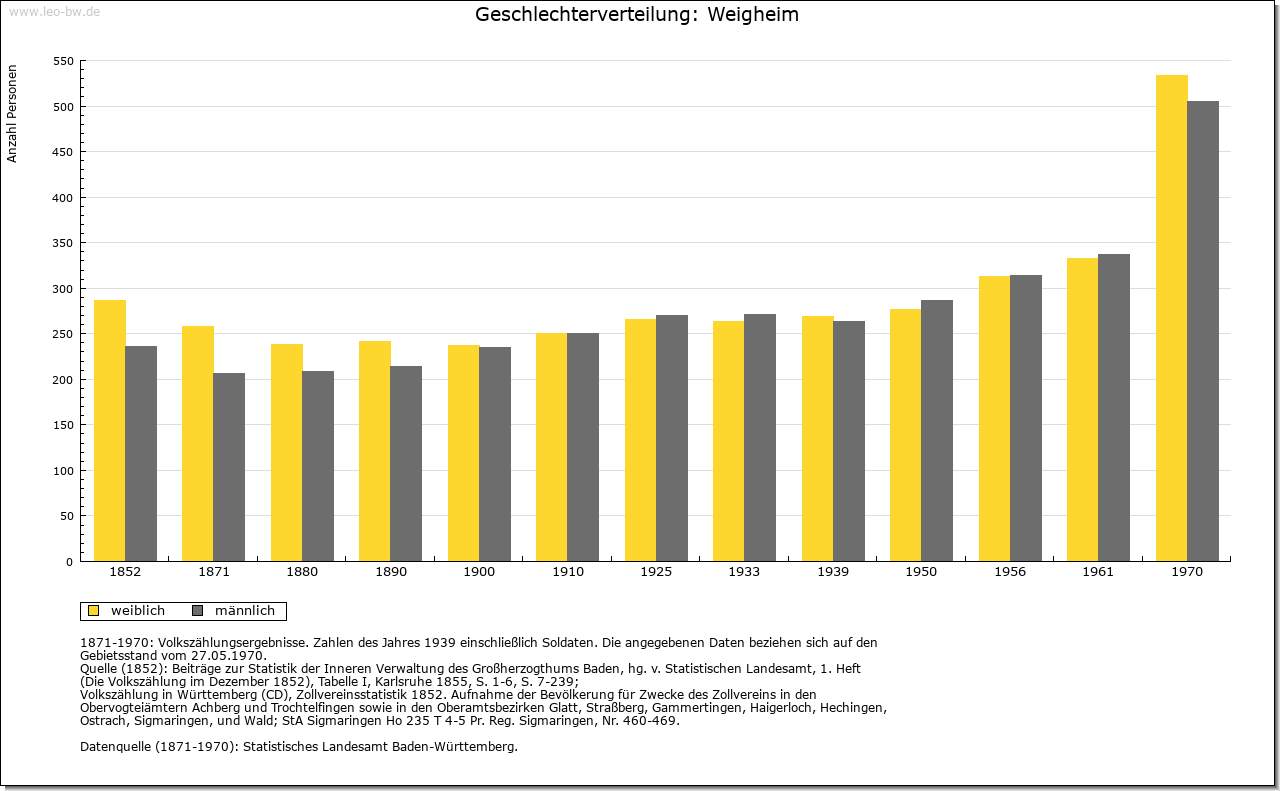| Geschichte: | 763 Wicohaim, 797 Wicahaim, wohl zu Personenname. Früher Ort. Adel von Weigheim (Ulrich und Rudolf) Ende des 11. Jahrhunderts erwähnt. Ob von ihm die seit dem 14. Jahrhundert im Villinger Stadtregiment auftretenden Herren von Weigheim abstammen, ist unsicher. Abgegangene Burgen an Stelle des Pfarrhauses von 1762 und nordwestlich des Dorfes auf Flur Schloßbühl. Das Kloster St. Gallen erhielt hier 763 (in ... Perahtoltes para) und 797 Besitz und war noch um 1200 begütert. Das Dorf wird als Reichslehen bezeichnet und kam wohl schon im 13. Jahrhundert an die Johanniterkommende Villingen. 1281 verkauften jedoch die Herren von Wartenberg ein umfangreiches Eigengut und 1315 erwarb die Kommende tauschweise größere Güter und Rechte von einem Villinger Bürger. Ein 1441 getroffener Vergleich wies der Kommende die Niedergerichtsbarkeit, den Grafen von Fürstenberg bzw. der Landgrafschaft in der Baar die Hochgerichtsbarkeit zu. 1805 an Württemberg, Oberamt, Tuttlingen, 1938 Landkreis Rottweil. |