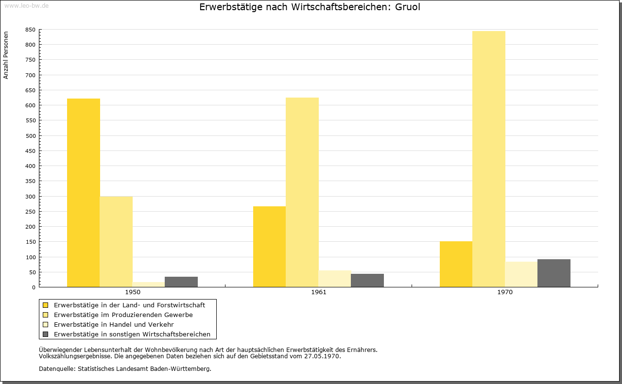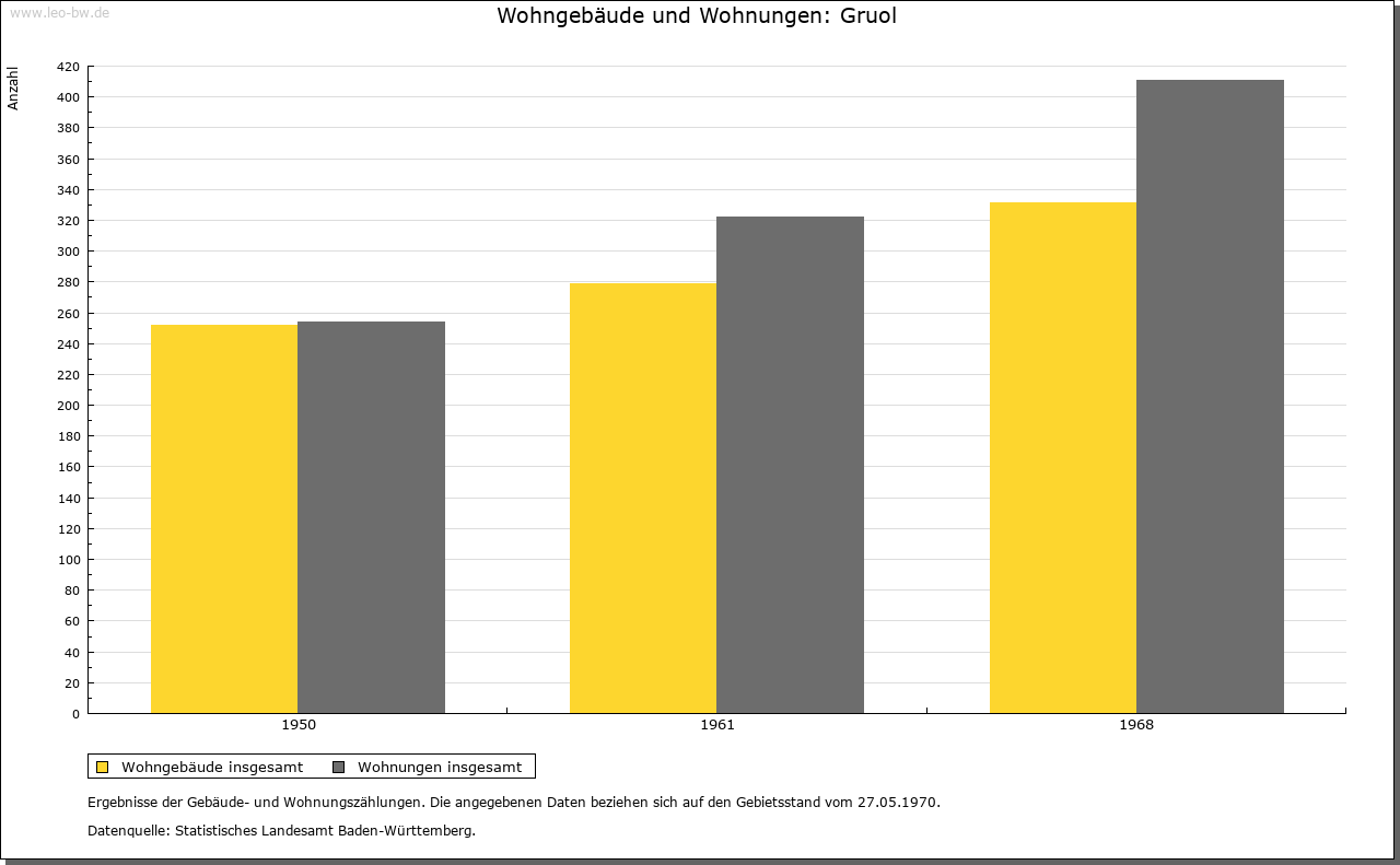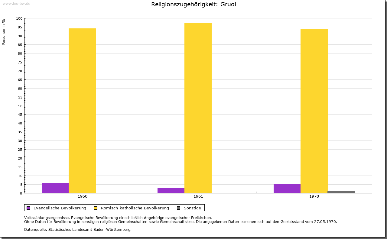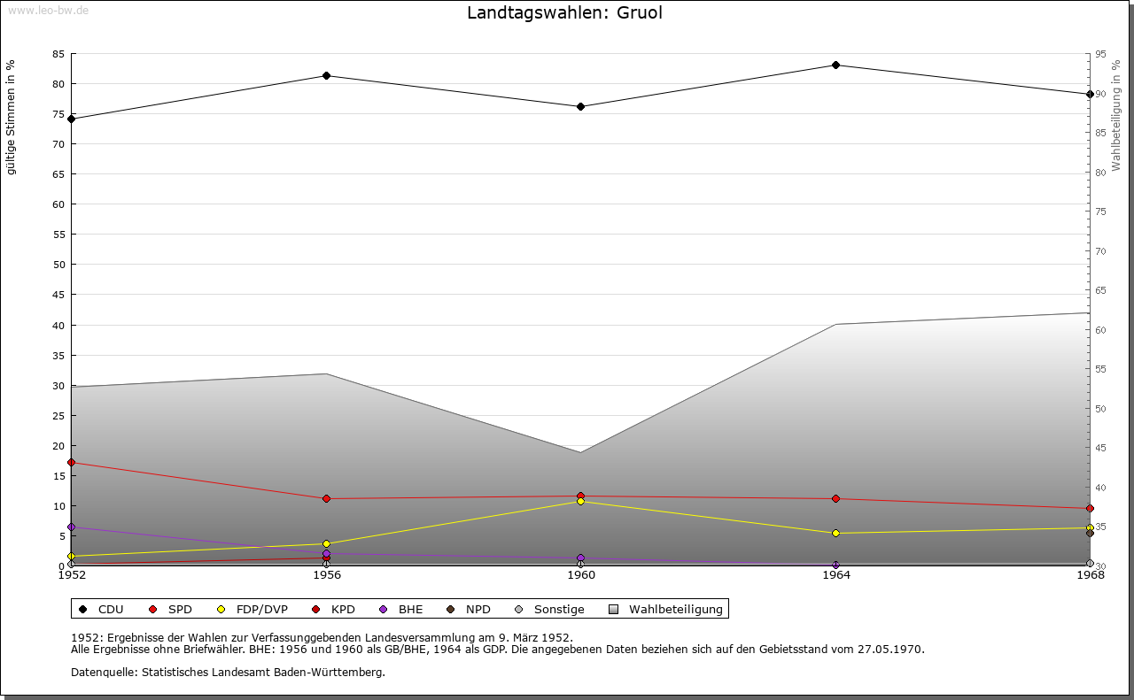 | Geschichte: | 1094 de Gröeren (ungedeutet). Das Dorf bestand vermutlich ursprünglich aus mehreren Hofgruppen. Darauf deuten die Ortsteile Kroppenhofen und Niederhofen sowie das 1459 erwähnte (abgegangene oder im Dorf aufgegangene) Aufhofen hin. Herren von Gruol, vermutlich Dienstleute der Grafen von Haigerloch-Wieseneck, treten 1094 und 1095 auf. Hierher gehören wohl auch die im 12. Jahrhundert bei den Klöstern Zwiefalten und Hirsau genannten Herren von Gruol. Im 13. und 14. Jahrhundert waren in Gruol die Füller ansässig. Die Wasserburg, deren Reste im heutigen Ortsteil Schlößle zu suchen sind, wird erstmals um 1380 als hohenbergisches Lehen der Herren von Stetten erwähnt. Später waren die von Wehingen (um 1406; 1415 von Stetten), von Stoffeln, von Justingen (1436), von Gültlingen (1512, 1539) und ab 1606 die Spreter von Kreidenstein Lehensbesitzer des Schlösschens. Oberhoheit wohl von den Grafen von Haigerloch-Wieseneck über die Grafen von Hohenberg 1381 an Österreich. Fortan häufige Verpfändungen und Besitzwechsel, schließlich 1497 an die Grafen von Zollern. Fortan Teil der Herrschaft Haigerloch. Hohenzollerisch, 1850 preußisch. Oberamt Haigerloch, 1925 Landkreis Hechingen. Im Mittelalter war der »Münchhof« des Klosters Alpirsbach Mittelpunkt des Klosterbesitzes in der Gegend; das mit ihm verbundene Dinggericht ging im 16. Jahrhundert ab. |