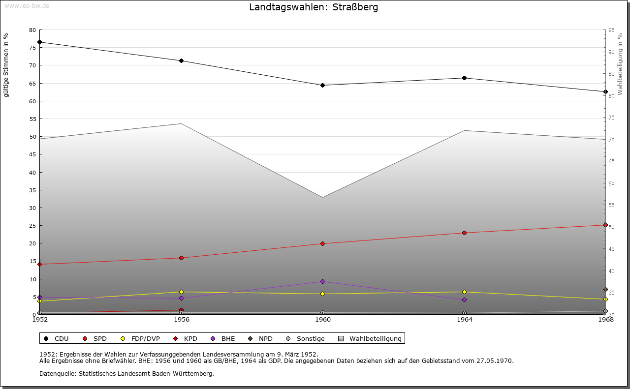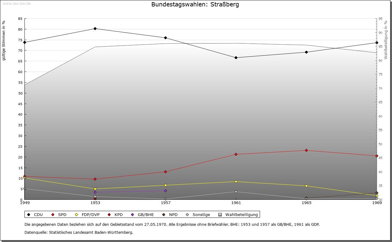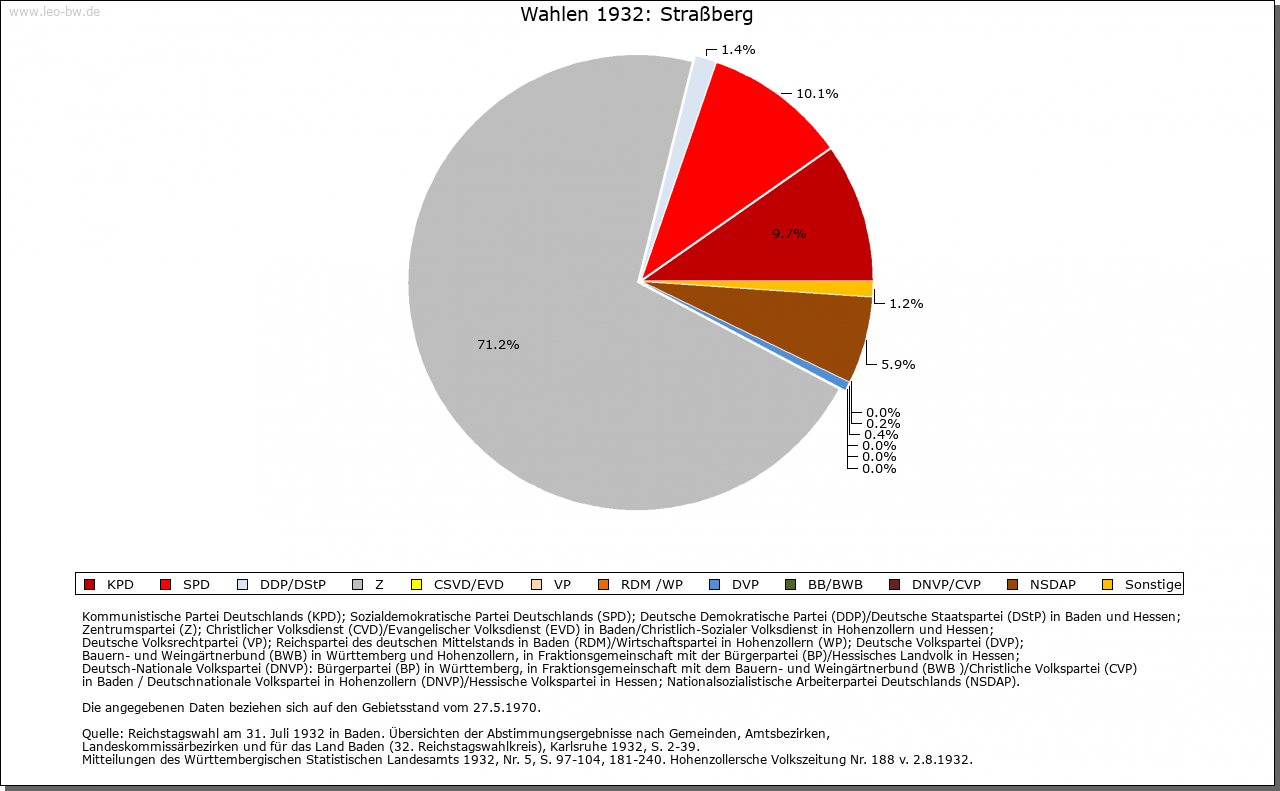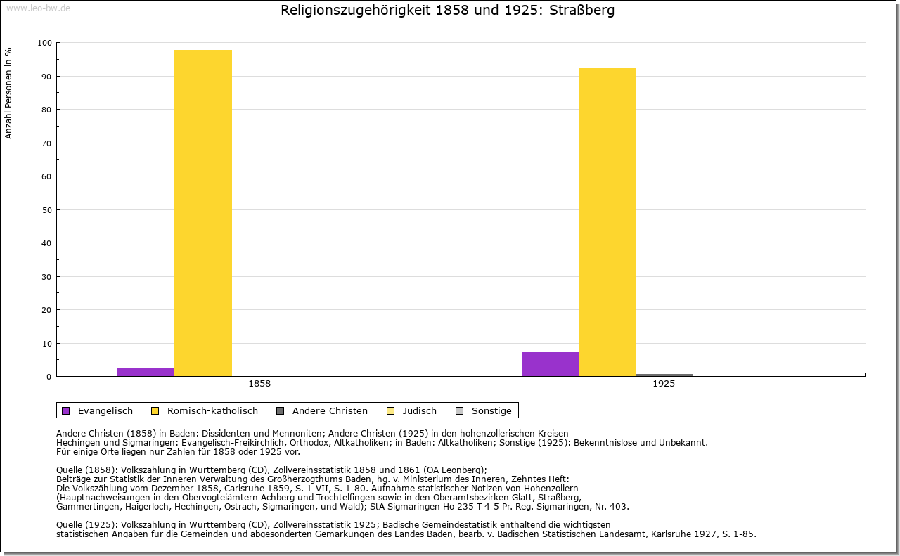 | Geschichte: | 844 (?) Burc (von römischen Bauresten oder einem fränkischen Königshof?), 1275 Burk. 1253 Strassberg (hochmittelalterlicher Burgname?). 1287 »Burg by Straußberg«. Die Siedlung auf der rechten Talseite entstand um die alte Verenakirche, die andere vielleicht als Burgweiler. Der Name »Burg« verschwand spätestens nach 1600. Alemannischer Grabfund im Norden (Flur »hinter dem Galgen«). Adel von Straßberg kommt bis ins 15. Jahrhundert vor, doch sind Beziehungen zu unserem Ort nicht nachweisbar. Nach einer Notiz des Stifts Buchau vom 15. Jahrhundert sollen diese Herren früher Schenken der Äbtissin gewesen sein. Das Schloss ist wohl als Höhenburg frühestens im 11. Jahrhundert erbaut. 1597 erweitert, heutige Form 1782/83 durch Abtragung einzelner Stockwerke entstanden. Zeitweilig Sommerresidenz des Rottenburger Bischofs von Keppler. Kapelle vor dem Schloss Mitte 17. Jahrhunderts (wieder?) erbaut, um 1744 bis auf die Ruine abgebrochen (oder erst um 1840?). Abgegangene Ödenburg (so seit 16. Jahrhundert, 1333 »Schalksburg«) bis auf Mauerreste, über der Wüstung Öhringen. Die Sankt-Verena-Kirche im Gau Scherra, wohl 844 dem Kloster Sankt Gallen geschenkt (1473: »Sankt Frenen husherrin der pfarrkirchen zu Burg by Straßberg«), war 1005 unter dem vom Kaiser dem Kloster Stein am Rhein übergebenen Besitz, wohl bereits samt dem 1287 bezeugten Maierhof. Straßberg, die Burg und der darunterliegende Ort, waren 1345 buchauisches Lehen der Grafen von Hohenberg; Zeit und Art des Erwerbs durch Buchau sind unbekannt. 1326 tritt ein Schultheiß von Straßberg auf, und 1345 sowie 1374 wird der Ort »Stadt« genannt, doch war der Stadtcharakter bereits im 16. Jahrhundert wieder verlorengegangen. Das buchauische Lehen hatten nach 1345 die Herren von Reischach inne, unter denen erstmals die Dörfer Frohnstetten und Kaiseringen als Teile der Herrschaft erscheinen. Weitere Lehensinhaber waren Hans von Stein genannt Schnellinger (1420), die Schwelher von Wielandstein (1429), die von Homburg (1508) und die von Westerstetten (1532), die seit der ersten kaiserlichen Belehnung 1511 auch die Hoch- und Blutgerichtsbarkeit ausübten. Nach dem Aussterben der Westerstetten 1625 verwaltete Buchau die Herrschaft selbst als eigenes Amt. Bau des Amtshauses (G. G. Bagnato) um 1745, jetzt Rathaus. Mit dem Stift 1803 an die Fürsten von Thum und Taxis, 1806 unter die Staatshoheit von Hohenzollern-Sigmaringen. Nach dem Kauf der Standesherrschaft durch den Staat 1836 wurde anstelle des Patrimonialamts ein Oberamt eingerichtet. 1854 Oberamt Gammertingen, 1925 Landkreis Sigmaringen. |