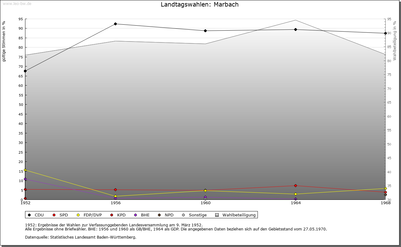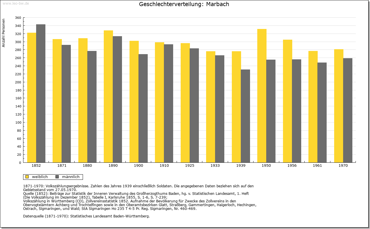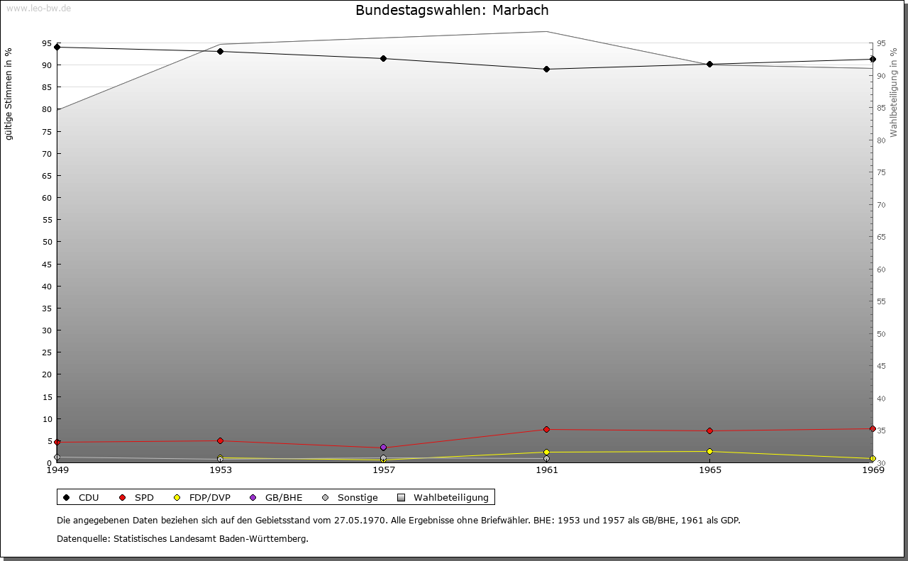 | Geschichte: | 1228 Marpach, 1269 Marcbach (wohl = Grenzbach; von der Schwarzach?). Ortsherrschaft und Oberhoheit waren 1464 zwischen den Truchsessen von Waldburg (1476: 2/3) und den Herren von Beuren (1/3) geteilt, die je einen eigenen Amtmann im Dorf hatten. 1476 mussten letztere die Hochgerichtsbarkeit der Grafen von Sonnenberg (Truchsessen von Waldburg) anerkennen. 1485 verkauften die Herren von Beuren den Burgstall (südwestlich am Ort) und ihren Teil der Ortsherrschaft an die Grafen von Sonnenberg, die das Dorf fortan als Teil der Grafschaft Friedberg besaßen. 1786 mit Friedberg-Scheer an die Fürsten von Thurn und Taxis verkauft, Oberamt Dürmentingen. 1806 unter württembergische Staatshoheit. 1807 fürstliches Obervogteiamt (1823 Amt) Dürmentingen. Nach vorübergehender Aufhebung 1809 bis 1823 wurden die Patrimonialämter endgültig 1849 aufgelöst. Oberamt Riedlingen, 1938 Landkreis Saulgau. |