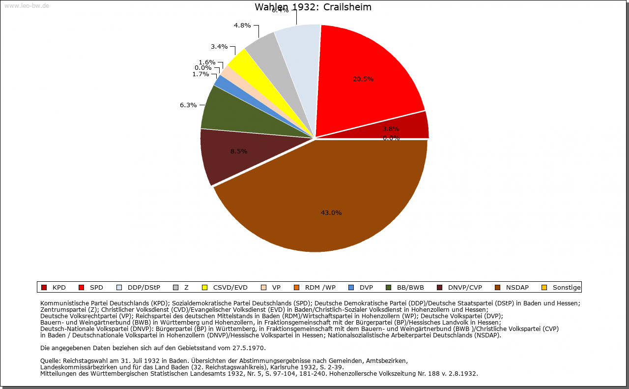 | Geschichte: | 996 beansprucht in einer gefälschten Urkunde Kloster Amorbach den Zehnt in der »villa« Crailsheim, nachdem 993 der Würzburger Bischof Amorbach mit anderen Königsklöstern unter seine Herrschaft gebracht hatte. Da aber Würzburg in der Folge mit der Johanneskirche eine zentrale Pfarrkirche schuf, besaß es nun selbst eine Hälfte des Crailsheimer Zehnts, die es 1345 an Konrad von Finsterloh, später an den Stadtherrn vergab. Ein Viertel hatten die Herren von Crailsheim als helfensteinisches Lehen, das andere statt Amorbach Kloster Ellwangen, das bei der ersten einwandfreien Nennung von »Crowelesheim« um 1140 über weitere Besitzungen am Ort verfügte. 1403 werden als ellwangischer Besitz eine Hube, fünf Lehen, drei Häuser, ein Viehhaus und weitere Besitzungen genannt. 1528 heißt es ausdrücklich, dass die sieben Huben (entspricht 14 Lehen) Ellwangens die besten von Crailsheim seien. Um 1000 tritt auch das Augsburger Moritzstift in Crailsheim in Erscheinung. Dieser Besitz wird zwar erst 1178 erwähnt, kann aber durchaus schon Ausstattungsgut des Moritzstiftes gewesen sein. 1230/50 kamen noch die Patronatsrechte an der Crailsheimer Johanneskirche dazu, bevor es seine hiesigen Besitzungen 1289 an die Grafen von Oettingen verkaufte. Diese arrondierten damit ihren bereits aus dem Erbe der Herren von Lohr oder aus der Ellwanger Vogtei gewonnenen Besitz und richteten dafür ein Amt Crailsheim unter Vogt Arnold ein. In der Kaufurkunde wird Crailsheim erstmals »oppidum« genannt, war also schon befestigt und mit Marktrecht ausgestattet. Aber schon 1310 wurde Konrad Schrimpf Graf von Oettingen geächtet und verlor seine Besitzungen an das Reich. Zwar versuchte er, diesen Verlust dadurch zu vermeiden, dass er Crailsheim den Wittelsbachern auftrug; diese erstatteten dies aber umgehend zurück, um nicht selbst in die Reichsacht zu verfallen. Später allerdings behandelten sie Crailsheim als Eigentum, nachdem durch die Königsherrschaft Ludwigs eine klare Unterscheidung zwischen Reichs- und Hausgut nicht mehr gegeben war. Crailsheim selbst hatte jedenfalls ab 1310 das Reich als unmittelbaren Herrn und wurde zum Beispiel 1314 von König Fried¬rich an Kraft von Hohenlohe verliehen, von den konkurrierenden Königen Ludwig und Friedrich dann zur selben Zeit an unterschiedliche Herren aus der Familie von Hohenlohe. Erst der Sieg Ludwigs klärte diese Situation, indem er 1323 die Stadt und Burg Lohr als Pfand an Kraft von Hohenlohe gab. In der Folge erhöhte er diese Pfandsumme immer weiter und gab weitere Rechte wie Wildbann, Geleit und Zoll, bis er 1338 den Ort mit Umgebung an Hohenlohe freite und Crailsheim das Stadtrecht nach Haller Vorbild erteilte. Wahrscheinlich baute Kraft nun eine Wasserburg an Stelle des späteren Schlosses. Daneben muss es aber auch für die Herren von Crailsheim einen älteren Ansitz in Crailsheim gegeben haben; andere Adlige besaßen Freihäuser. Die Bedeutung der Stadt für den Adel wird besonders deutlich, als 1381 ein Ritterbund Sankt Georgen und Sankt Willebald sich verabredete, bei Bedarf in Crailsheim zusammenzukommen. Wie benachbarte Reichsstädte wurde Crailsheim ab 1370 gelegentlich zum Schutz des Landfriedens aufgerufen. 1382 wurde bei einem Kreditvertrag ausdrücklich Zahlung in Crailsheimer Währung verabredet. Dass der Kreditgeber damals ein Crailsheimer Jude war, neben dem 1378 und 1387 zwei weitere Juden erscheinen, spricht auch für Crailsheims Rang. Die Stadt diente häufig als Einlager, aber auch als Aufenthaltsort der Hohenlohe selbst. Die Gattin des ›Stadtgründers‹, Adelheid von Württemberg, soll der Sage nach auf der Schönebürg gewohnt haben und wird noch heute als Gönnerin der Stadt am Stadtfeiertag geehrt. Anlass dazu bietet ihre Seelstiftung in die Johanneskirche, die in der Austeilung der so genannten Horaffen, eines typischen Seelgebäcks, an die Schuljugend nach wie vor realisiert wird. Daneben soll sie den Crailsheimern Teile der Allmende gestiftet haben. Ihr Sohn stiftete 1352 die Frühmesse und gewährte 1363 den Priestern des Crailsheimer Dekanats freie Verfügung über ihr Eigentum. Allerdings gerieten die Hohenlohe durch den Bevölkerungsrückgang durch die Pest um 1350 in eine Schuldenkrise, in deren Verlauf Crailsheim im Winter 1379/80 von Hall, Dinkelsbühl und Rothenburg erfolglos belagert wurde, was noch heute in Crailsheim mit allerlei sagenhafter Ausschmückung am Stadtfeiertag gefeiert wird. Trotzdem wurde 1387 Crailsheim mit Langenburg und Ilshofen an die Städte Hall, Heilbronn, Wimpfen und Weinsberg verpfändet, 1388 schließlich an Nürnberger Gläubiger abgetreten. Im selben Jahr trat aber der Landgraf Johann von Leuchtenberg in diese Schuld ein und löste nach und nach die entsprechenden Pfänder wieder aus. Crailsheim, für das Leuchtenberg 1394 sogar die bayerische Lehnshoheit hatte ablösen können, wurde so als Zentrale eines neuen Territoriums fernab von den leuchtenbergschen Stammlanden ausgebaut: Vielleicht begann er mit der Stadterweiterung, jedenfalls wurde 1393 die Liebfrauenkapelle mit drei Altären und einem vierzigtägigen Ablass geweiht und 1398 damit begonnen, die Johanneskirche auf doppelte Größe zu erweitern. 1399 verkaufte er aber seinen gesamten hiesigen Besitz an die beiden Burggrafen von Nürnberg, die zunächst vor allem die Schulden übernahmen. So musste das 1400 gestiftete Crailsheimer Spital ohne die Unterstützung des Stadtherrn gebaut werden, zumal die Stadt selbst mit dem Bau der erweiterten Stadtmauer bis 1452/54 beschäftigt war. Lediglich die pfälzische Lehnshoheit konnte Burggraf Friedrich 1405 auslösen. Erst 1435 war die Situation des inzwischen zum Markgrafen von Brandenburg avancierten Stadtherrn soweit gefestigt, dass er eine umfassende Neuordnung durchführen konnte, die sich einerseits in einer Bestandsaufnahme seiner Güter, andererseits im Erlass einer Stadt- und zugleich Gerichtsordnung 1434 für sein gesamtes Herrschaftsgebiet bemerkbar machte. Der R