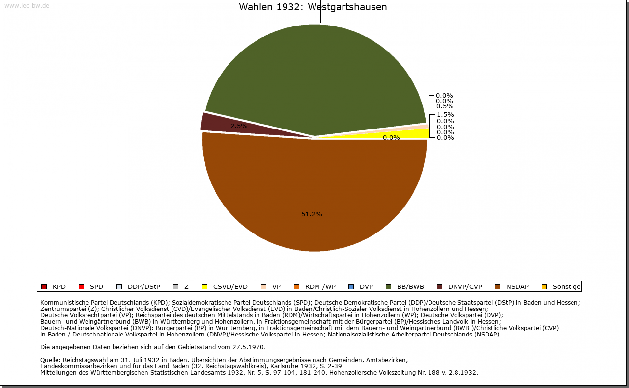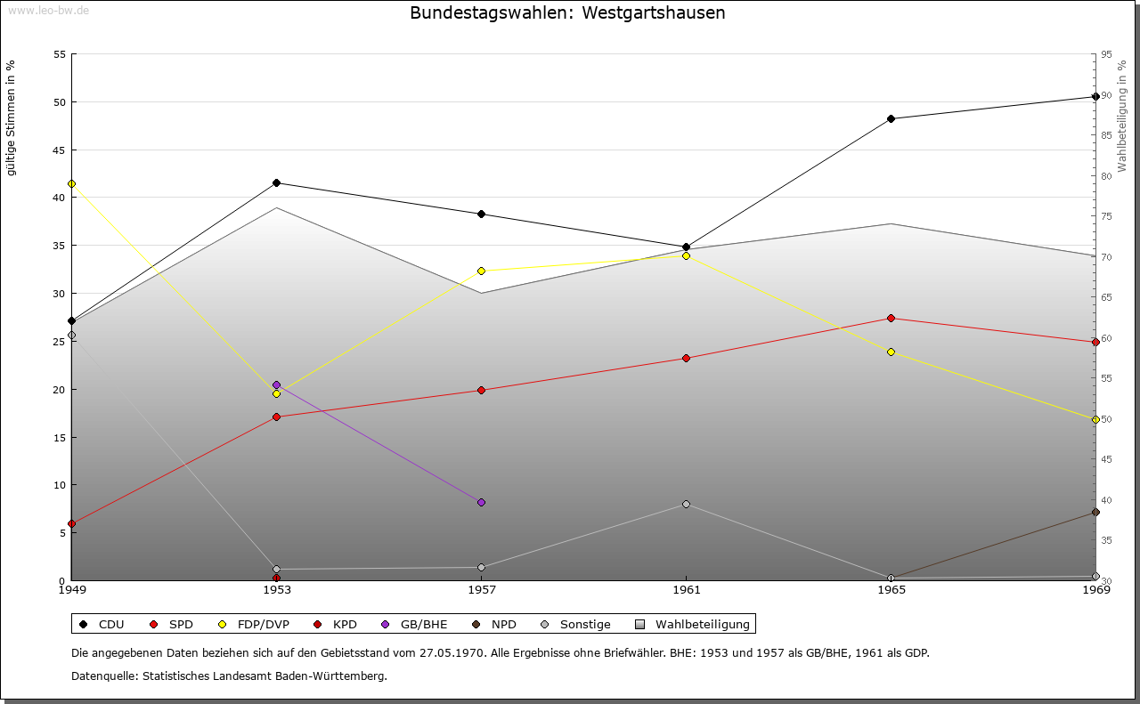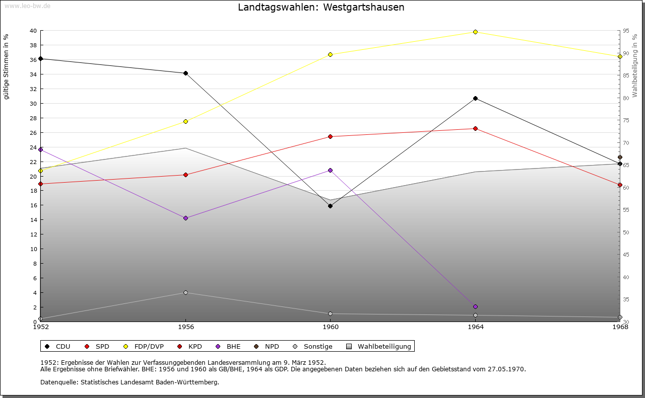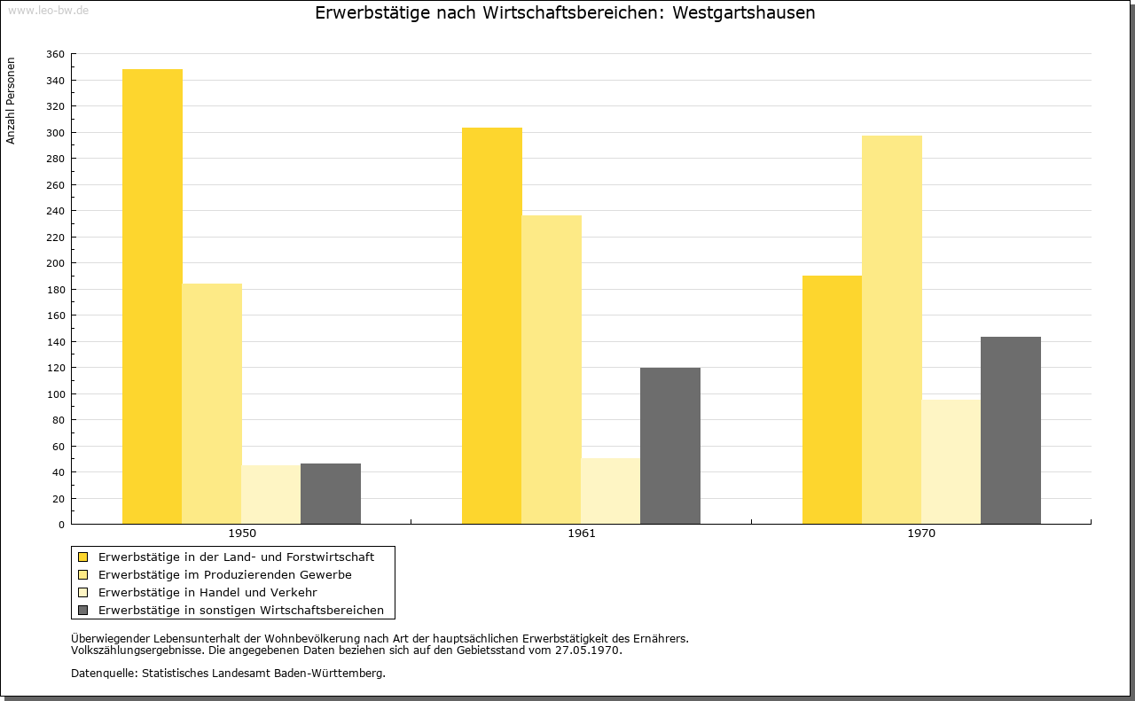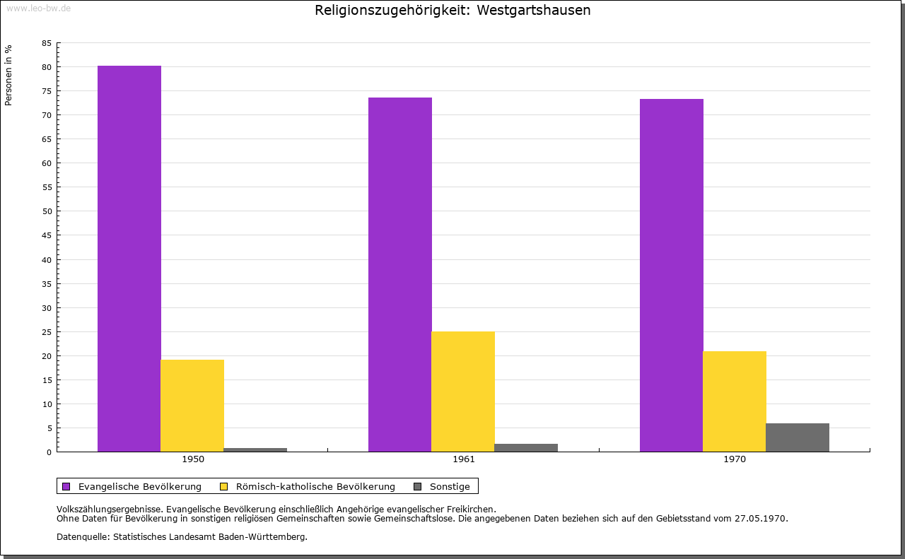 | Geschichte: | In einem päpstlichen Ablassbrief, beantragt von Heinrich von Goldbach, wurde der Ort 1255 erstmals genannt. Die Goldbach waren mit den benachbarten Lickartshausen verwandt und 1345 mit ihnen zusammen als hohenlohische Lehnsleute eben in Westgartshausen begütert und auch mit dem aus dem Kirchenpatronat resultierenden Zoll ausgestattet. Dieses Patronat rührte von Würzburg her, das 1303 Konrad von Flügelau und 1313 nach dessen Tod Kraft von Hohenlohe eben mit diesem, dem Zoll und dem Gericht (wohl Kirchweihschutz) belehnte. Seitdem wurde Westgartshausen zusammen mit Crailsheim ›regiert‹ und nahm an dem entsprechenden Wechsel der Landesherren teil. Aber erst 1532 wurden die innerörtlichen Besitzverhältnisse klar: Die Markgrafschaft hatte das Hochgericht, den Kirchweihschutz und einen Weiher zur Aufzucht von Fischen und für zwölf Untertanen auch das Niedergericht, nämlich für vier des Kastenamtes Crailsheim, zwei des Spitals, zwei der Johannespflege, einen der Pfarrei und drei des Gotteshauses Westgartshausen. Dazu kamen mit eigener Vogtei zwei Untertanen des Wolf von Heßberg, sechs des Sebastian Geyer zu Goldbach und einer des Konrad von Ellrichshausen in Jagstheim. Der Zehnt ging zur Hälfte an die Pfarrei Westgartshausen und je zu einem Viertel ans Kastenamt Crailsheim und an die Geyer zu Goldbach. Allerdings hatte hier der Schreiber auch die Besitzungen in Lickartshausen eingerechnet, so dass die dortigen fünf Güter herausgerechnet werden müssen. Es waren dies zwei ansbachische, zwei heßbergische und das Ellrichshäuser Gut. Die sechs Goldbacher Güter gehen wohl zurück auf die Goldbach/Lickartshausen und kamen 1708 an Preußen, 1729 durch Heirat an Ansbach. Für vier Jahre kam der Ort 1806 an Bayern, 1810 dann an Württemberg. Eine Gemeindeordnung wird 1656, 1698 ein Schultheiß unter den markgräflichen Einwohnern genannt. Wahlen zum Amt eines Felduntergängers sind ab 1717 belegt. Mit Lickartshausen bestellte man offenbar gemeinsam den Hirten. Auch die Flachsbrechhütte dürfte gemeinsamer Besitz gewesen sein. Die Zollstätte an der Straße Crailsheim-Dinkelsbühl wird seit Anfang des 14. Jahrhunderts erwähnt. Westgartshausen gehörte zum Oberamt (seit 1938 Landkreis) Crailsheim. Nach verschiedenen Gemarkungsänderungen verschmolzen Westgarthausen und Lickartshausen 1838 miteinander. |