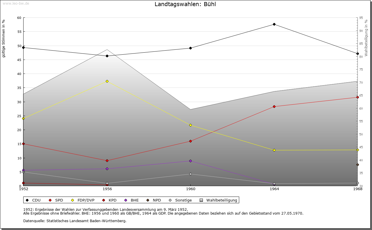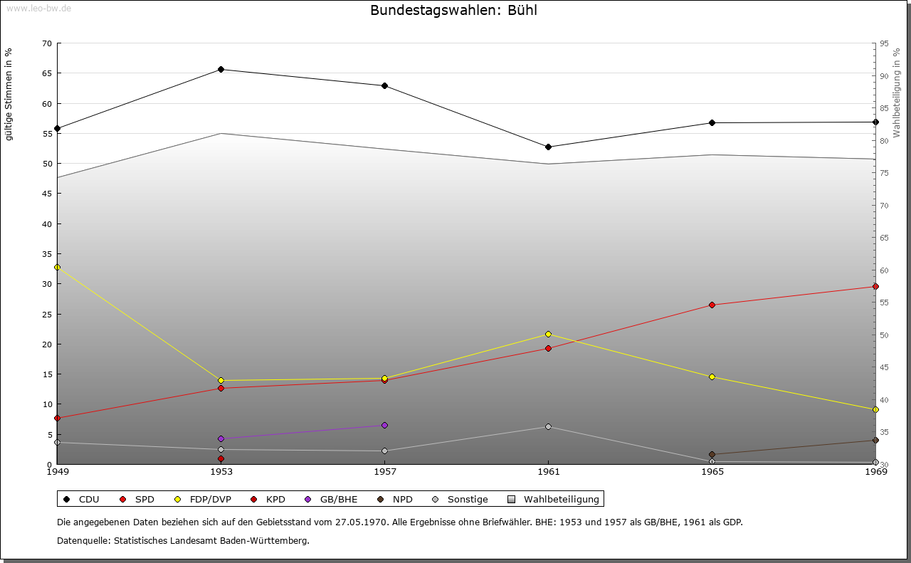 | Geschichte: | Ca. 1149 Buhel, 1283 (Kopialüberlieferung 18. Jahrhundert) Bühel, 1302 Buhele, Anhöhe, 1373 Oberbühl zur Unterscheidung von Niederbühl bei Rastatt, oft auch Bühl unter Windeck. Vermutlich frühe Ausbausiedlung innerhalb der Ottersweierer Mark. Erst deren Aufteilung und letztlich die des Windecker Waldes schuf die vielen abgesonderten Parzellen der Gemarkung. Der Ort, vermutlich mit alter Schwarzacher Grundherrschaft, gehörte zur von den Ebersteinern zu Lehen gehenden Burg Windeck. In Bühl saß wohl ein von ca. 1149 bis Ende 13. Jahrhundert nachweisbares Ministerialengeschlecht. 1404 fiel die Lehnshoheit über den Ort, zuvor bereits badisch-ebersteinisches Kondominat, ganz an die Markgrafen. Spätestens seit 1427/39 waren diese auch an der Ortsherrschaft, zunächst mit einem Viertel beteiligt, beim Aussterben der Altwindecker Linie 1459 erweiterte sich dieser Anteil auf die Hälfte, dann auf sieben Zwölftel. Der südlich der Bühlott gelegene Teil von Bühl, Oberbrück genannt, scheint von den Windeckern um 1400 dem Reich zu Lehen aufgetragen worden zu sein, kam 1487 zu Teilen an die Markgrafen; Erben der Linie Neuwindeck wurden 1592 die von Fleckenstein und die von Hüffel. Ihr Besitz fiel 1720 an Baden, das Reichslehen und damit die Anteile an der Ortsherrschaft aber wurden an von Senftenau, 1601 an von Hornstein, 1614 an von Sötern ausgegeben. 1776 veräußerte die Familie von Walderdorff das Reichslehen an Markgraf Karl Friedrich. Damit war ganz Bühl badisch, doch blieben Steuer und Waffenrecht über diesen Teil des Fleckens der Reichsritterschaft in der Ortenau. Das Amt, bis 1688 Kondominat, wurde 1813 zum Bezirksamt erweitert und 1939 Landkreis. 1403 erhielten die Windecker einen Wochenmarkt, 1442 wurde ein Jahrmarkt privilegiert. Als Markt und Amtsflecken hat Bühl bald einige Bedeutung entwickelt. Ab 1488 ist ein Bürgerhaus, ab 1605 ein Rathaus bekannt, das 1880 an der Stelle der alten Pfarrkirche unter Beibehaltung des Turmes neu gebaut wurde. Bühl war im 15. Jahrhundert durch Graben und Zaun umwehrt und hatte im Norden und Süden der Hauptstraße je ein Tor, die um 1800 beseitigt wurden. Bühl war 1703-1707 Eckpfeiler der Bühl-Stollhofener Linien. Erst 1835 wurde es zur Stadt erhoben. Seit 1934 ist Kappelwindeck eingemeindet. Personen: Alban Stolz, 1808-1883, religiöser Volksschriftsteller. |