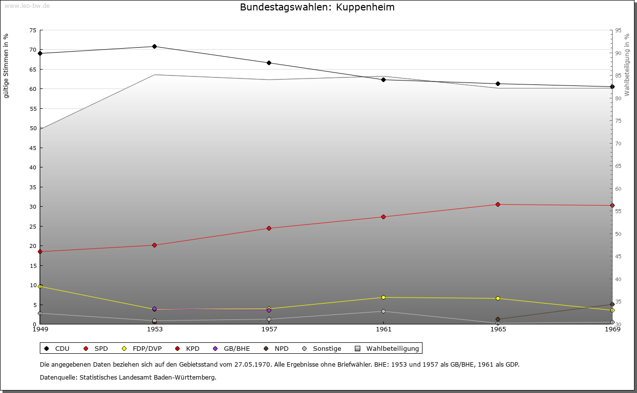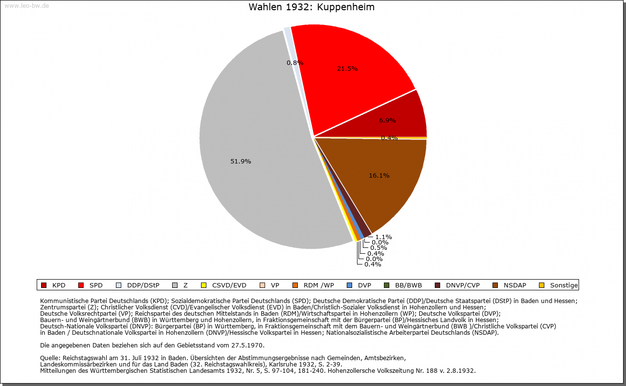 | Geschichte: | Um 1100 (Kopialüberlieferung 16. Jahrhundert) Cuppenheim, 1254 Cuppenhem. Alte Siedlung. Bei Erstnennung Schenkungen des Grafen Berthold von Staufenberg an Kloster Hirsau. 1254 bereits Stadt mit Markt und im Besitz der Grafen von Eberstein. Ovale regelmäßige Stadtanlage mit Unterem Tor im Norden und Oberem im Süden, beide Anfang 19. Jahrhundert abgebrochen, Reste der Stadtmauer noch vorhanden. Schloss im Osten des Mauerrings 1279 ersterwähnt, wohl identisch mit dem Hof der ebersteinischen Schenken; vor 1683 weitgehend abgebrochen. Bis 1689 Amtshaus nördlich des Rathauses. 1279 Kuppenheim in Fehde des Markgrafen Rudolf mit dem Bischof von Straßburg niedergebrannt. Unmittelbar anschließend von den Grafen von Zweibrücken-Eberstein an die Markgrafen übergegangen. 1298 dem Kloster Weißenburg als Ersatz für Malsch zu Lehen aufgetragen. 1535-1771 zu Baden-Baden. 1689 durch die Franzosen total zerstört. Verlust des Amtssitzes an Rastatt. Wiederaufbau in fast dörflichen Formen. Rathaus von 1730. Stadtrecht 1920/35 entzogen, 1950 erneuert. |