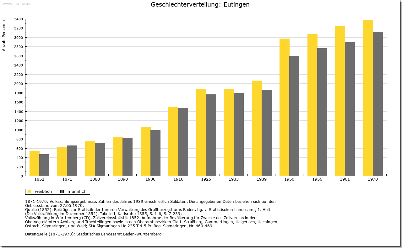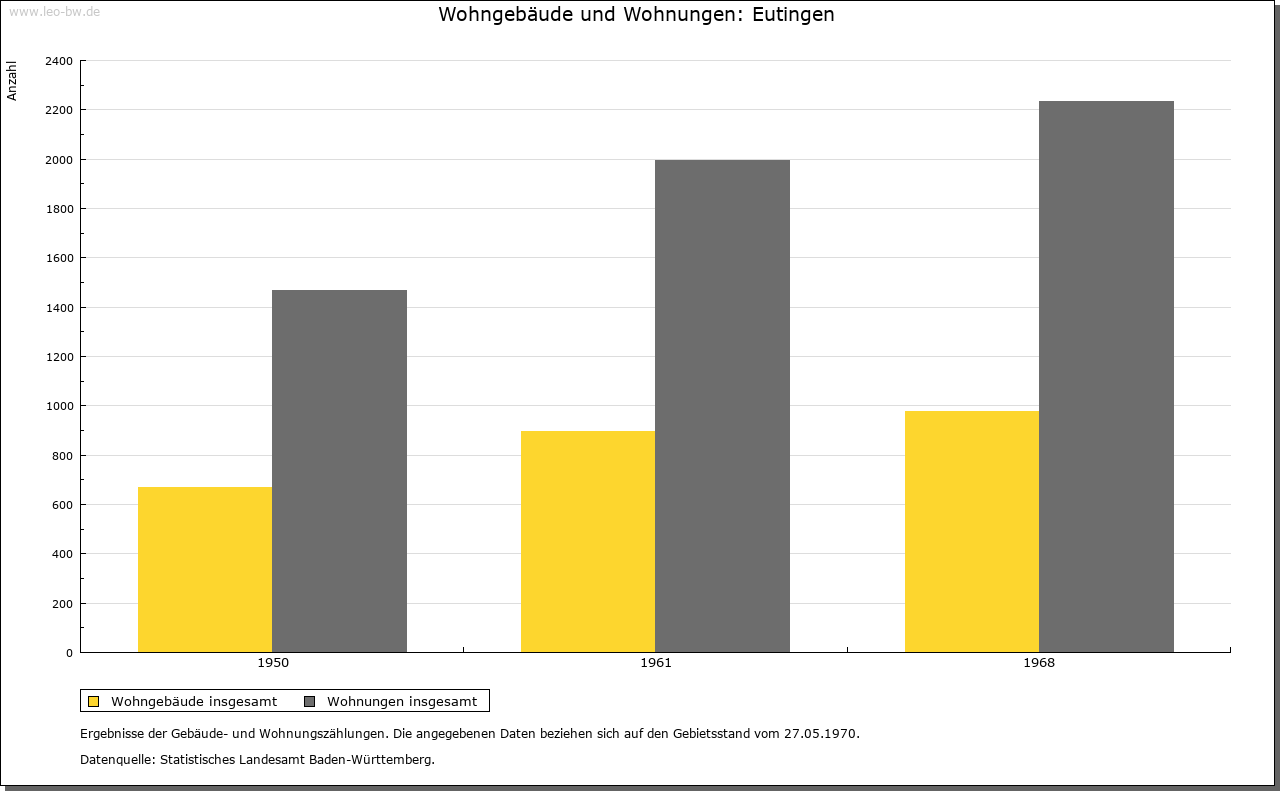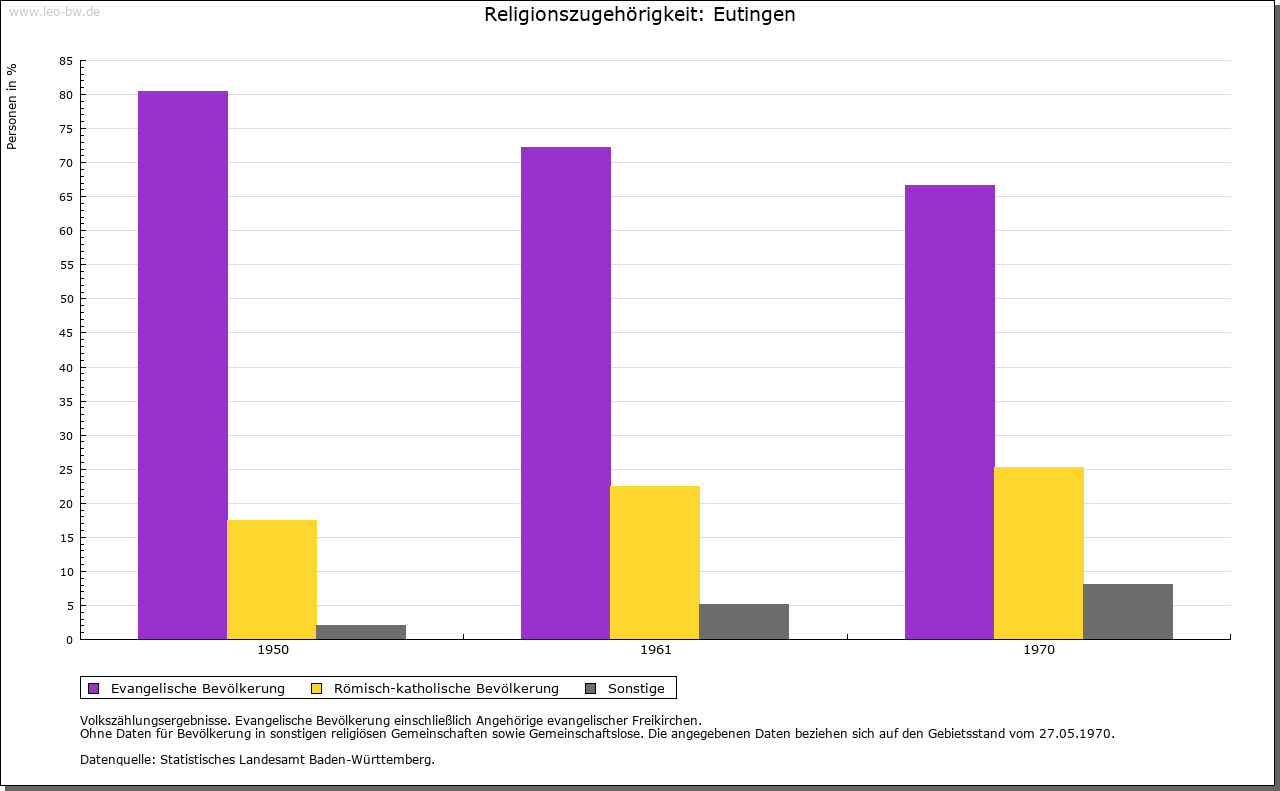 | Geschichte: | 1143 Utingen, vom Personennamen Uto. Eutingen war um 1153 Sitz der Reichsministerialen von Udingen. In der 2. Hälfte des 13. Jahrhunderts besaßen die Herren von Roßwag das Dorf, die es aber an Reinhard und Günther von Pforzheim verkauften, über deren Erben es 1434 und in den Folgejahren zum größten Teil an die Pforzheimer Dominikanerinnen gelangte. Über dieses bestand bereits die Oberhoheit des badischen Markgrafen. Nach Aufhebung des Klosters fiel die Ortsherrschaft 1564 ganz in badische Hände. Pforzheim war stets zuständiger Amtssitz. 1929 erhielt die Gemeinde einen Teil des Hagenschießwaldes. |