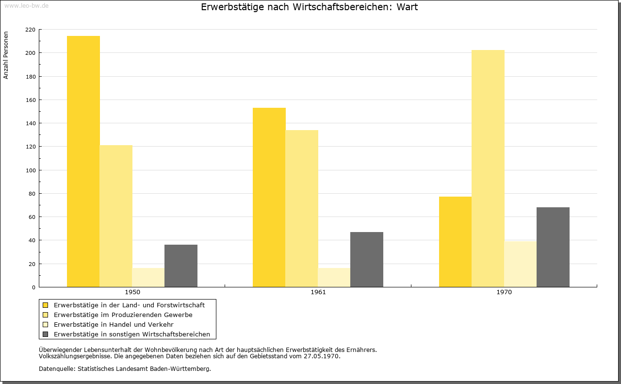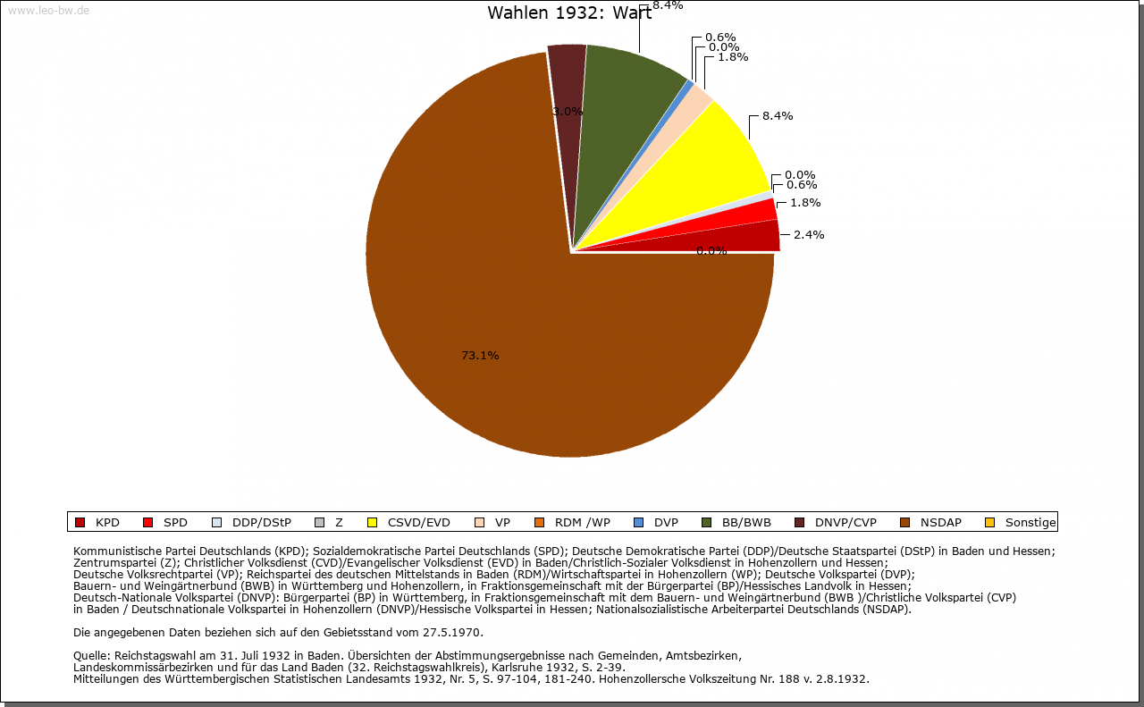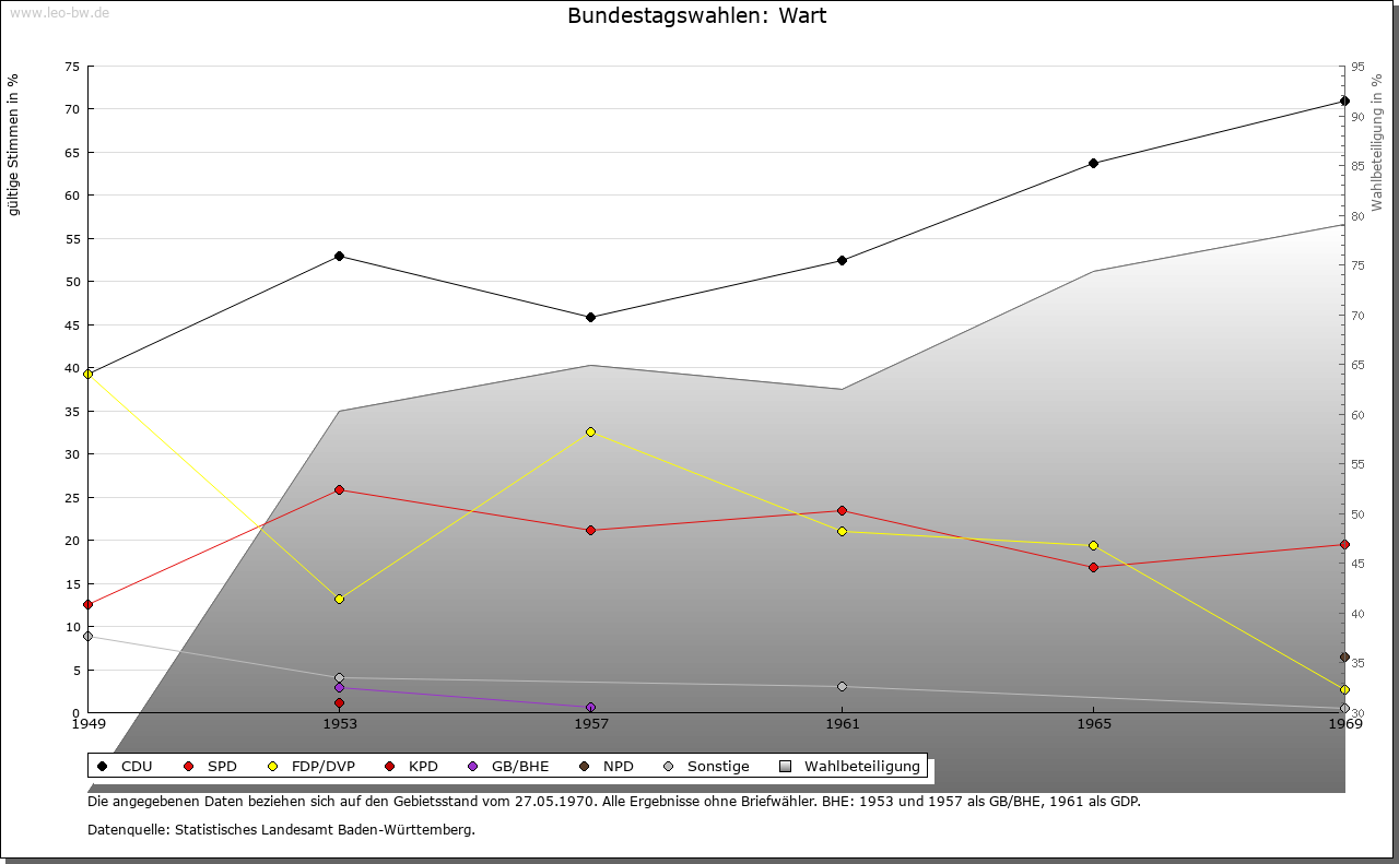| Geschichte: | Ab 1329 genannt, der Name wohl von Warte. Ausbauort aus der Wende vom Früh- zum Hochmittelalter. Von Ebhausen her angelegt, vermutlich aber schon im 14. Jahrhundert württembergisch. Bis 1938 zum Oberamt Nagold, dann Landkreis Calw. |
