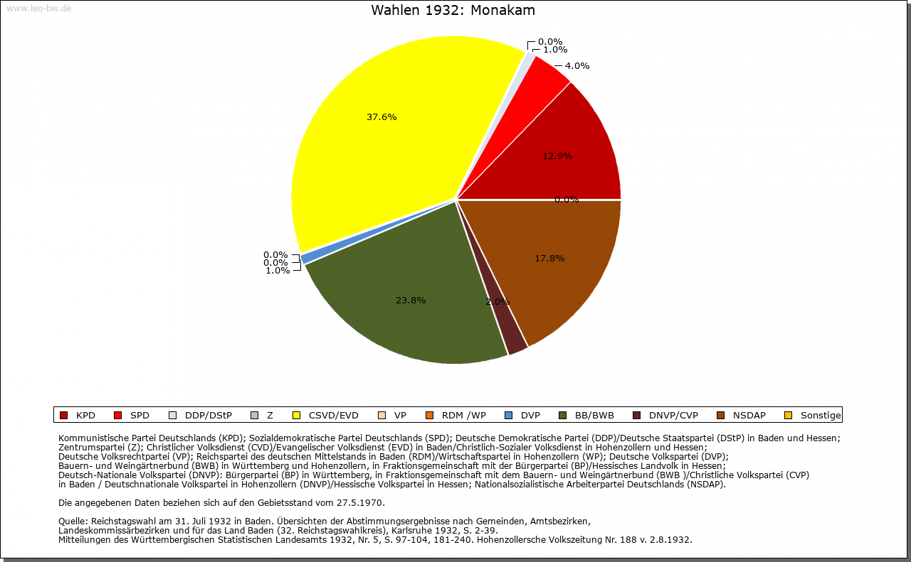 | Geschichte: | 1431 Munakamp, der Name vielleicht mit dem Monbach zusammenhängend, dazu noch Kamm, Bergkamm. Rodungssiedlung des ausgehenden Hochmittelalters. Herrschaftlich stets zu Liebenzell gehörig. |