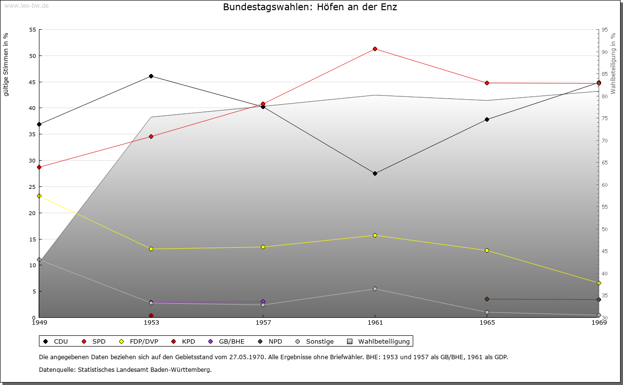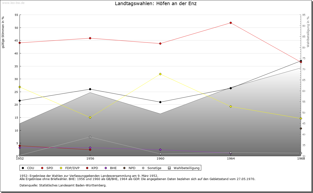 | Geschichte: | 1356 zu den hofen, 1527 zum Hove. Späte Talsiedlung. Nach den kirchlichen Verhältnissen westlich der Enz auf zur Pfarrei Gräfenhausen gehörigem Boden, östlich der Enz auf zu Liebenzell gehörigem Boden entstanden. Herrschaftlich wie Calmbach zum Amt Neuenbürg gekommen. Seit 1938 Landkreis Calw. |