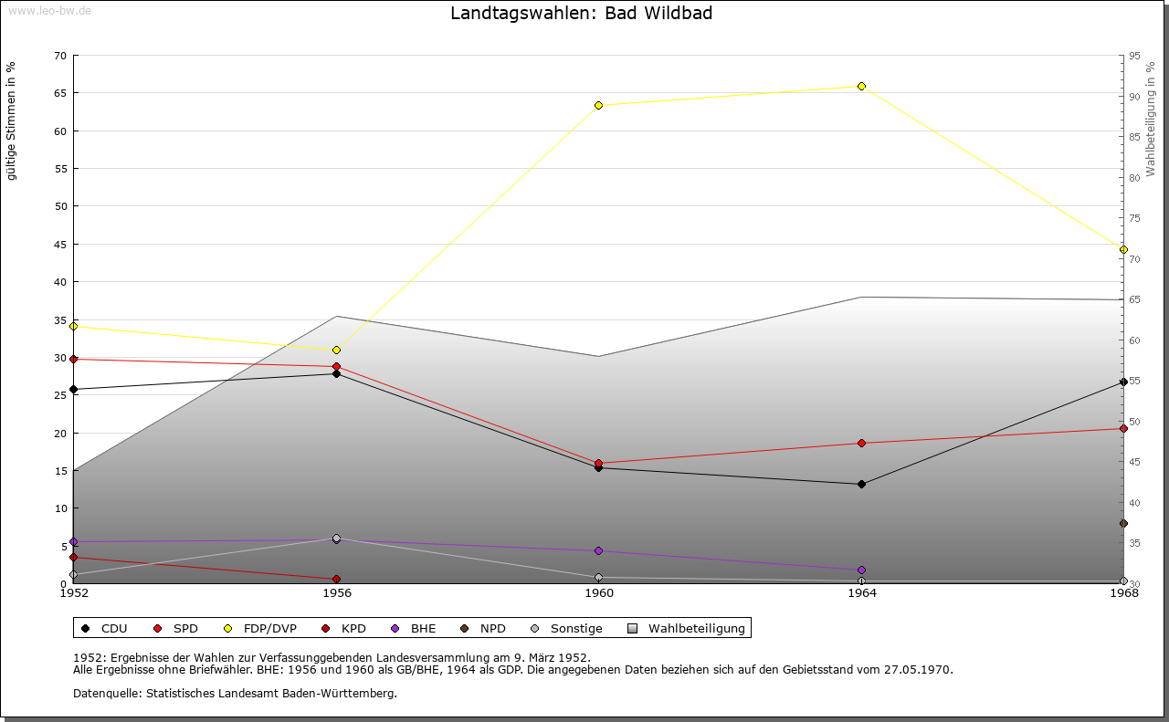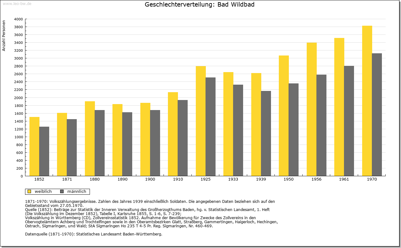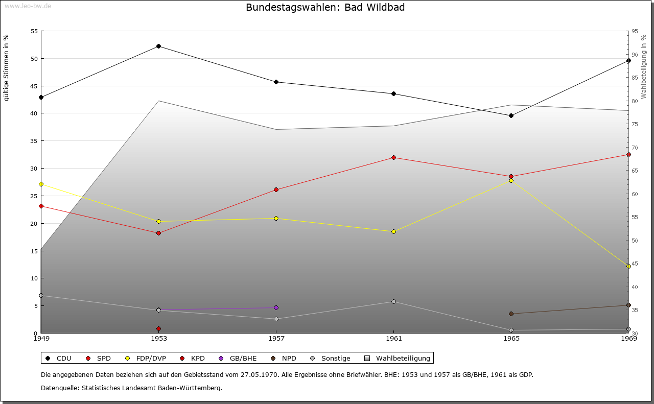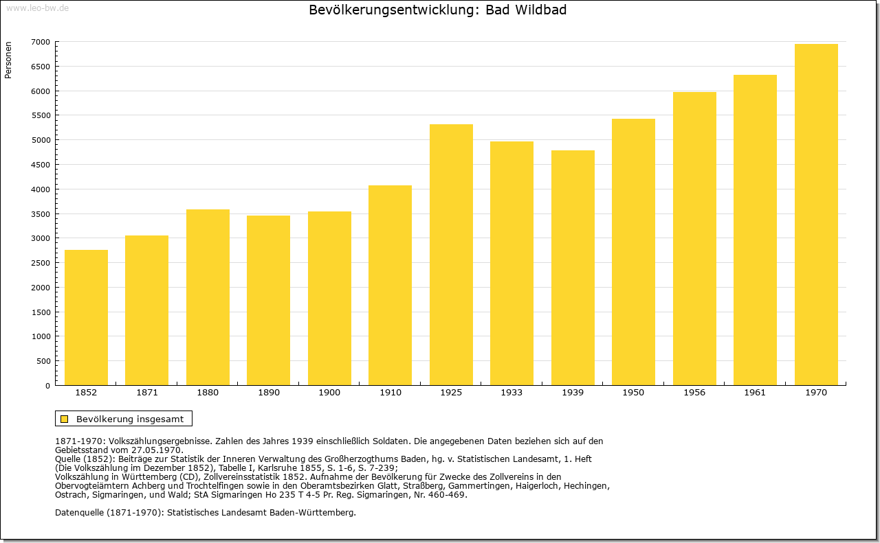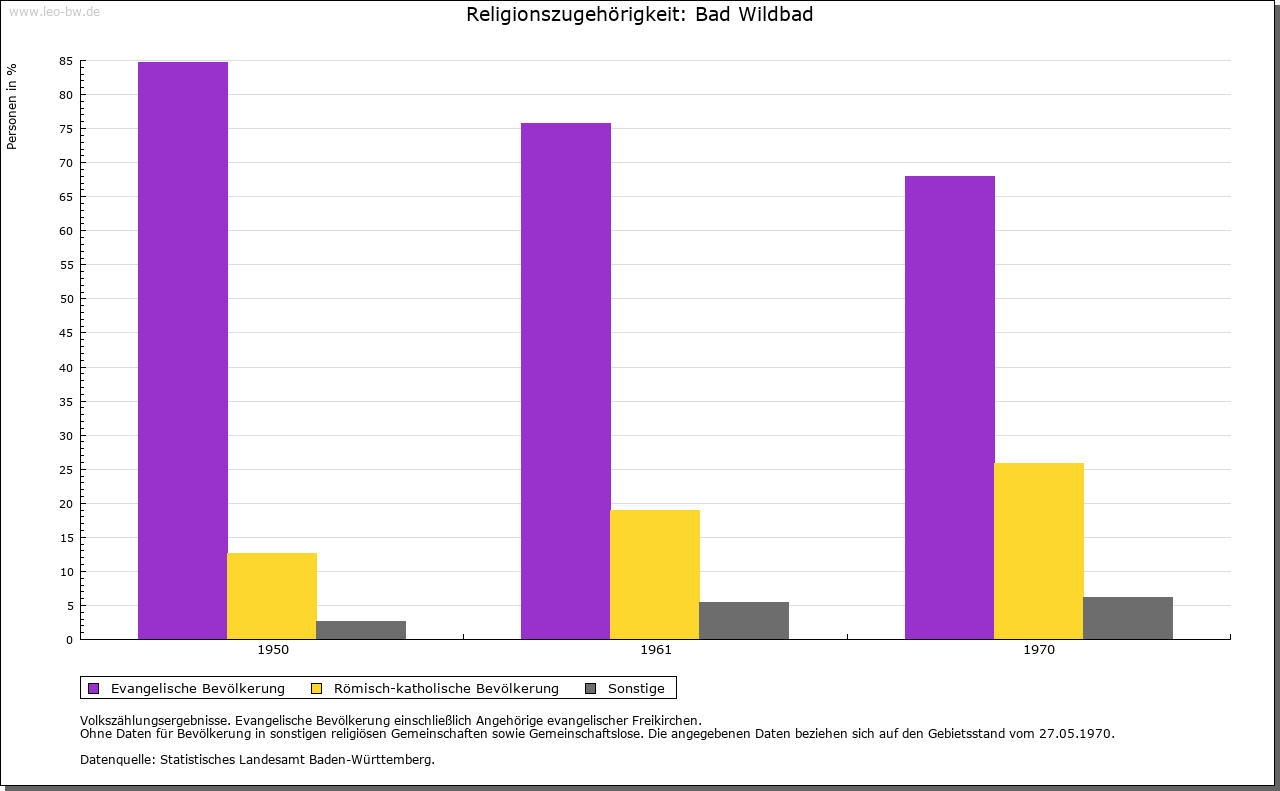 | Geschichte: | 1345, 1368 Wildbad, wild, das heißt von selbst hervorsprudelnde warme Badequelle. Ein Brunnenschacht, der um 1200 datiert wird, ist das erste Zeugnis der Nutzung des Bades. 1345 der Ort von den Pfalzgrafen von Tübingen an Württemberg verkauft, also wohl aus gräflich-calwischem Erbe stammend. Graf Eberhard von Württemberg entging hier 1367 mit knapper Not dem von den Grafen von Eberstein und den mit ihnen verbündeten Martinsvögeln, später Schleglern, inszenierten Überfall. Zum Dank dafür erhielt Wildbad 1367 Stadtrecht. 1519-1529 vom Schwäbischen Bund den von Sickingen zur Erstattung von Kriegskosten überlassen, dann von Erzherzog Ferdinand wieder eingelöst. Eigenes Oberamt, 1807 mit Neuenbürg vereinigt, 1938 zum Landkreis Calw. Häufige Stadtbrände - 1367, 1464, 1525, 1646 und 1742 - veränderten den Grundriß der Siedlung vollkommen. Nach dem letzten Brand rechtwinkliges Straßennetz mit rechteckigem Kurplatz nach Plänen von Chr. D. von Leger. Die Ummauerung beseitigt. Der Ausbau der Badeanlagen begann schon 1699 mit der Hainbuchenallee. Herzogliches Palais 1798/99, an seiner Stelle großes Badehaus 1840/47 durch Thouret in neuromanischem Stil. König-Karls-Bad 1882 und zahlreiche weitere Bade- und Hotelgebäude. Bad Wildbad hieß bis 1990 Wildbad im Schwarzwald. |