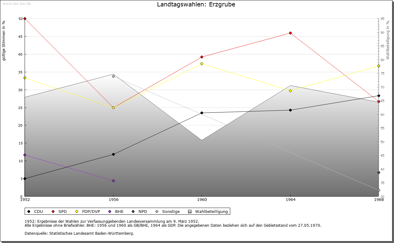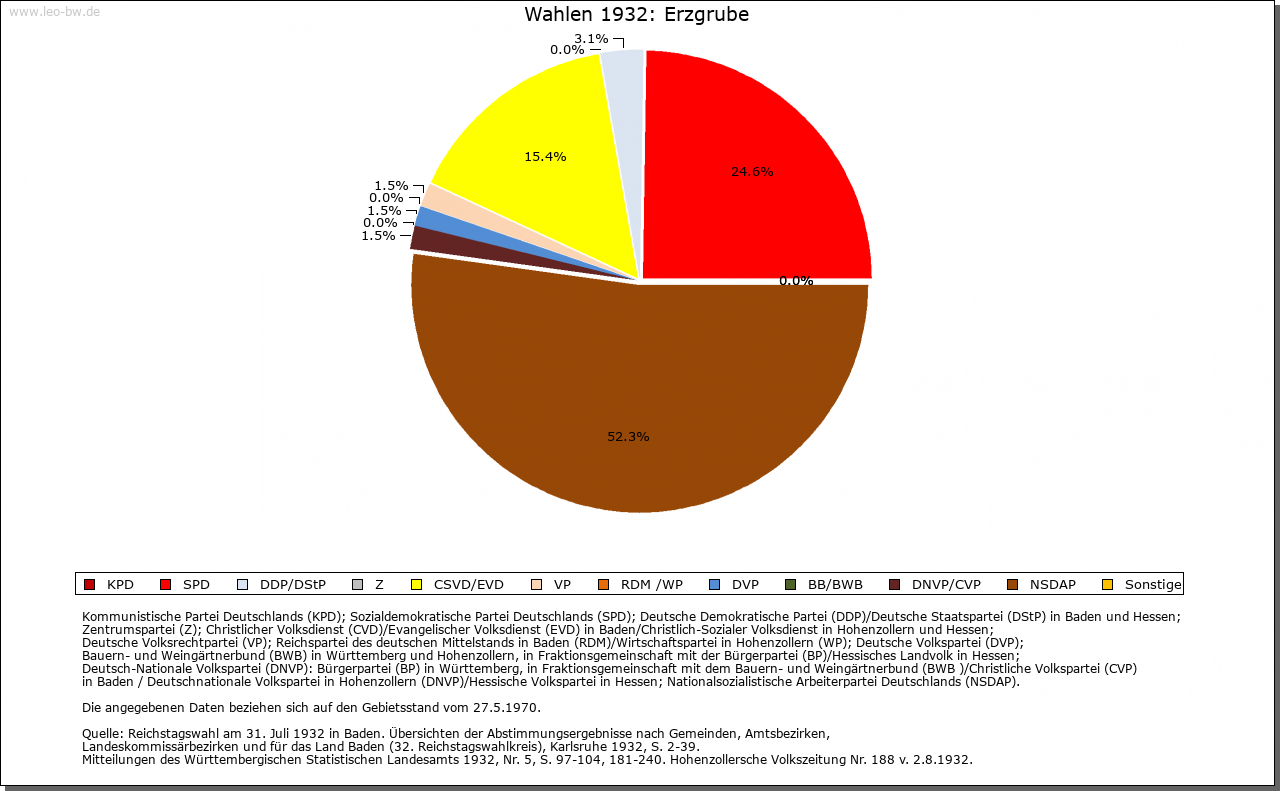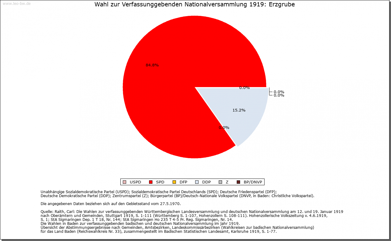 | Geschichte: | Der Ort entstand auf rentkammerlichem Boden im Anschluß an eine um 1700 eröffnete Flößerwirtschaft und war noch Mitte des 19. Jahrhunderts eine »Colonie von Flößern und Holzhauern«. Ortsname weist auf Bergbauversuche nach Eisenerz, die bald wieder aufgegeben und 1902 nochmals projektiert, aber nicht wieder aufgenommen wurden. Ursprünglich zum Amt beziehungsweise Oberamt Dornstetten, 1807/08 zum Oberamt, seit 1938 Landkreis Freudenstadt. Ein Teil des Orts gehört zu Igelsberg (Stadt Freudenstadt). |
