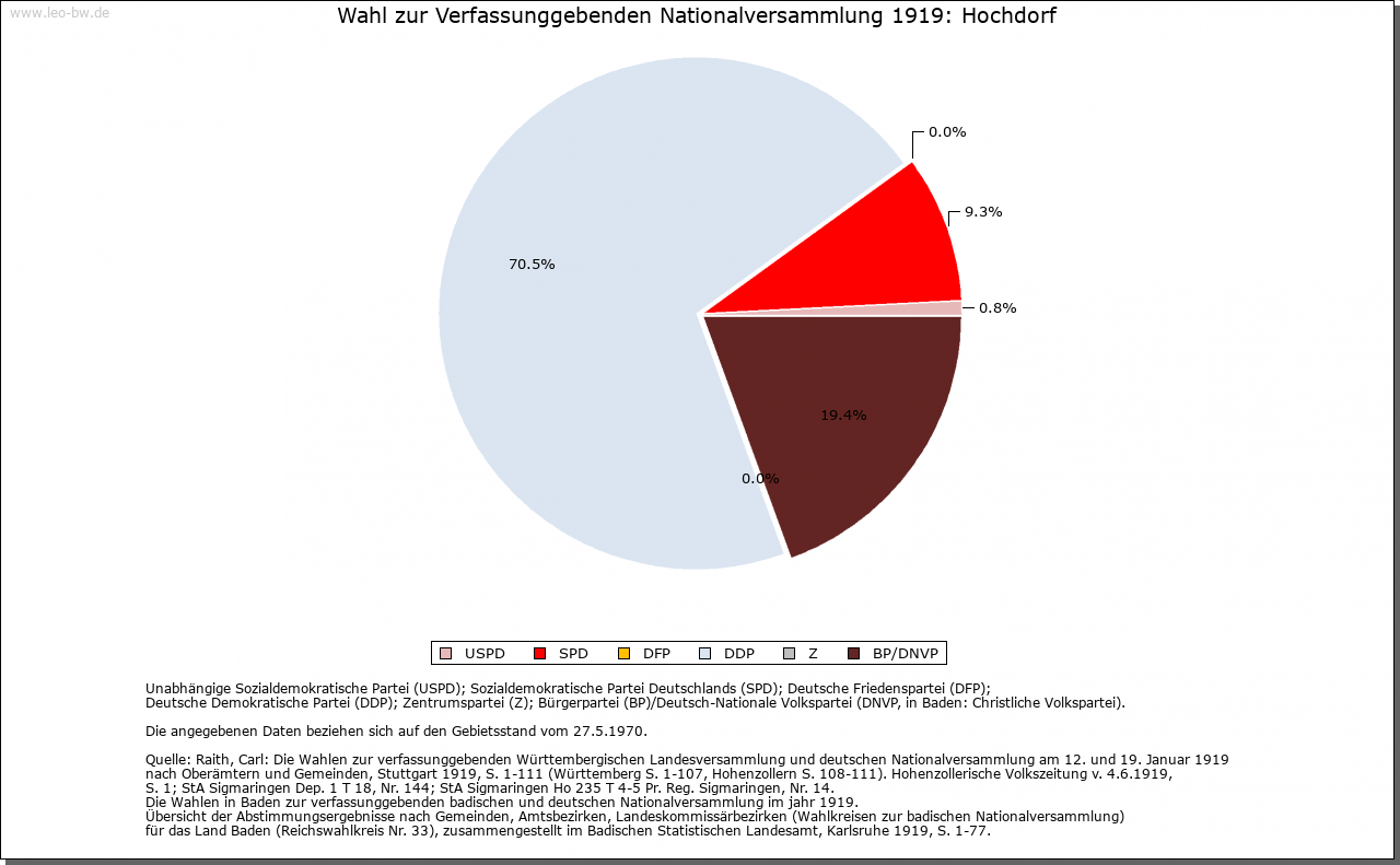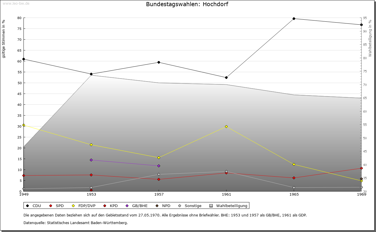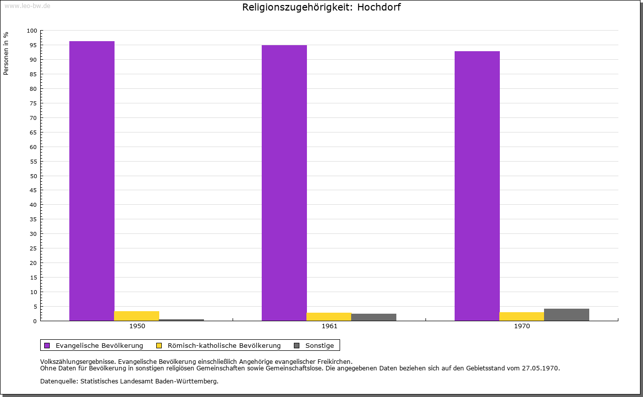 | Kirche und Schule: | Kirchlich war Hochdorf ursprünglich wohl von Urnagold abhängig, im 18. Jahrhundert zu Göttelfingen. Evangelische Kirche von 1799, 1975 erneuert. Katholiken zu Altensteig. |