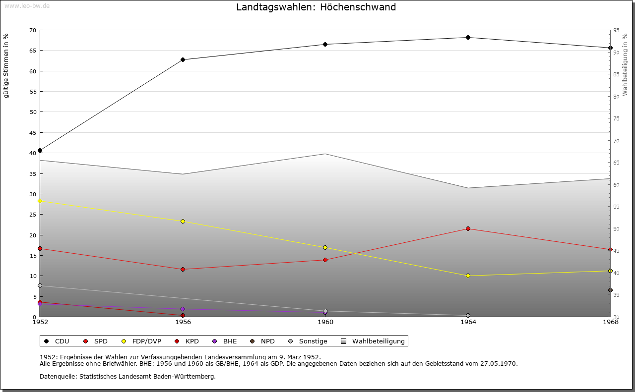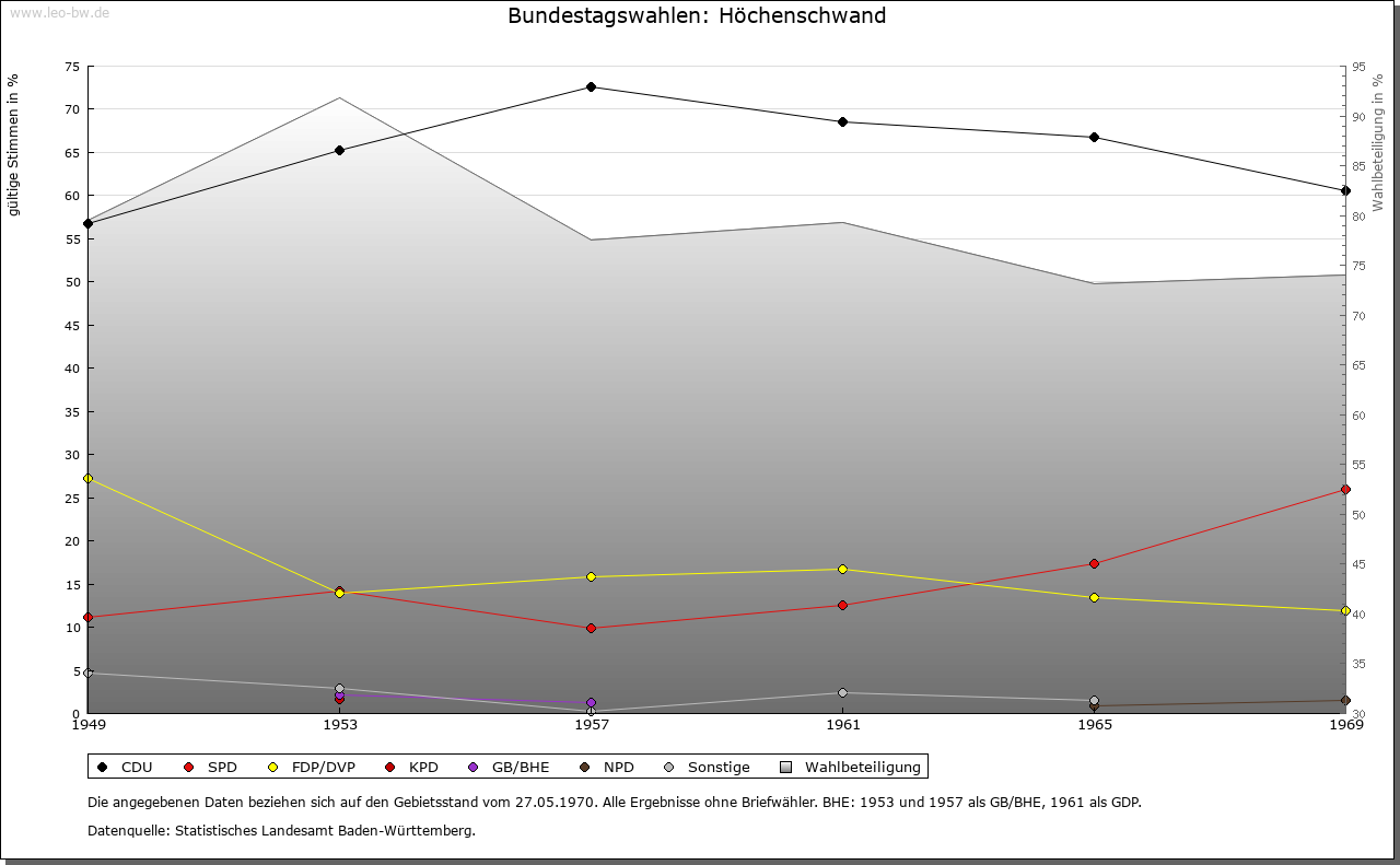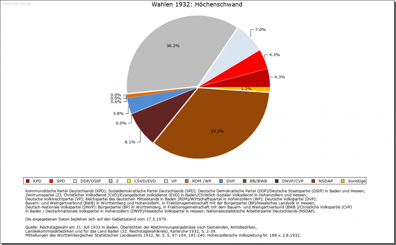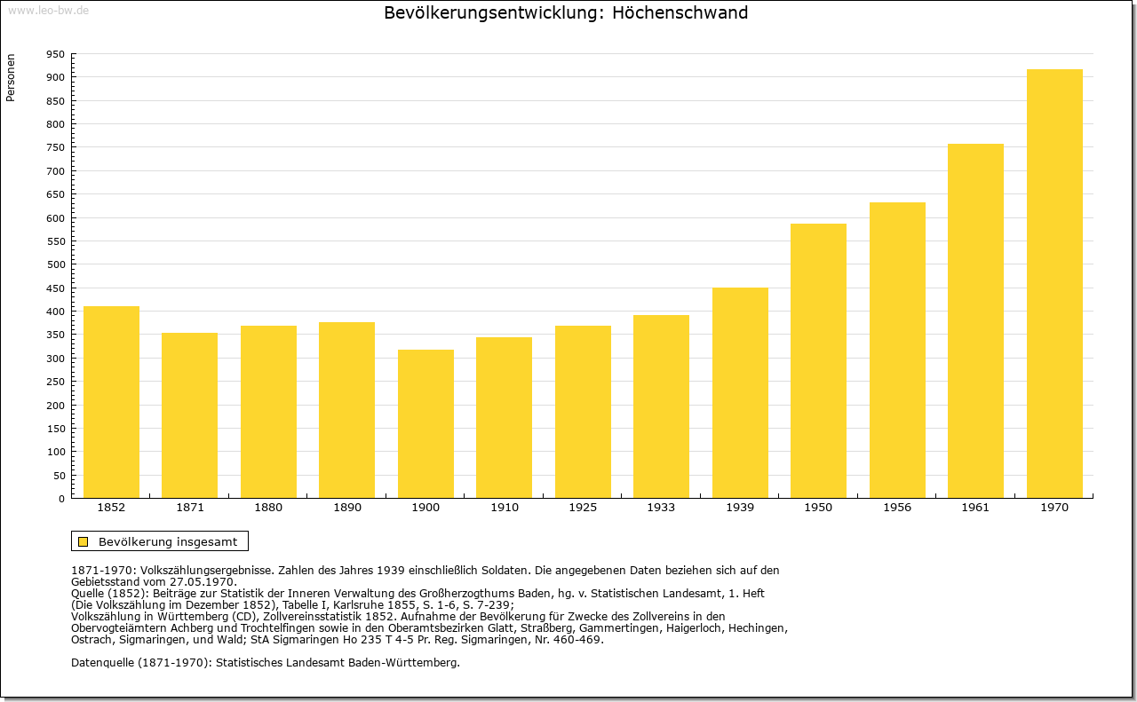 | Geschichte: | 1158 Hachinswanda, Anfang des 14. Jahrhunderts Hechinswande, von Personenname und swant = Rodung. Aus einem Bruderhof des Klosters St. Blasien hervorgegangene Rodungssiedlung des Hochmittelalters. Ein nach dem Ort benanntes Adelsgeschlecht läßt sich 1295 und 1313 nachweisen. Höchenschwand gehörte zum Zwing und Bann der Abtei St. Blasien und kam als namengebender Ort für die Einung Höchenschwand von Österreich 1805 an Baden, Stabsamt St. Blasien, 1809 Oberamt Waldshut, 1815 Bezirksamt St. Blasien, 1924 Bezirksamt/1939 Landkreis Waldshut. |