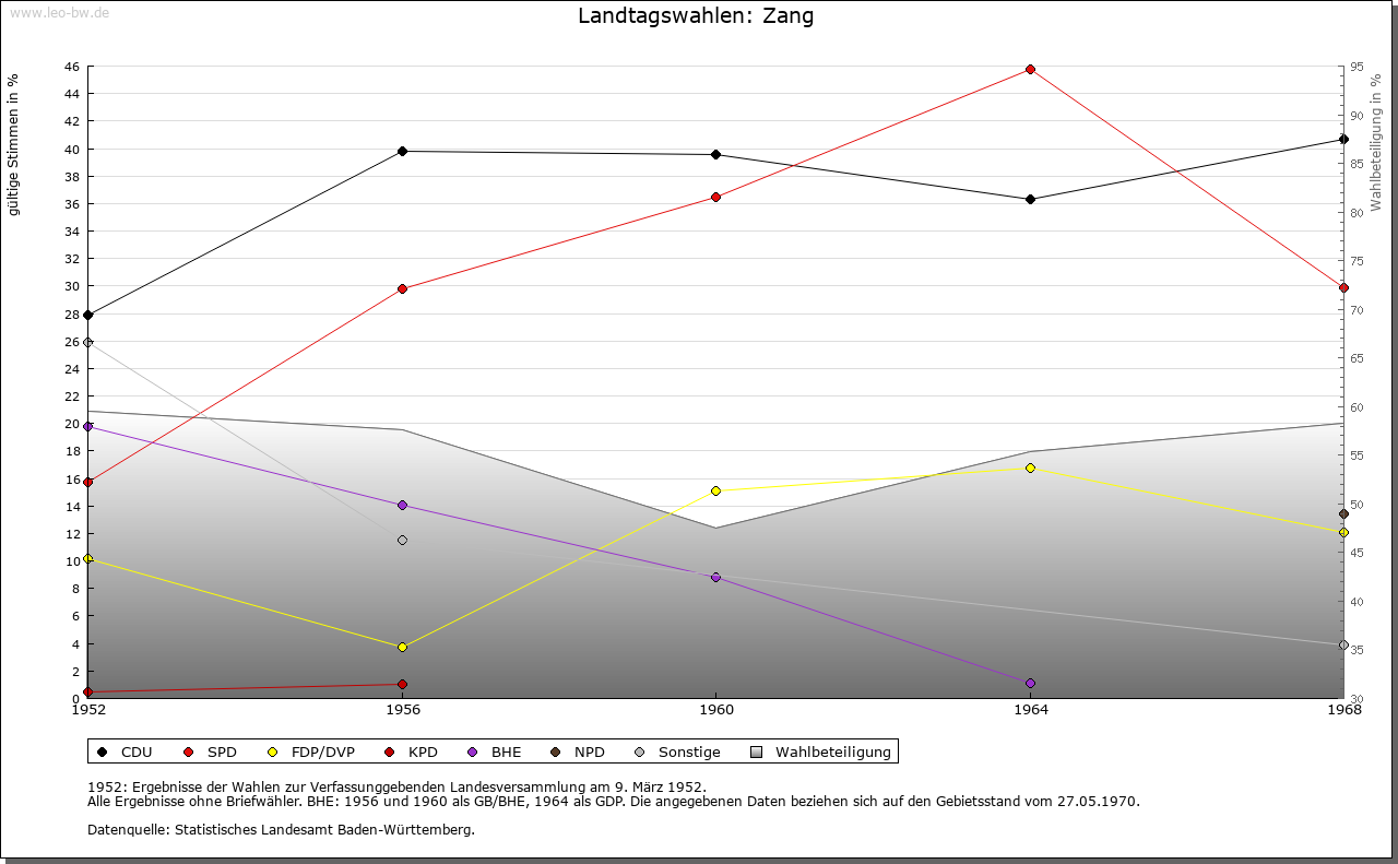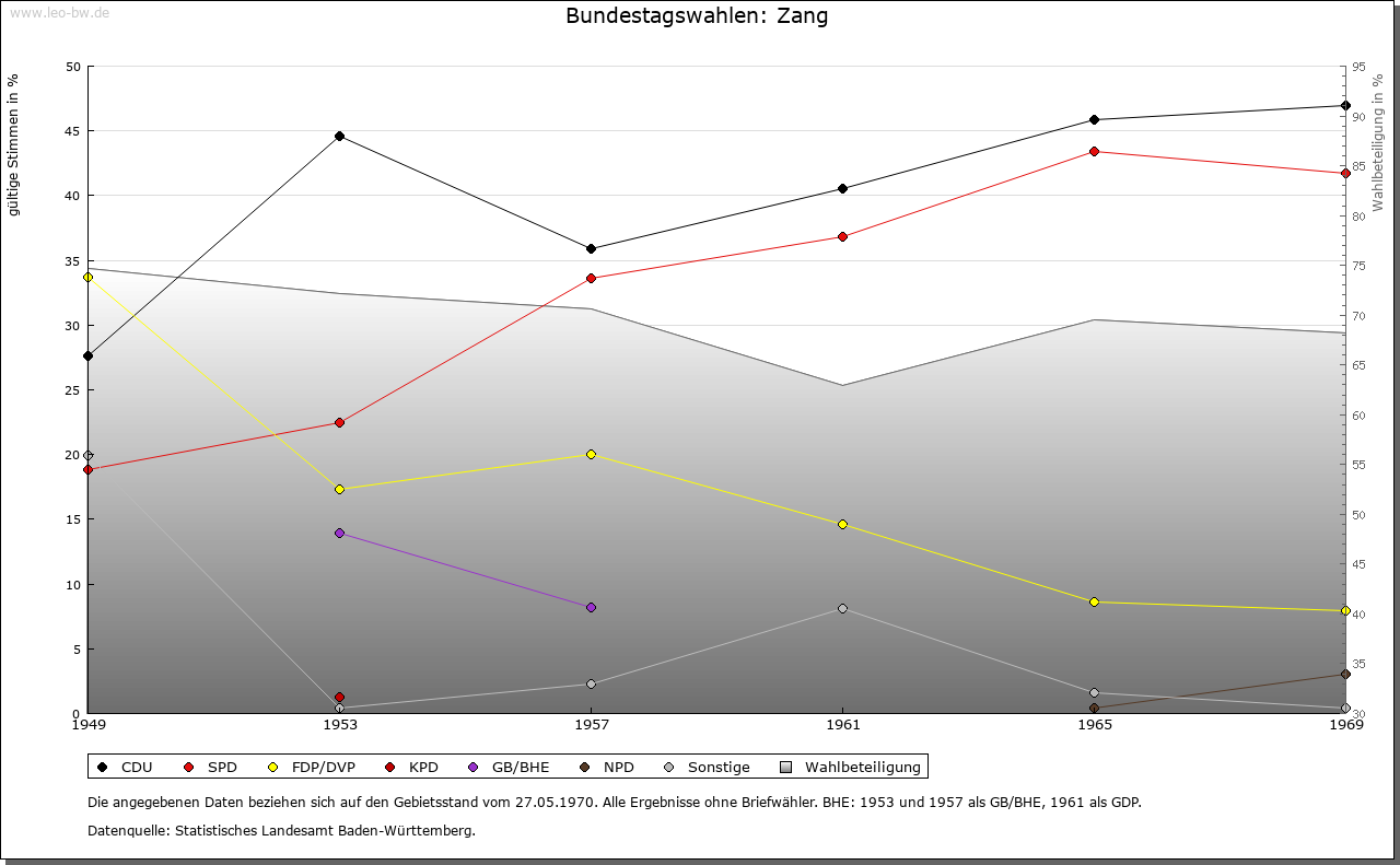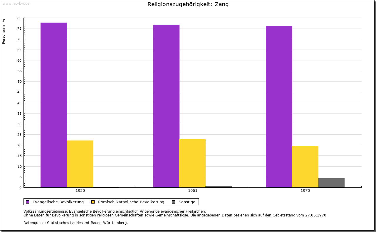 | Geschichte: | Die im 12./13. Jahrhundert mehrfach genannten Ritter von Zange haben mit dem Ort wohl nichts zu tun, doch dürfte die Deutung des Ortsnamens, 1356 bezeugt, als ze sange von sengen = brandroden hier wie dort die wahrscheinlichste sein. Späte Rodesiedlung. Das Dorf, wohl aus Helfensteiner Besitz in Königsbronner Hand gelangt, ging vor 1471 ab. Seit 1537 besiedelte Kloster Königsbronn die Wüstung im Zuge der Ausweitung der Eisenwerke neu mit Holzhauern und Köhlern. 1583 hatte der Ort 40 Haushaltungen, 1627 waren es 96. Mit dem Kloster kam Zang an Württemberg. Bis 1819 zur Gemeinde Königsbronn. Bis 1958 wurde Köhlerei getrieben. 1959 eine Waldarbeitersiedlung erbaut. |