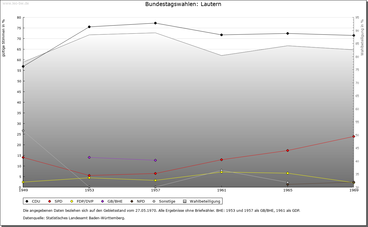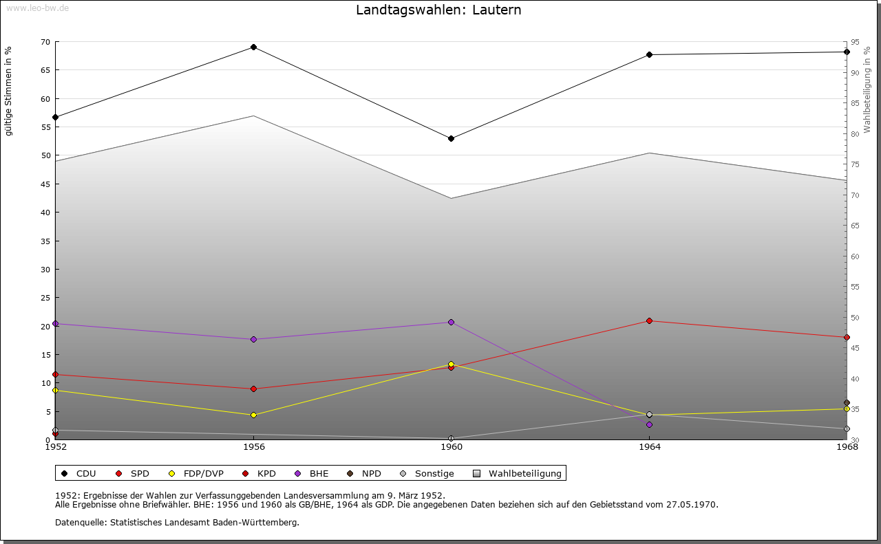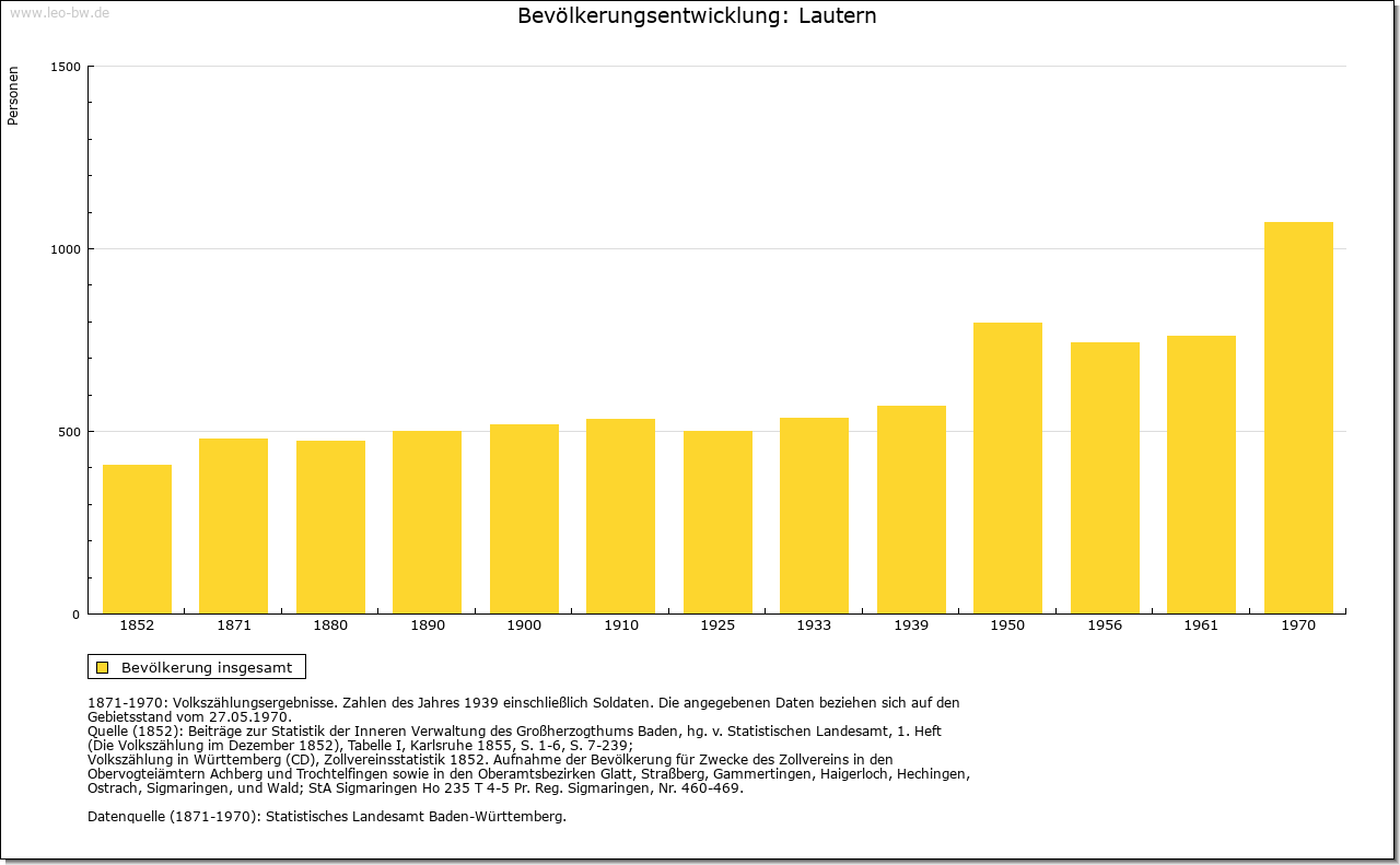 | Ortslage und Siedlung (bis 1970): | Zwischen den Rosensteinrandhöhen am Ausgang des Lautertals zieht sich der Ort beiderseits des Flüßchens und der Straße entlang. Die Wachstumsspitzen im Оsten (»Bürglesbühl« 1955/65), Norden (»Im Brühl« 1965/78) und Süden (»Im Sommerrain« 1950/60) stammen aus der Zeit nach dem zweiten Weltkrieg. |