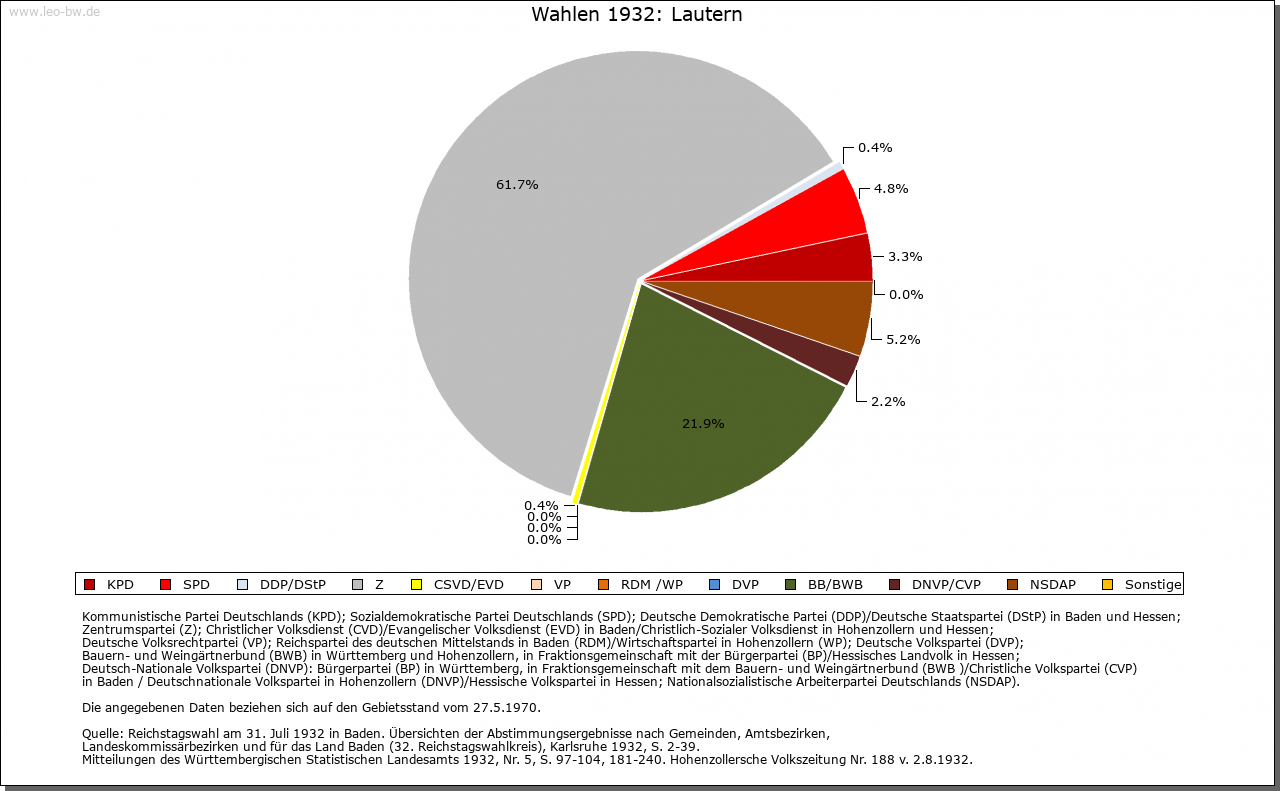 | Geschichte: | 1346 und 1357 Lutrun (nach dem Bach Lauter). Wohl ursprünglich Zubehör der pfalzgräflichen Lauterburg, mit der ein Teil 1413 pfandweise, 1479 durch Kauf mit aller Obrigkeit und Blutbann an die Woellwarth auf Hohenroden kam. Zwei Huben und drei Selden waren reichslehenbar, die 1428/29 von König Sigismund an Aalener Bürger verliehen und 1439 an das Gmünder Spital verkauft wurden. Weitere Grundherren waren unter anderem die von Schnaitberg (1416, 1429), die Adelmann (bis 1534), von Schechingen (1363) sowie Gmünder Bürger. Der größte Teil der Grundherrschaft kam im 15./16. Jahrhundert an das Gmünder Spital. Die Woellwarth vertauschten noch 1651 ein Hofgut mit aller Obrigkeit an die St. Katharinenpflege in Gmünd. Hinsichtlich der obrigkeitlichen Rechte verglichen sich Gmünd und die Woellwarth 1599. Der gmündische, weit größere Anteil am Ort kam 1802/03, der woellwarthische 1806 an Württemberg. Oberamt, seit 1938 Landkreis Schwäbisch Gmünd. Zählte bis 1821 zur Gemeinde Mögglingen. |