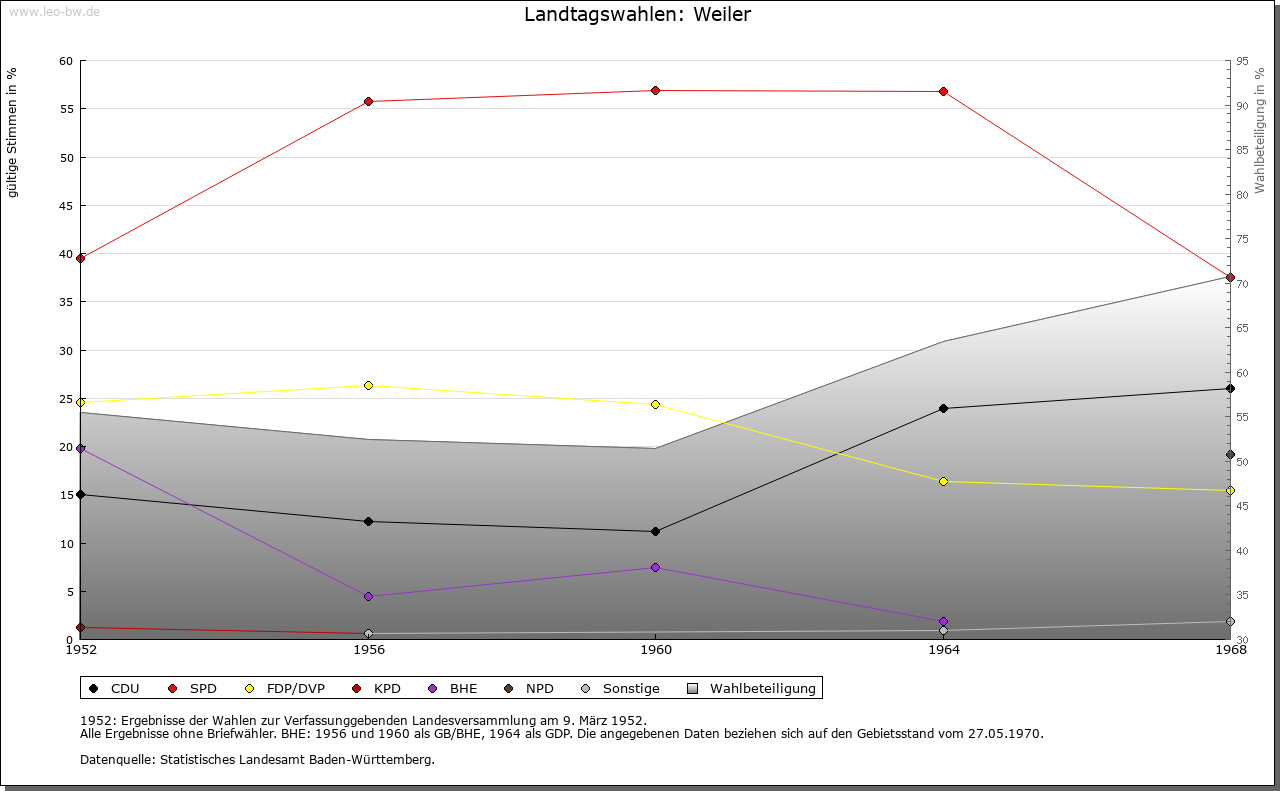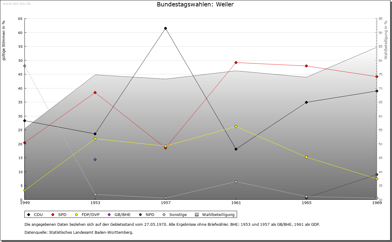 | Geschichte: | 1322 Wiler apud Niuwenbrunnen (?), 1475 Wiler by Eberspach; wohl erst in der jüngeren Ausbauzeit des 9.-13. Jahrhunderts entstanden. Gehörte wohl teilweise schon früh Kloster Adelberg; anderes wird mit der Herrschaft Teck an Württemberg gekommen sein. 1474/75 gelangte ein hiesiger Hof, Gemeins- oder Mittelweiler genannt, von den von Wernau an Kloster Adelberg. Weiler gehörte vom Mittelalter bis 1905 zum Stab bzw. zur Gemeinde Roßwälden; es zählte bis 1938 zum Amt bzw. Oberamt Kirchheim, seither zum Landkreis Göppingen. |