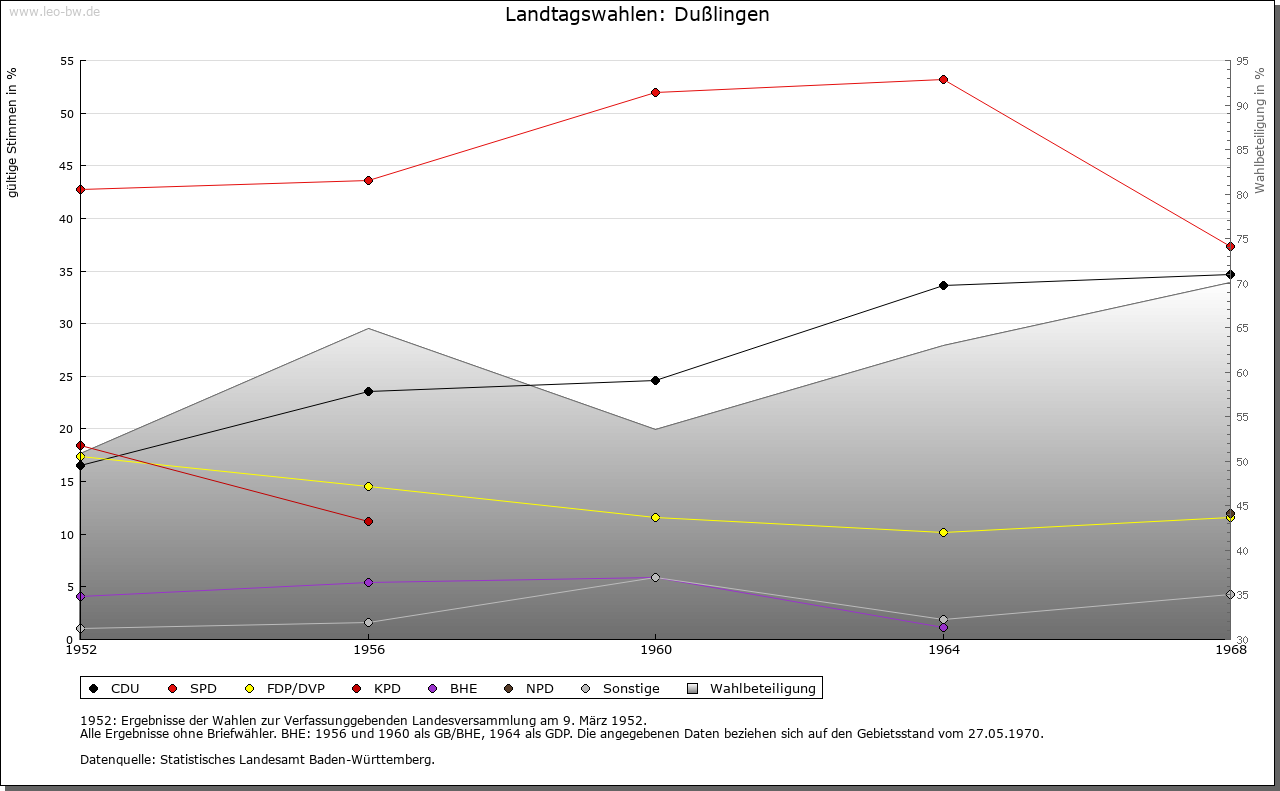| Geschichte: | 888 Tuzzilinga, 1135 Tuzzelingin (Personenname Tuzzilo), älteste alemannische Siedlungsschicht. Grabfund aus dem 7. Jahrhundert Herren von Dußlingen, später Ministerialen der Pfalzgrafen von Tübingen, sind vom 12. Jahrhundert an erwähnt, seit 1266 mit dem Beinamen Herter (lateinisch pastor). Seitenlinien von Herteneck und von Schilteck. Wilhelm Herter war in den Burgunderkriegen Hauptmann des eidgenössisch-österreichischen Heeres (gestorben 1477). Das Geschlecht ist 1614 mit Hans Christoph ausgestorben. Von der Burg am nördlichen Ortsrand sind Teile der Ringmauer (2. Viertel 13. Jahrhundert) erhalten. Die Herrschaftsrechte im Ort besaßen nachweislich im 15. Jahrhundert die Herter. 1446/47 Verkauf an Württemberg. Fortan war der Adelssitz württembergisches Lehen. Seit spätestens 1500 Amt (dann Oberamt, 1938 Landkreis) Tübingen. |