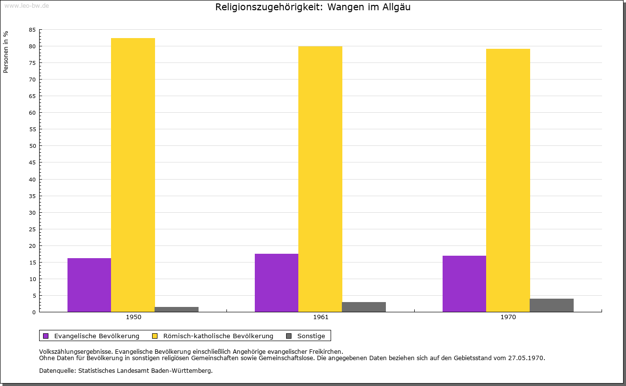 | Kirche und Schule: | 1182 Kirche und Pfarrei Sankt Martin (mit Sankt Gallus und Magnus). Patronatsherr war das Kloster Sankt Gallen, ab 1608 der Stadtmagistrat. Stiftung von Kaplaneien und Meßpfründen, darunter 1470 einer Prädikatur. Die Reformation fand nur vorübergehend Eingang. Die katholische Pfarrkirche Sankt Martin ist eine querschifflose Basilika des 15. Jahrhunderts, Chor noch von 1386. Spätromanischer Turm in der Gotik erhöht, nach Blitzschlag 1739 neue Haube. Neugotische Ausmalung 1898 folgende. Renovierung 1973/74. Zweite katholische Pfarrkirche Sankt Ulrich im neuen Stadtteil Waltersbühl 1959. Im selben Jahr neue Kirche bei der Fachklinik für Kinder und Jugendliche. Das Spital zum Heiligen Geist wird Ende des 13. Jahrhunderts genannt. Spitalkapelle 1446, Neubau 1719/21, restauriert 1975/76. Hauptbau des Spitals noch aus spätgotischer Zeit, 1923 Erweiterung zum Altersheim, 1974/77 erneuert. Vor dem Lindauer Tor lag das Schutzengelkapuzinerkloster, seit 1640. Bis zur Fertigstellung des Gebäudes 1657 wohnten die Mönche im Hinderofenhaus. 1803 (endgültig 1829) aufgehoben. Weihe der Kirche Sankt Fidelis 1655, profaniert. Sankt Rochuskapelle im alten Friedhof (1576 angelegt) von 1593, bemalte Holzfelderdecke. Sankt Wolfgangkapelle im neuen Friedhof (1913 angelegt), Weihe 1617, restauriert 1972/75. Ständige evangelische Pfarrverweserei 1850, zunächst Betsaal im ehemaligen Kapuzinerkloster. Pfarrei 1888, Kirche 1893. Evangelisches Gemeindezentrum mit Kirche im Stadtteil Wittwais 1963. |